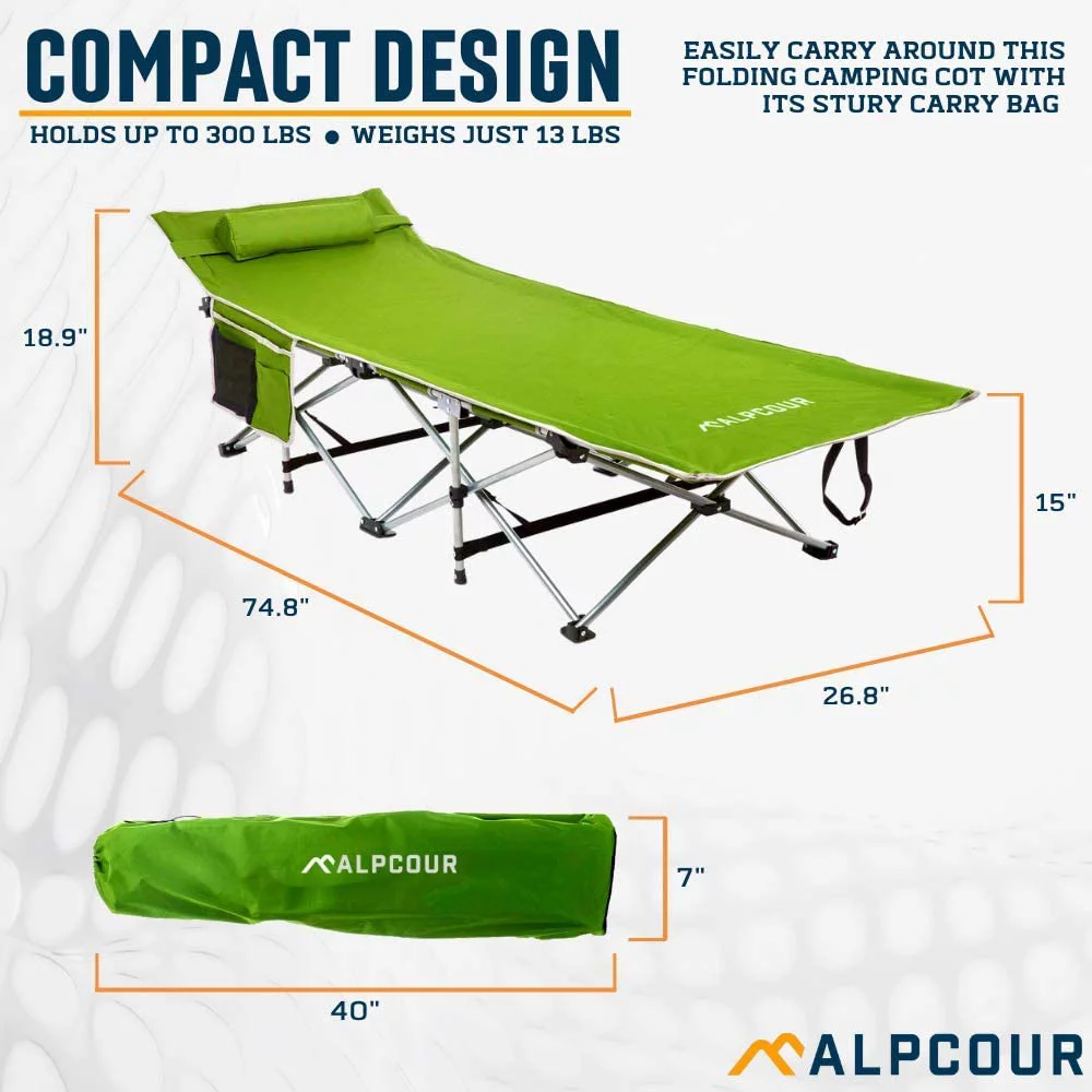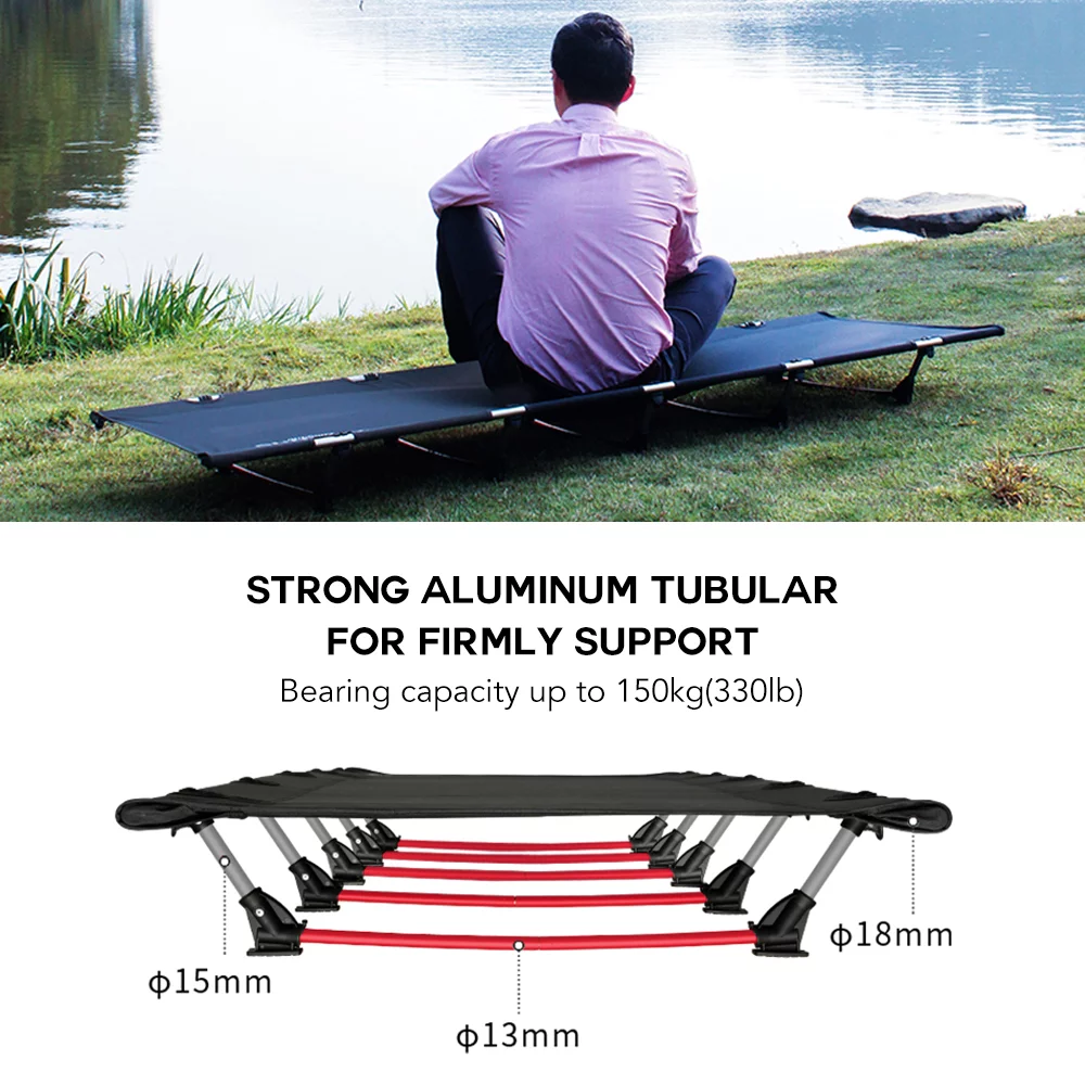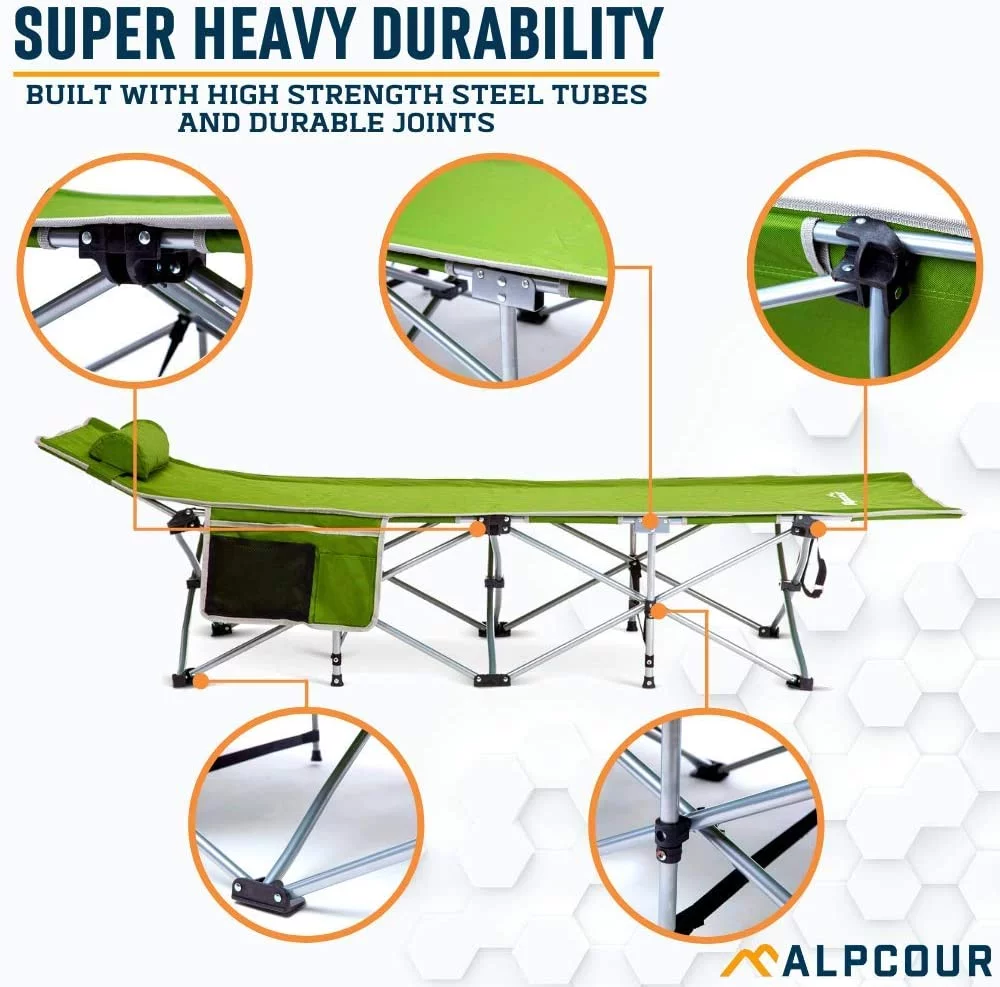 Durable Aluminum Camping Cot, Single Person Folding Bed, 330LB Bearing Weight