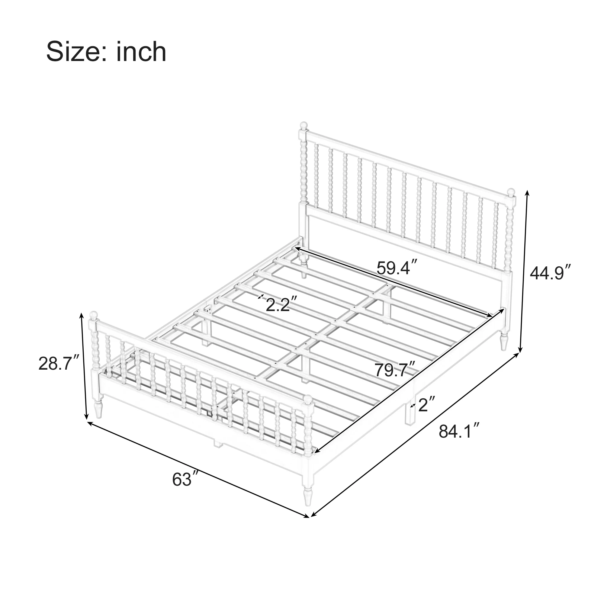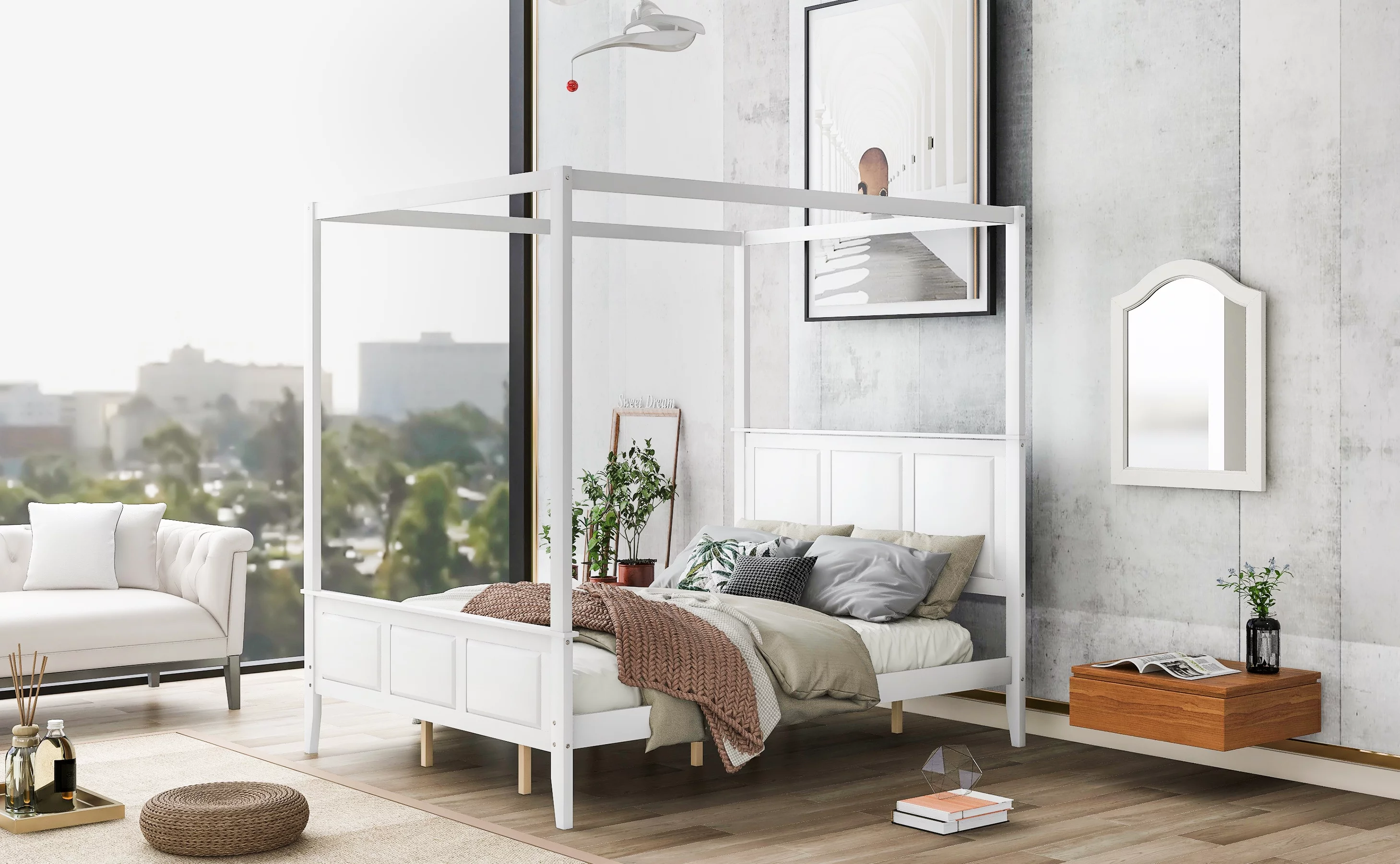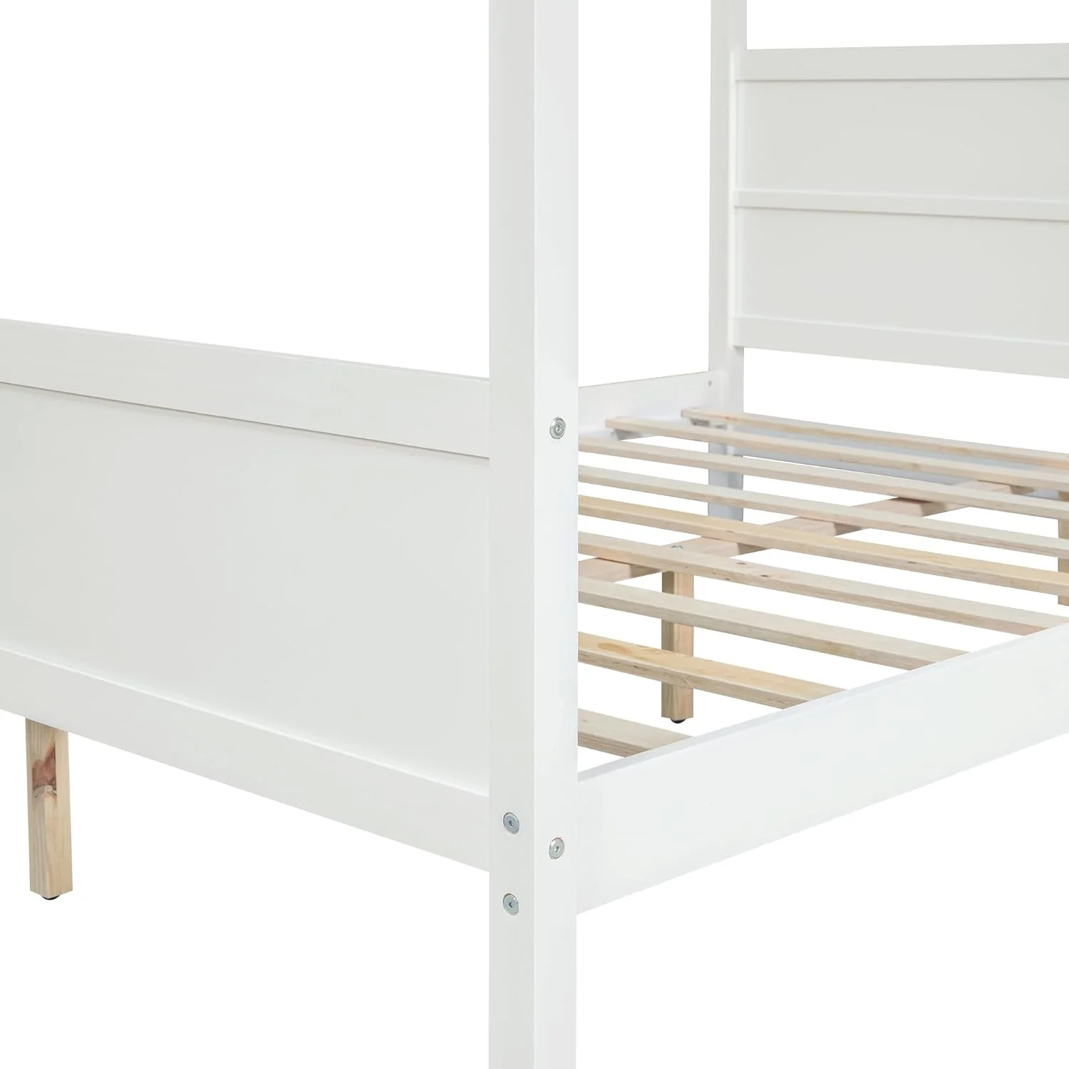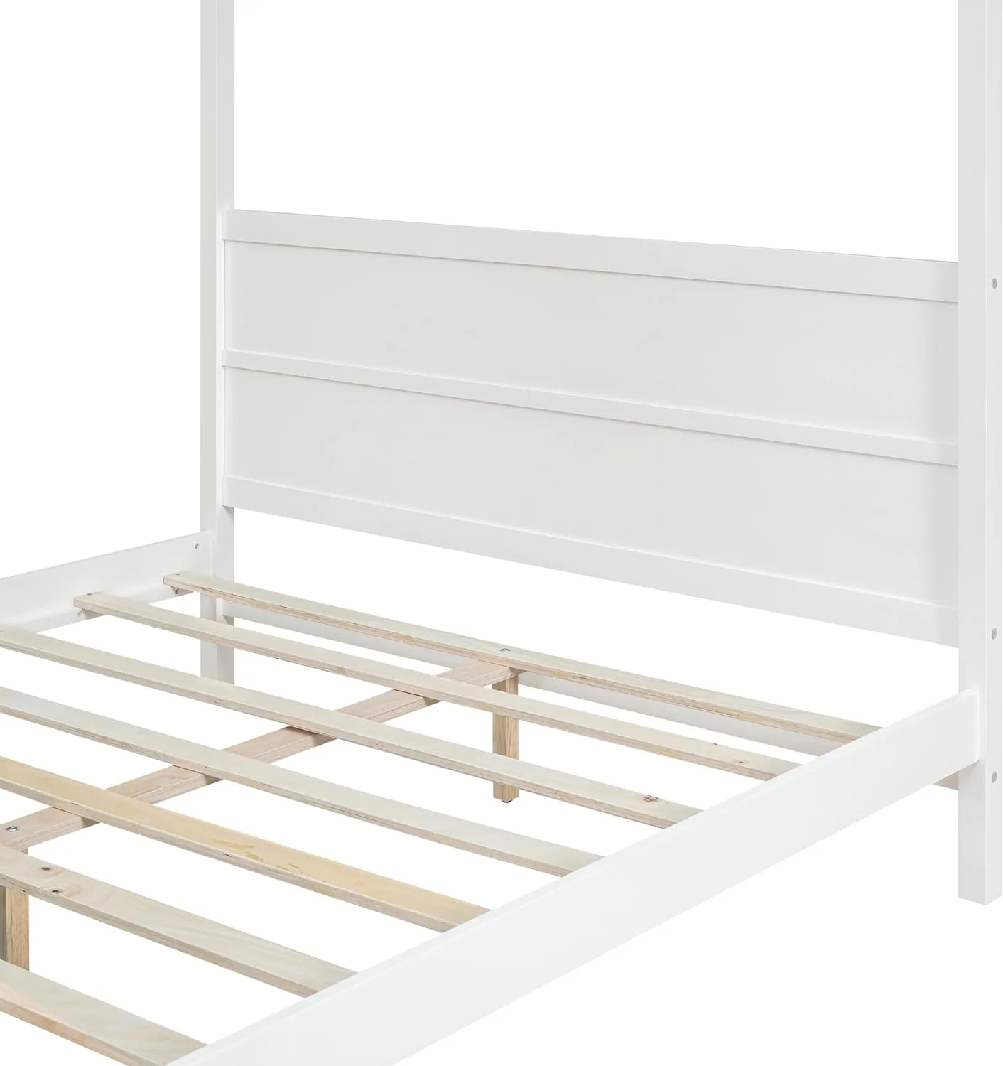 Queen Size Canopy Platform Bed with Headboard and Footboard,Slat Support Leg - White