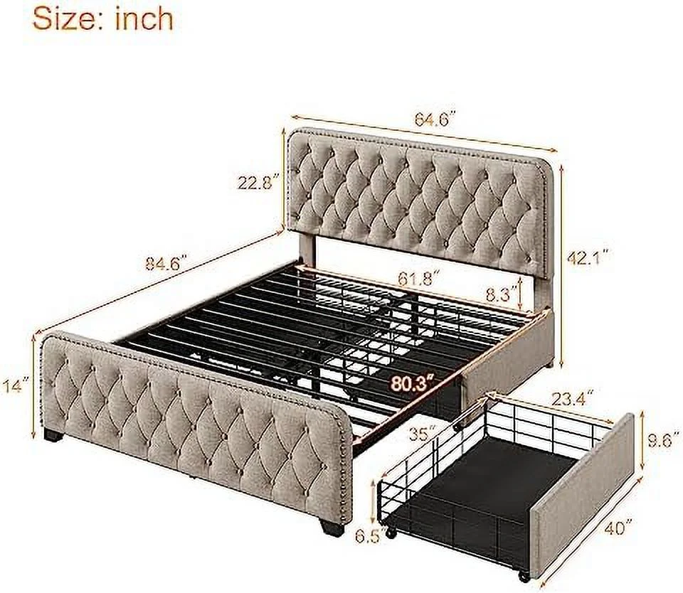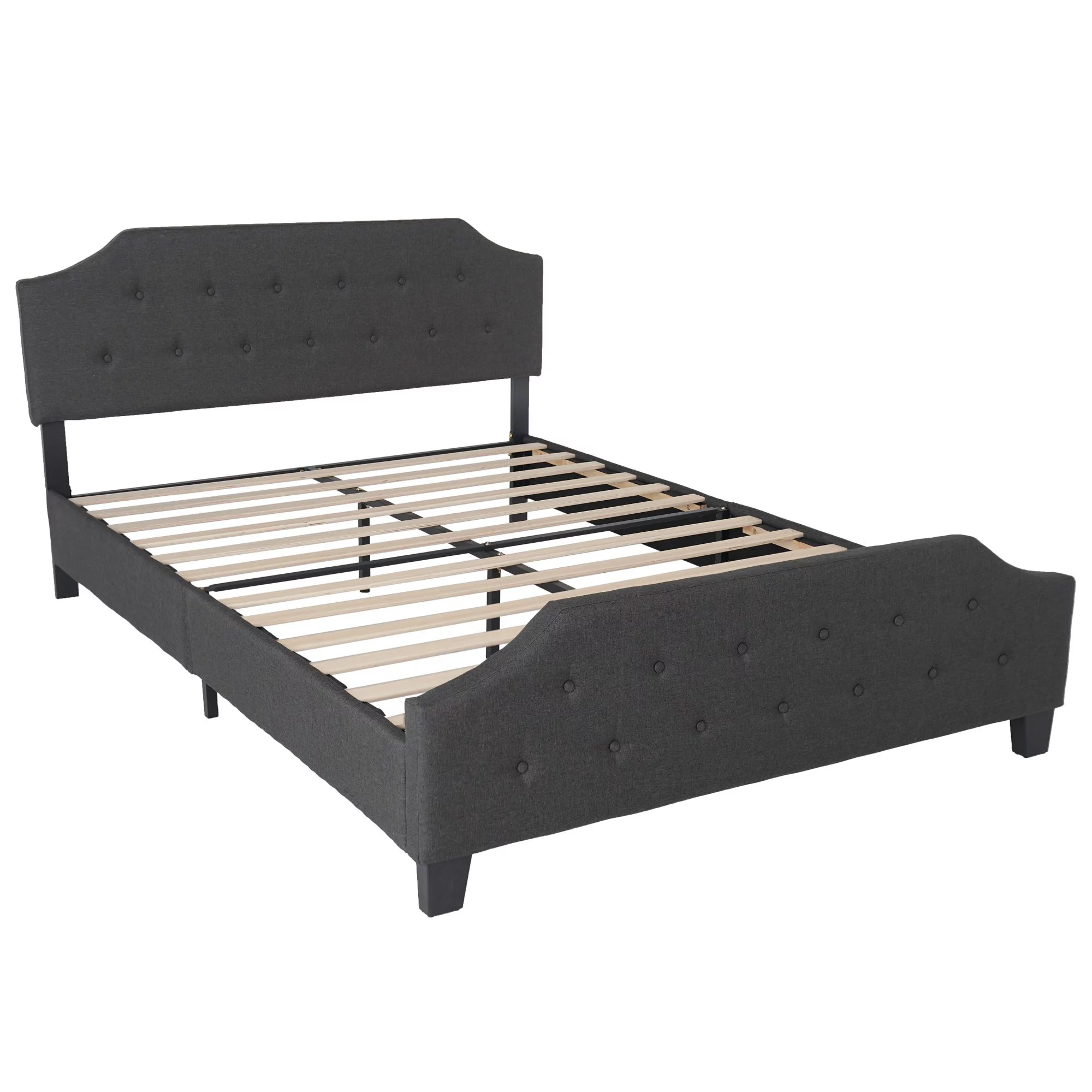 Queen Size Wood Platform Bed Frame 800 lbs Capacity with Headboard and Footboard Gray