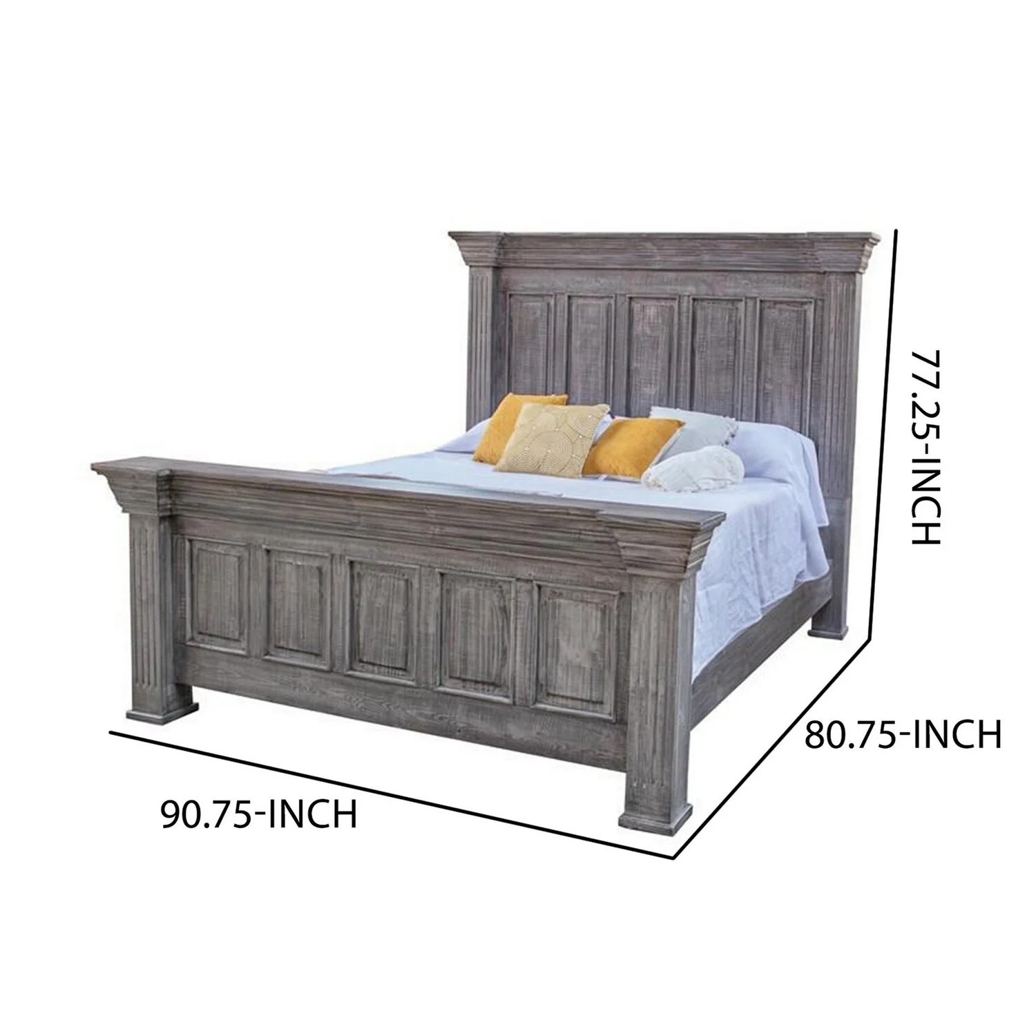 Benjara Siya Queen Size Bed, Clean Rustic Headboard and Footboard, Gray Finish
