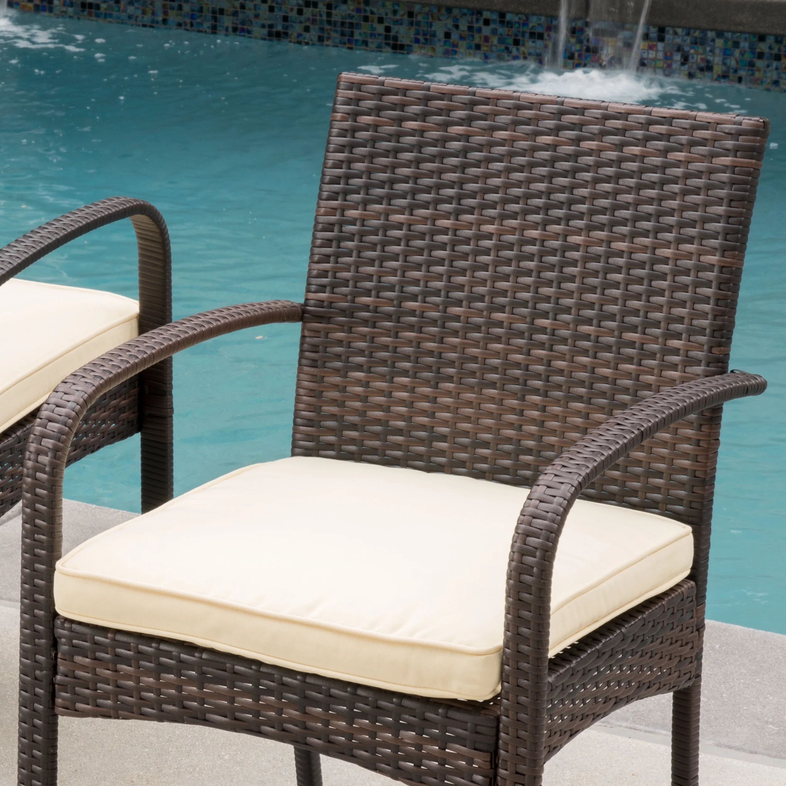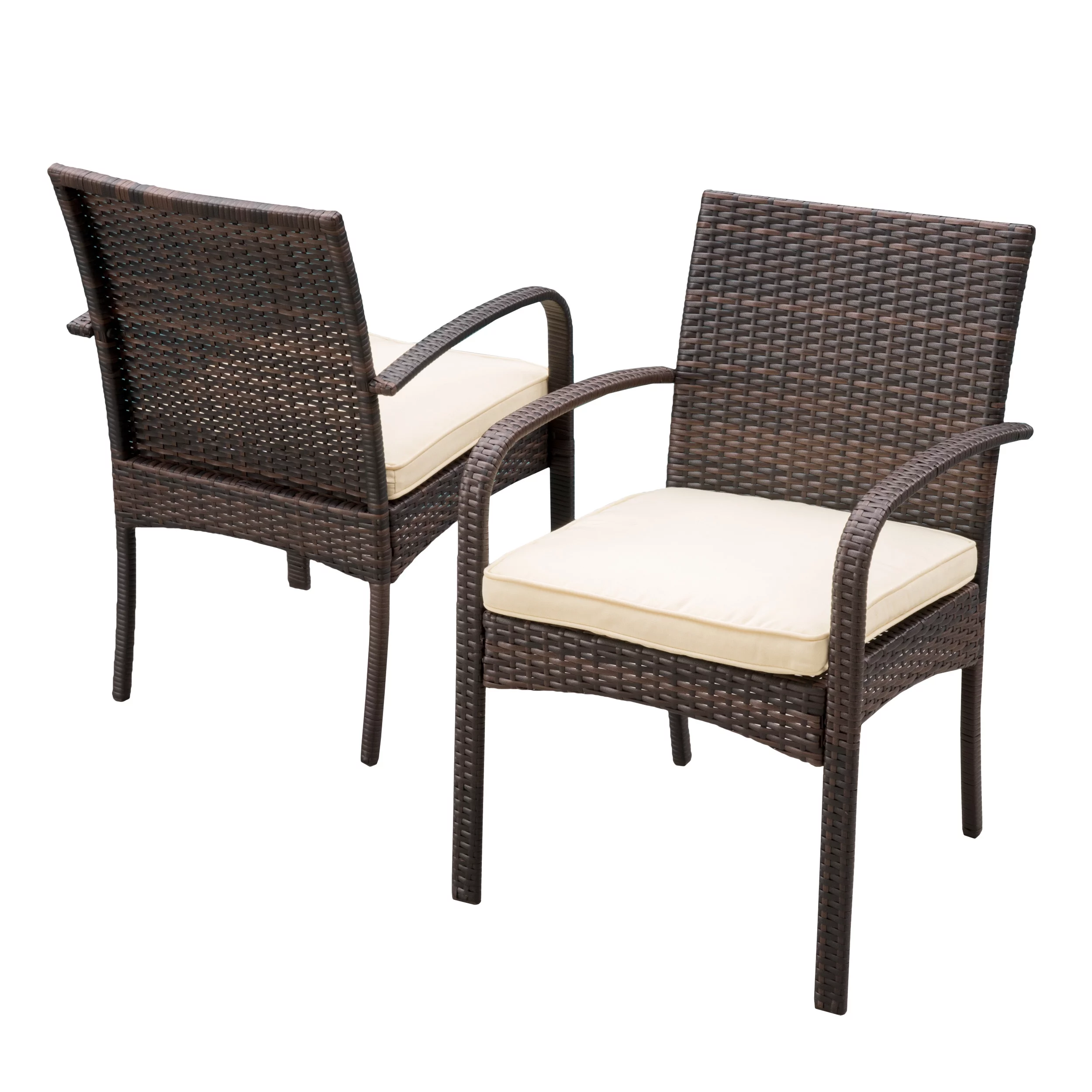 GDF Studio Braymer Indoor/Outdoor Wicker Dining Chairs, Set of 2, Light Brown and Black