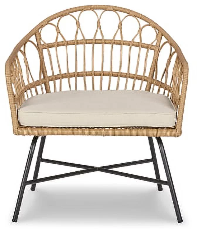 Signature Design by Ashley Hoonah Casual 16" Wicker Frame and Metal Base Indoor Outdoor Accent Chair, Beige Black