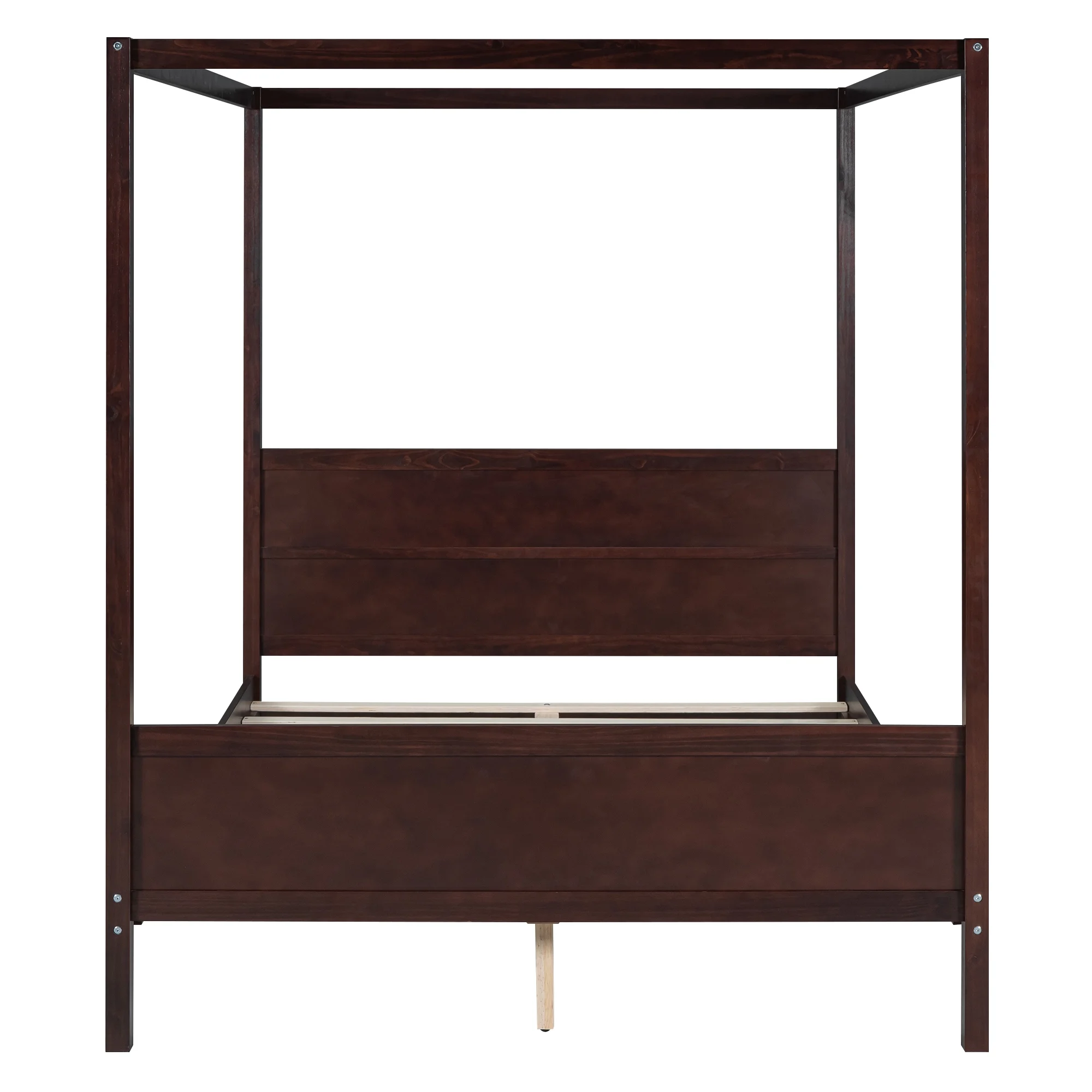 Queen Size Canopy Platform Bed with Headboard and Footboard,Slat Support Leg - Espresso