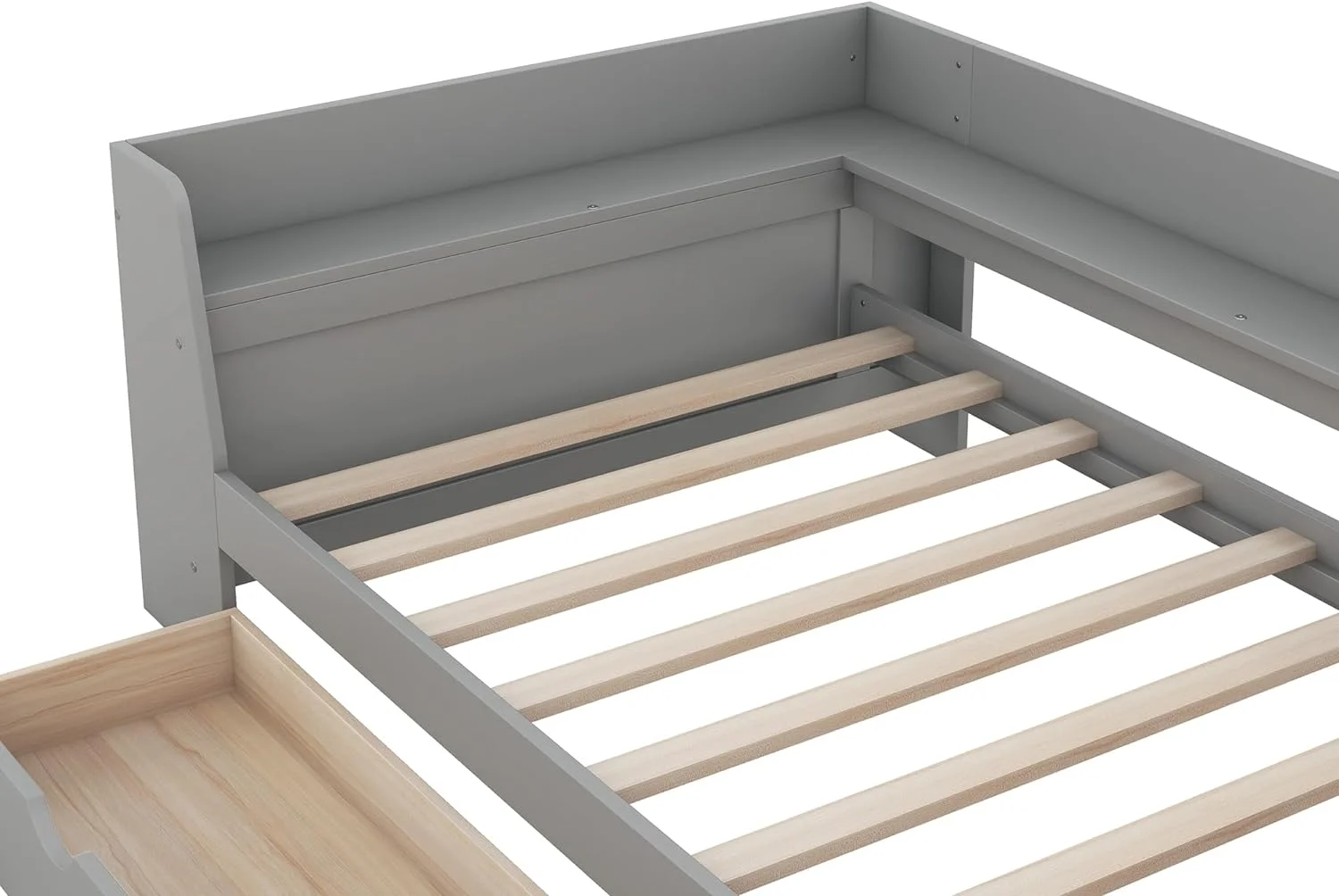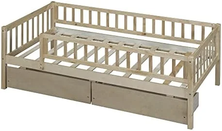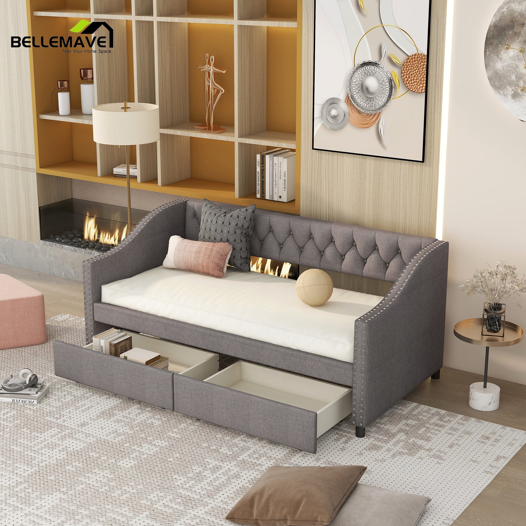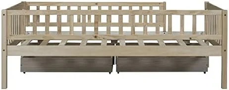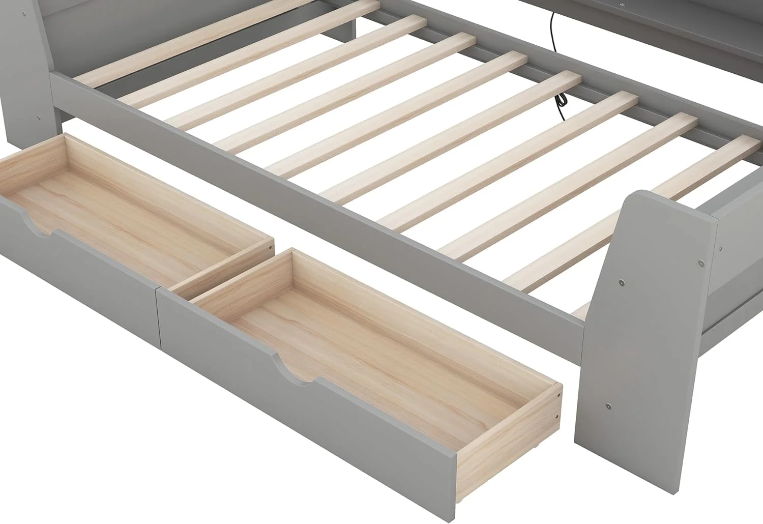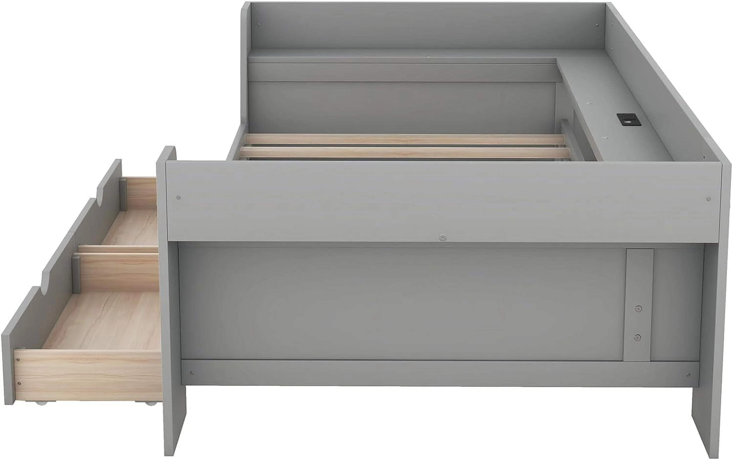 Day Beds Size, Daybed With 2 Storage Drawers And Shelves,Wooden Daybed With Built-In Charging Station,Gray