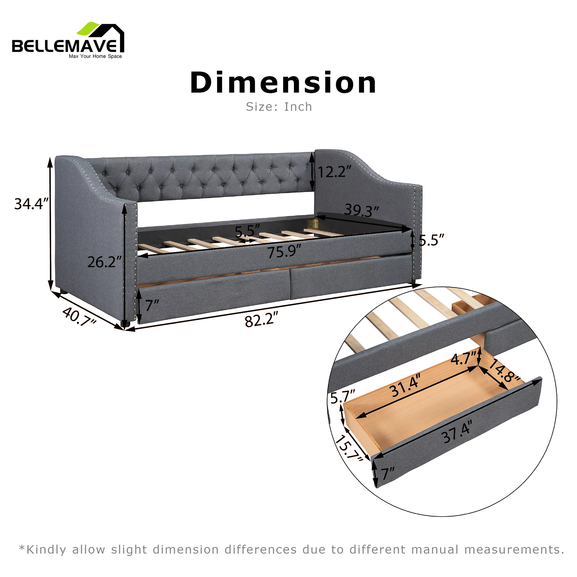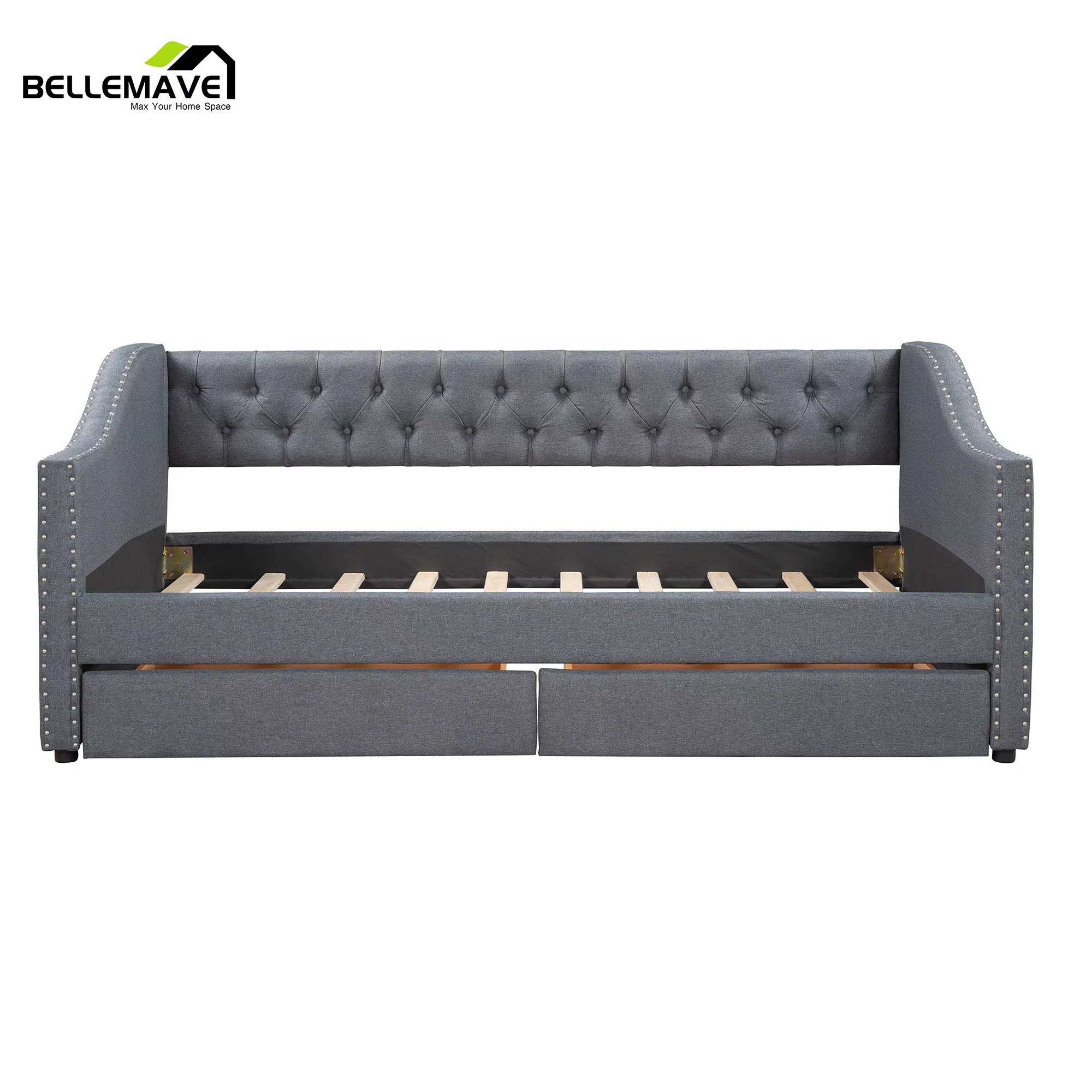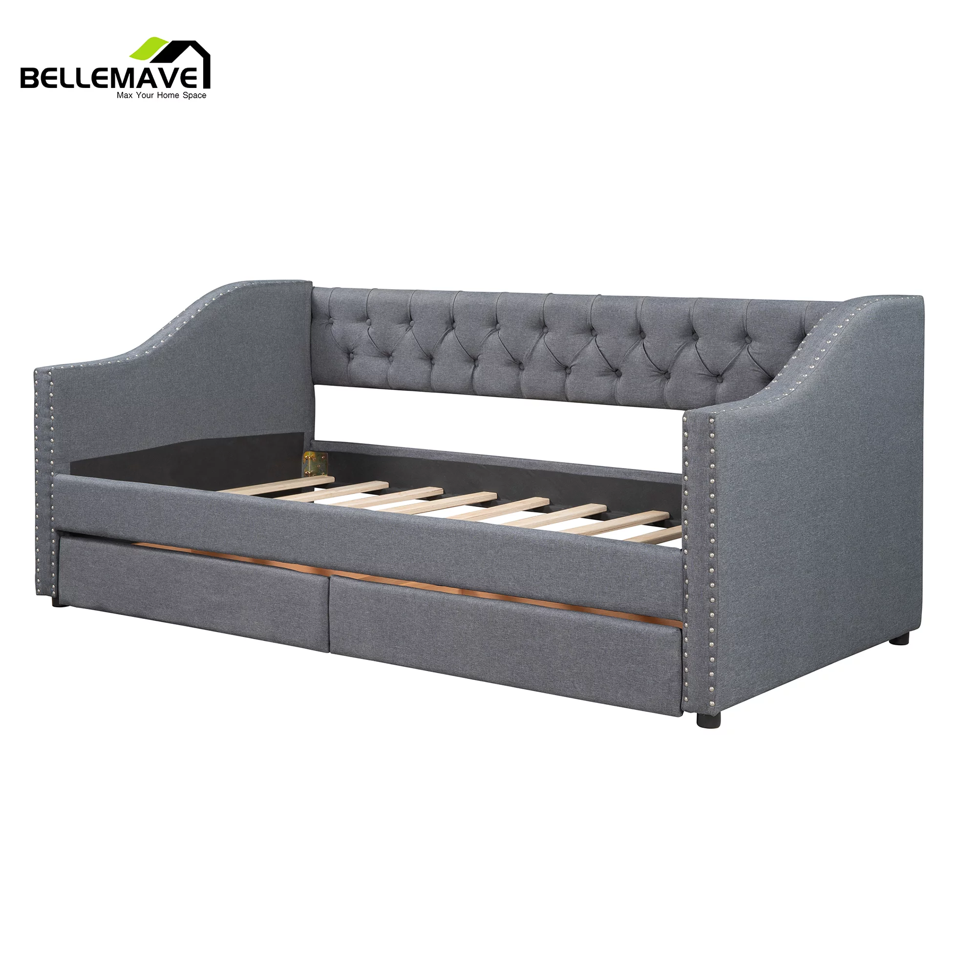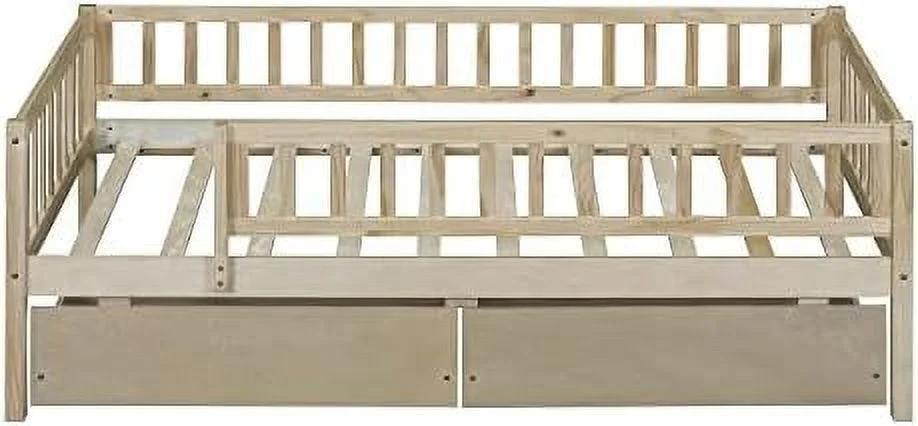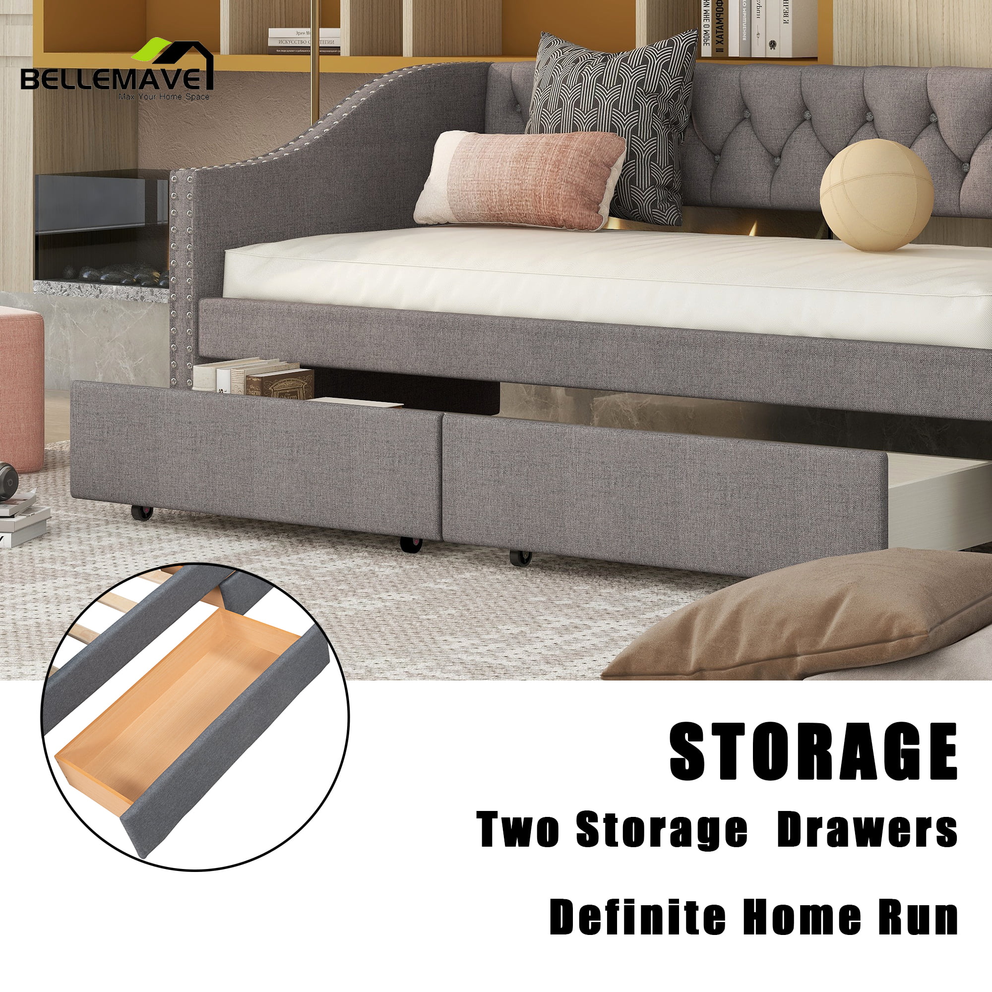 Day Beds Size, Daybed With 2 Storage Drawers And Shelves,Wooden Daybed With Built-In Charging Station,Gray