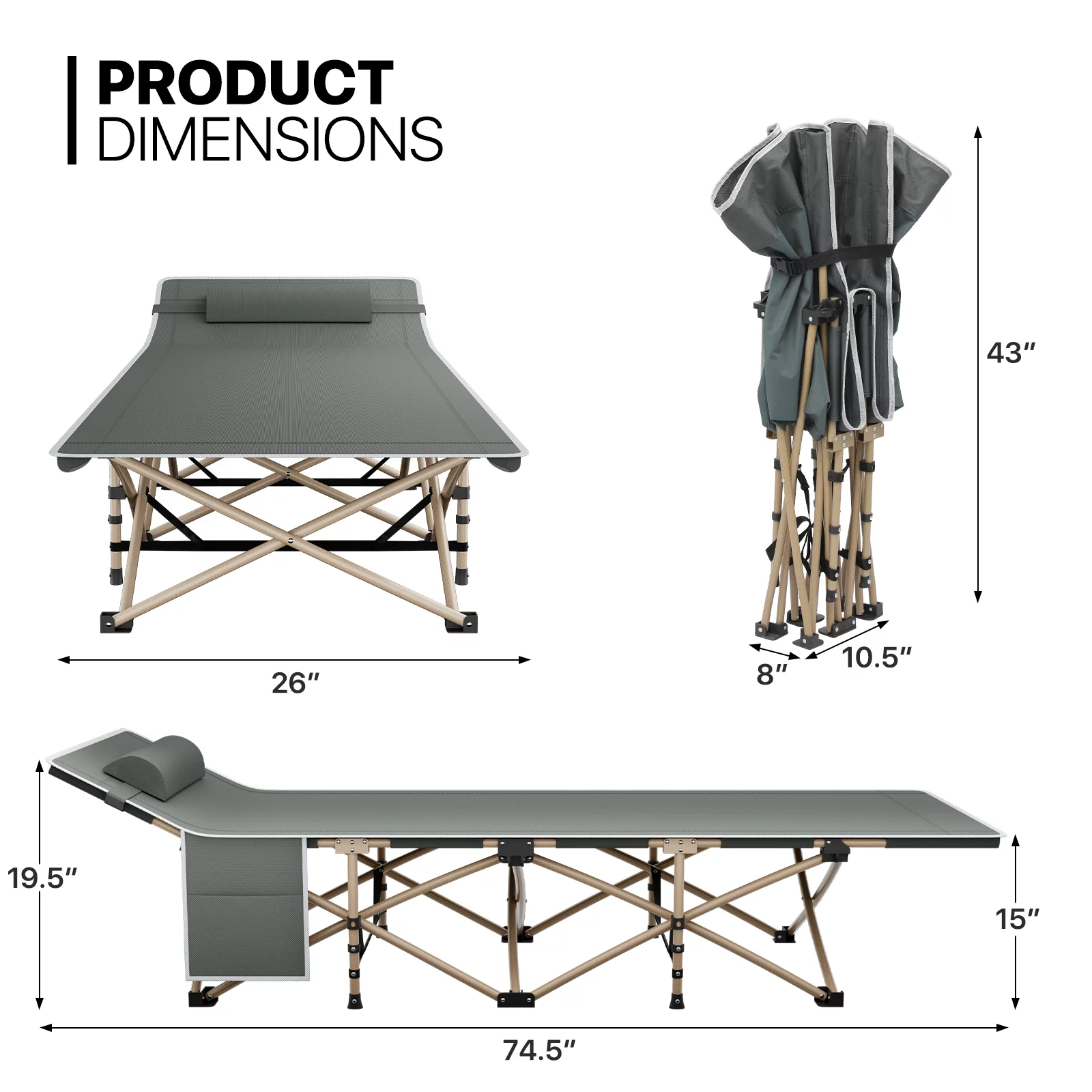 Dazzduo Portable Folding Bed, Single Person Camping Cot, 265LB Weight Capacity, Compact and Foldable