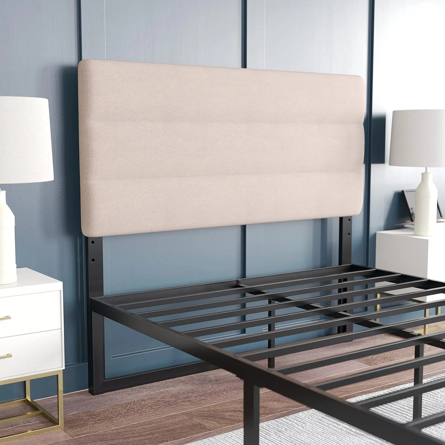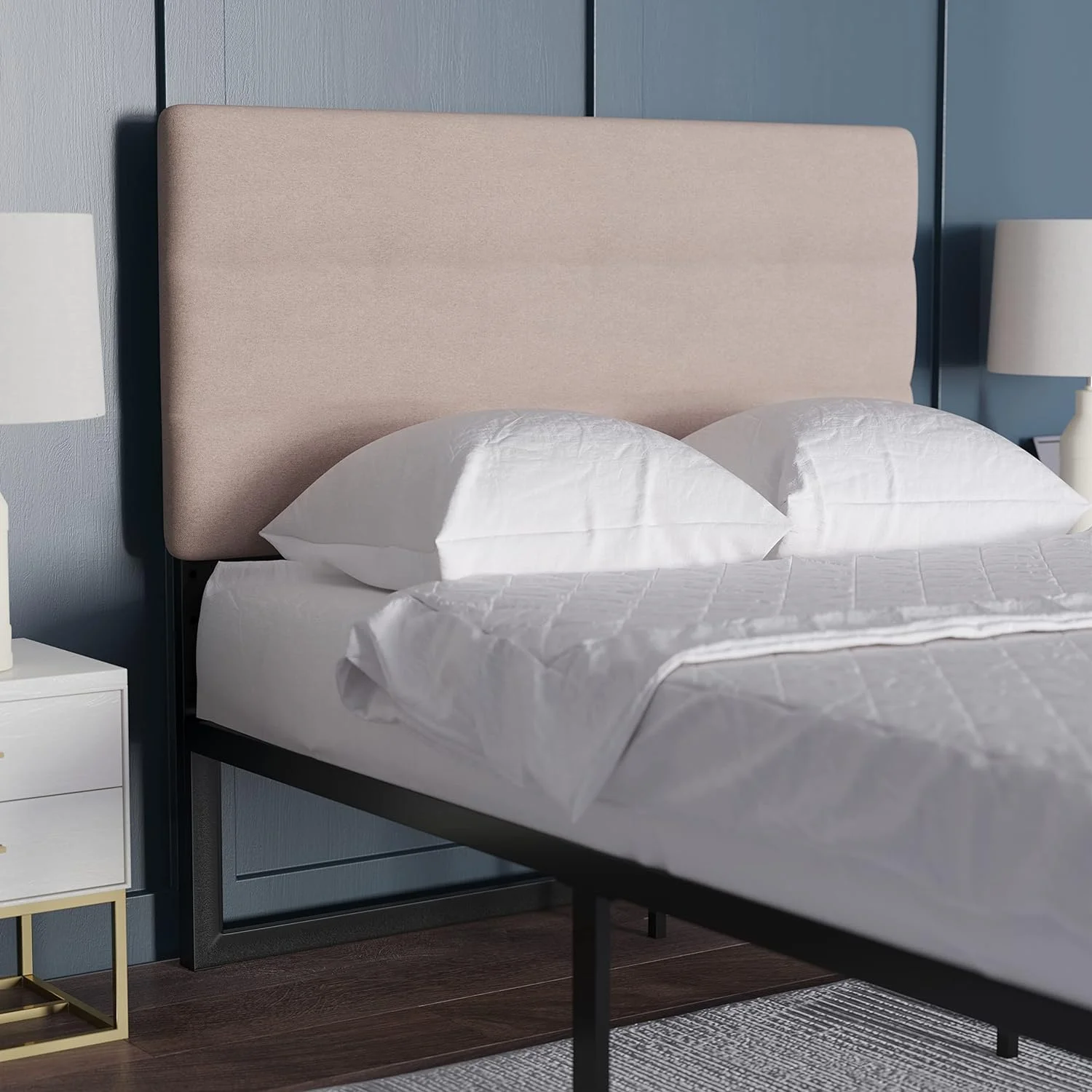 Roseberry Kids Modern Fabric Upholstered Queen Panel Headboard In Beige