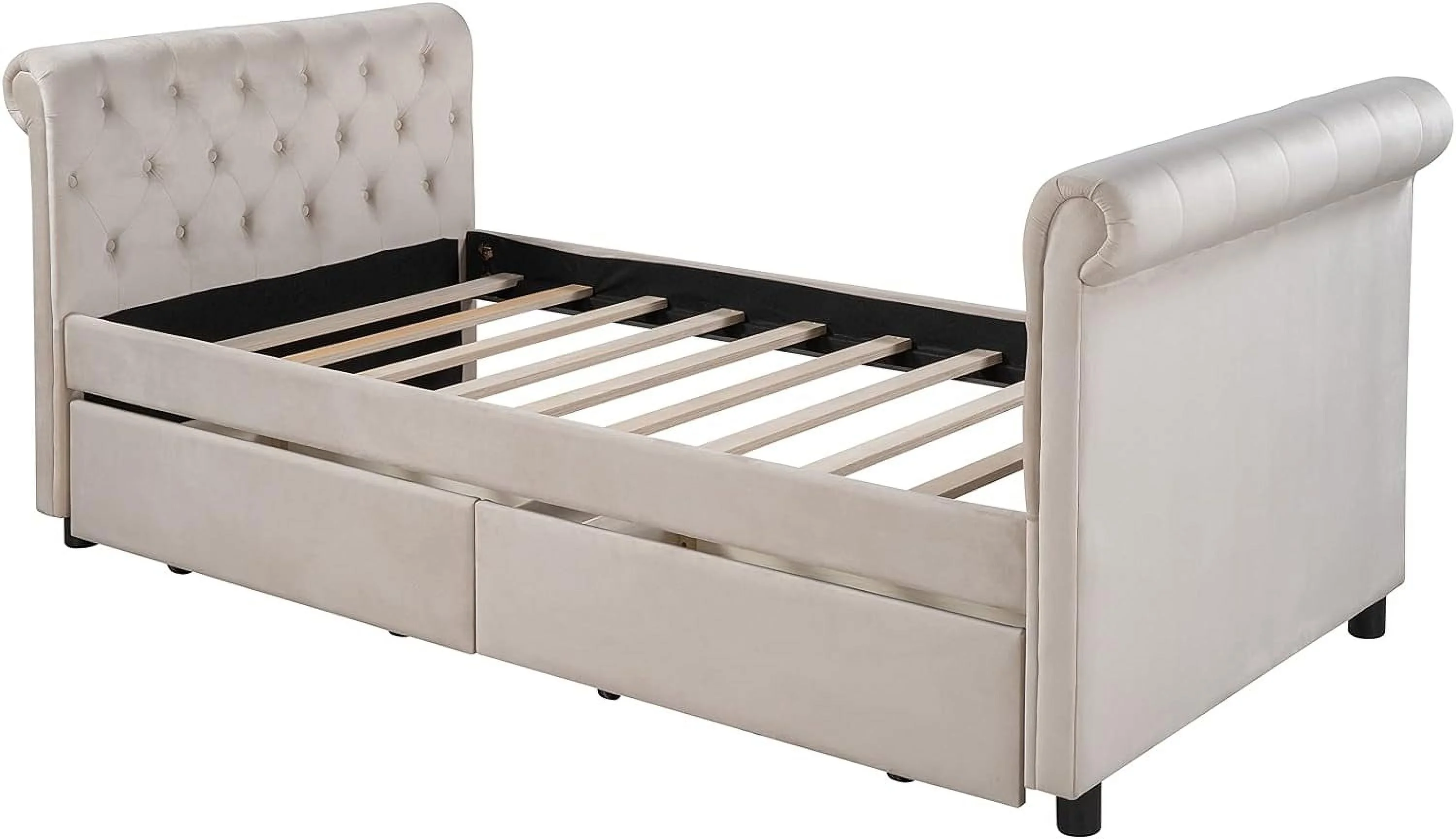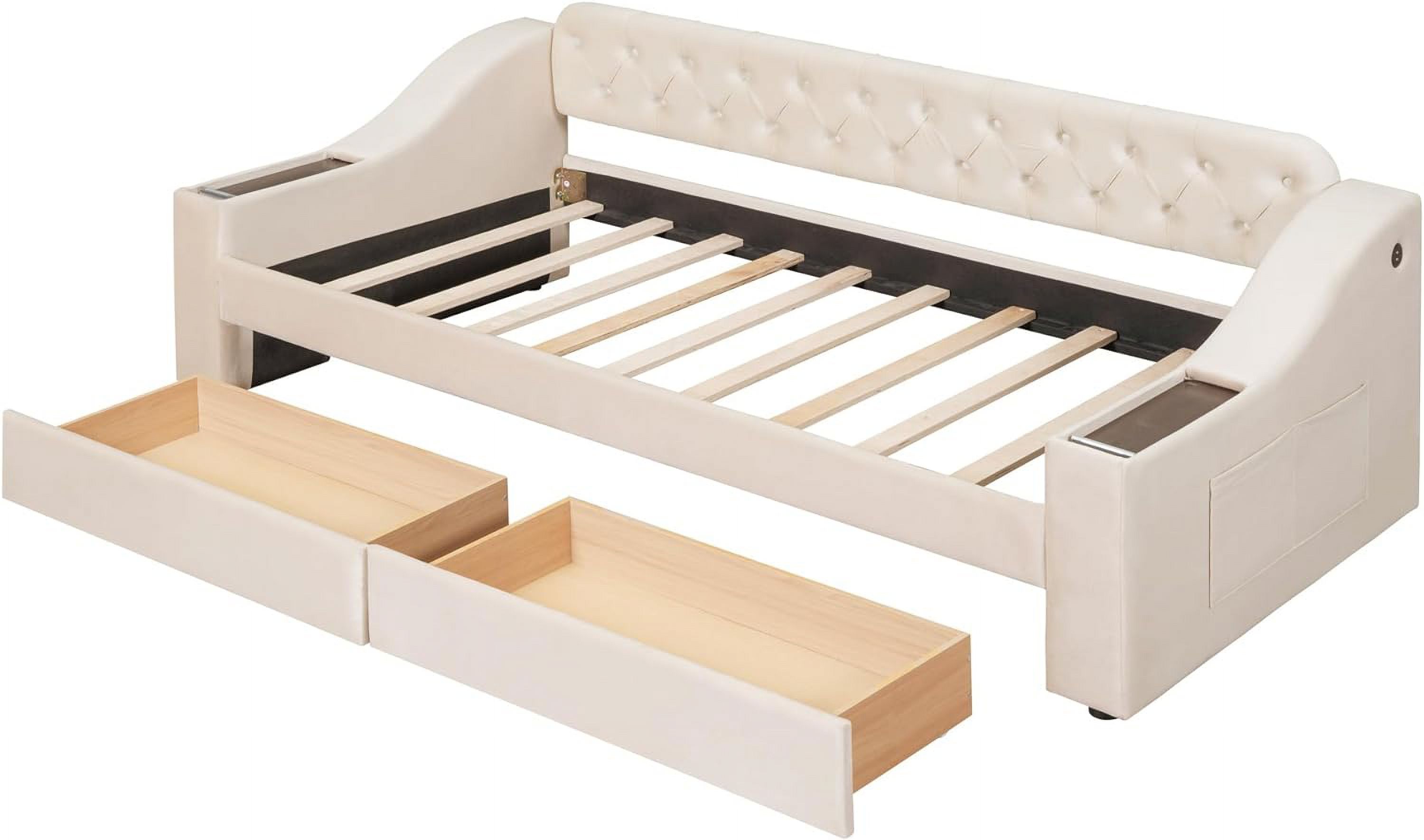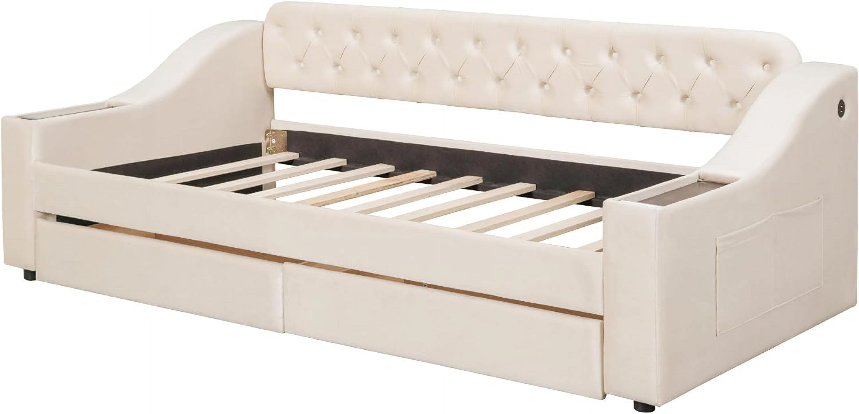 Size Daybed With Drawers, Upholstered Daybed Frame With Storage Armrests Ad USB Port, Beige