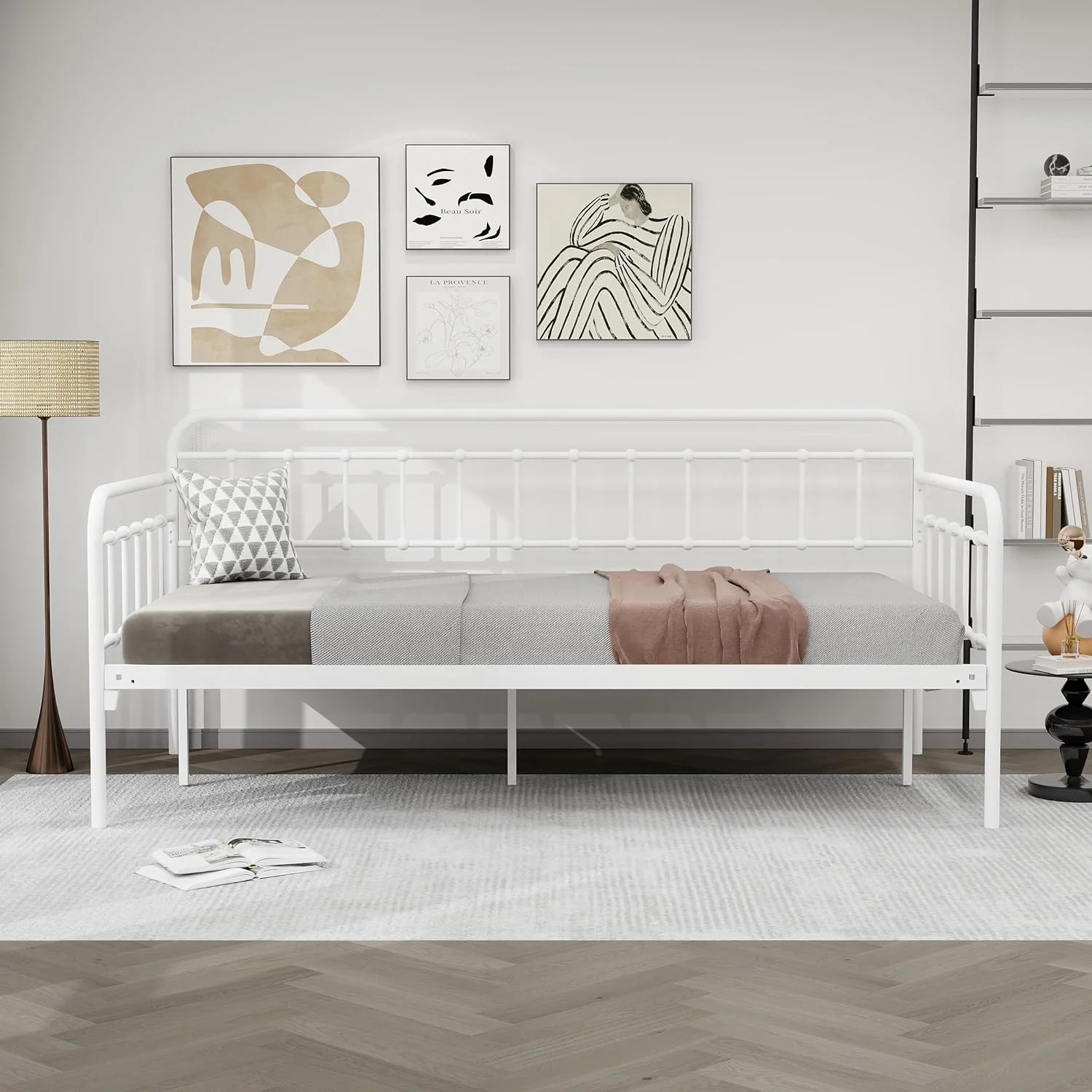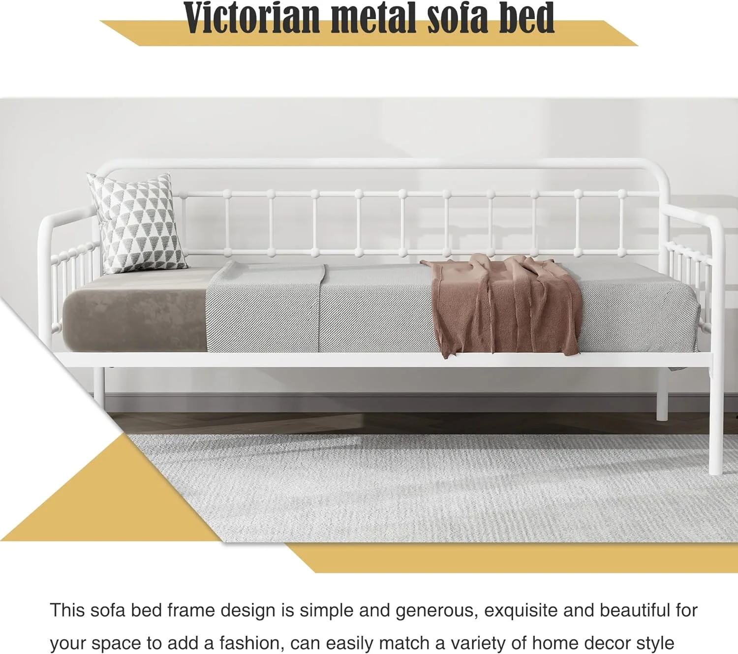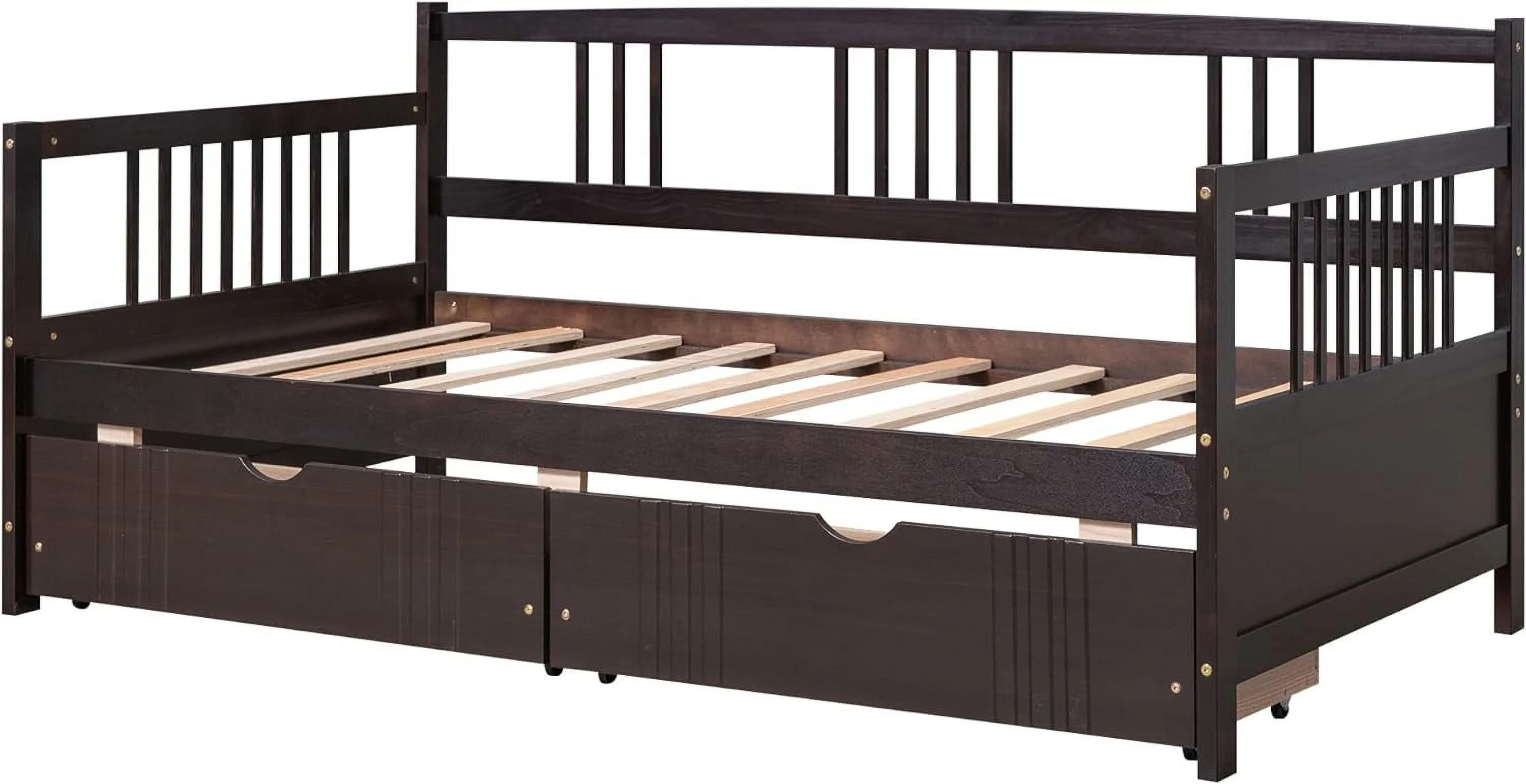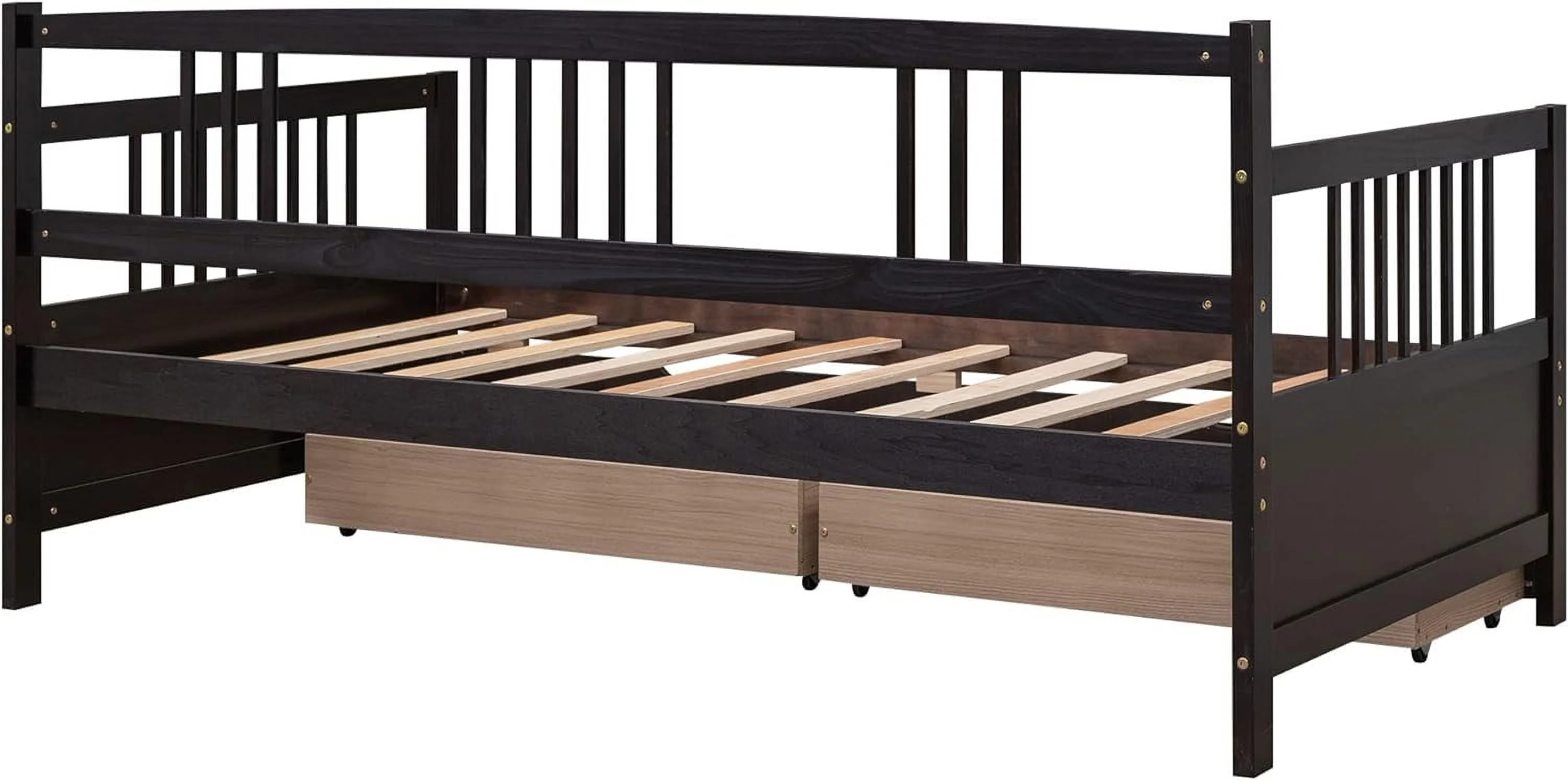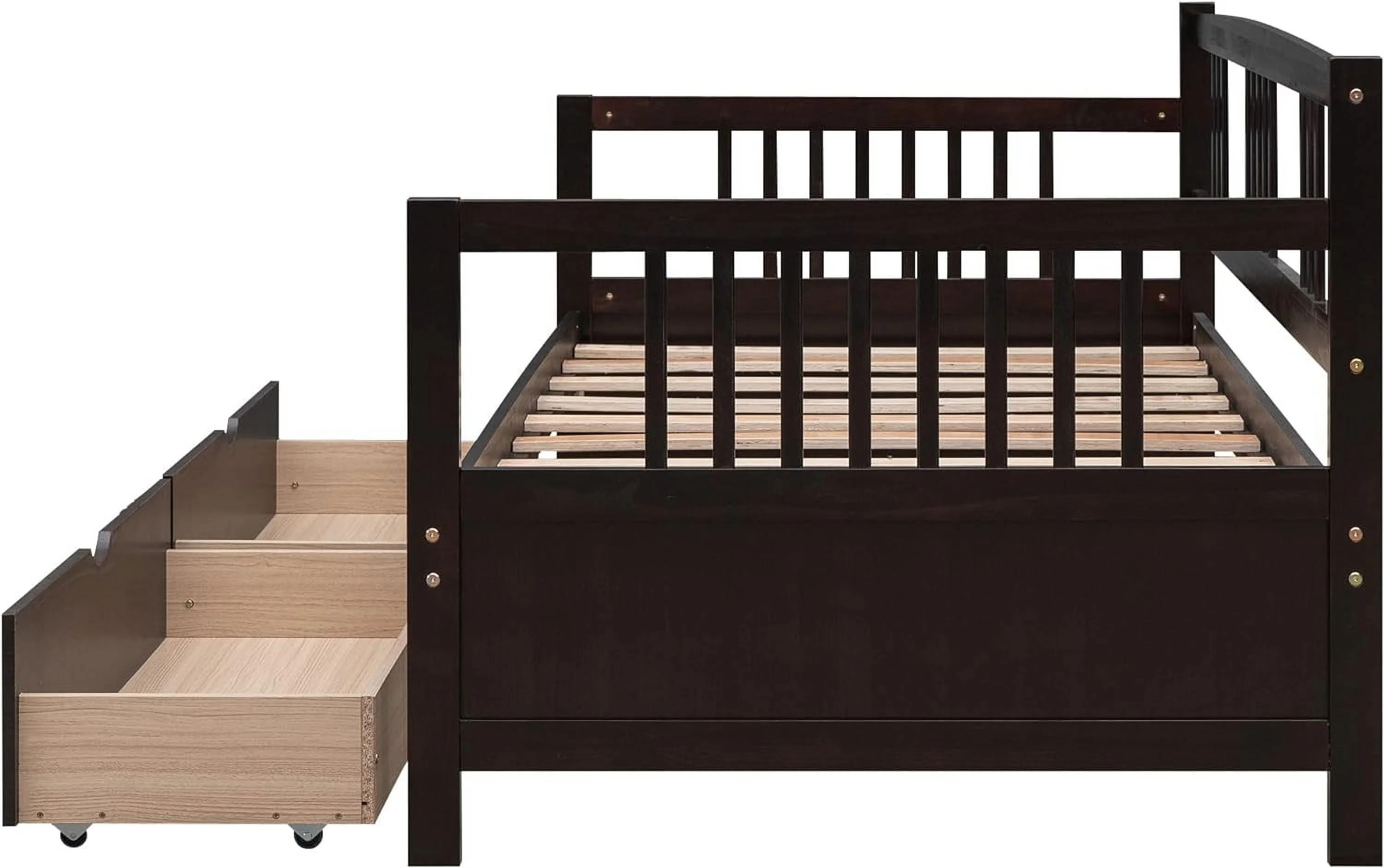 Size Metal Daybed With Trudle Platform Bed Frame Trudle Bed With Built-I Casters For Livig Room, Guest Room, Black