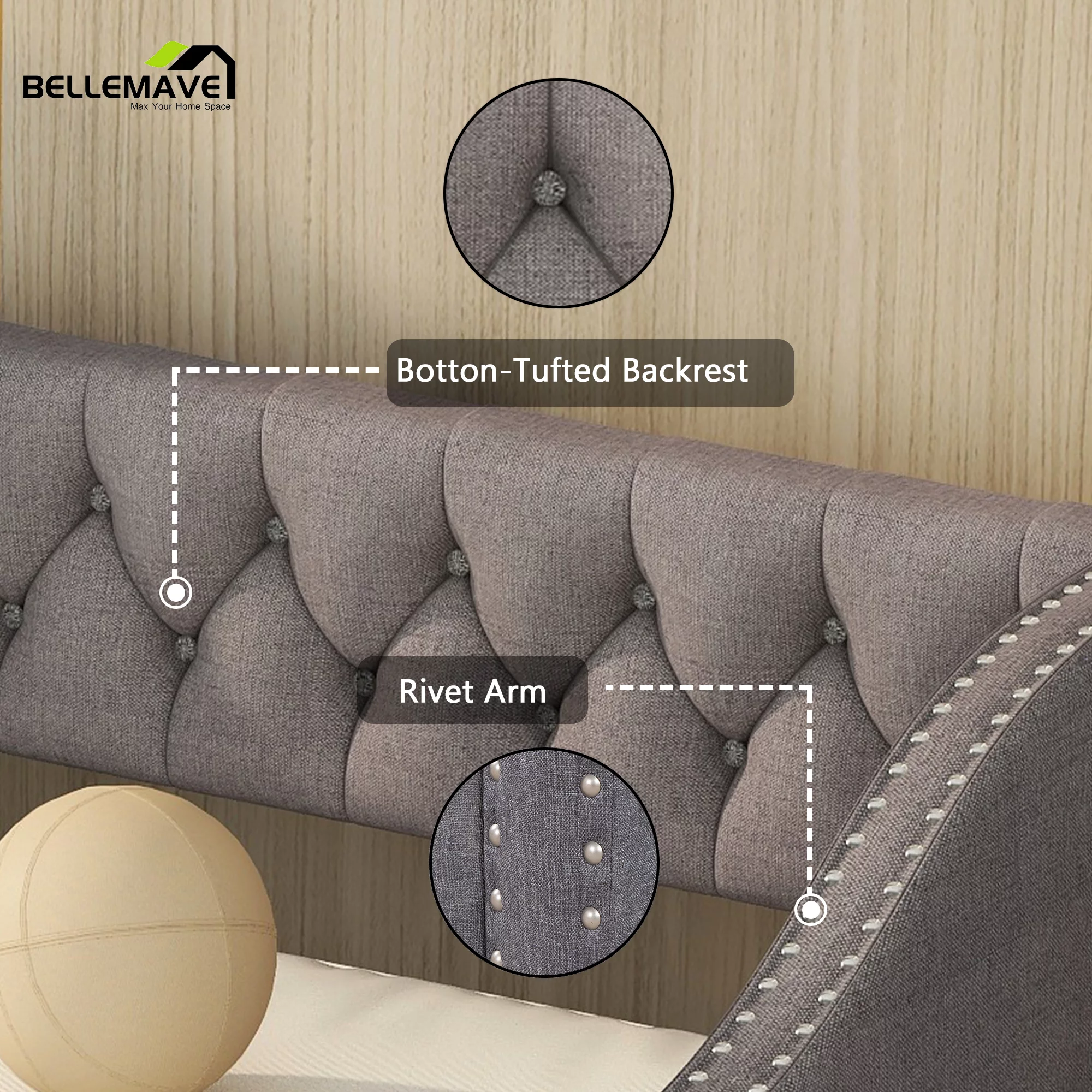 US Pride Furniture U.S. Pride Furniture Lana Fabric-upholstered Panel Headboard with Nailhead Trim Beige