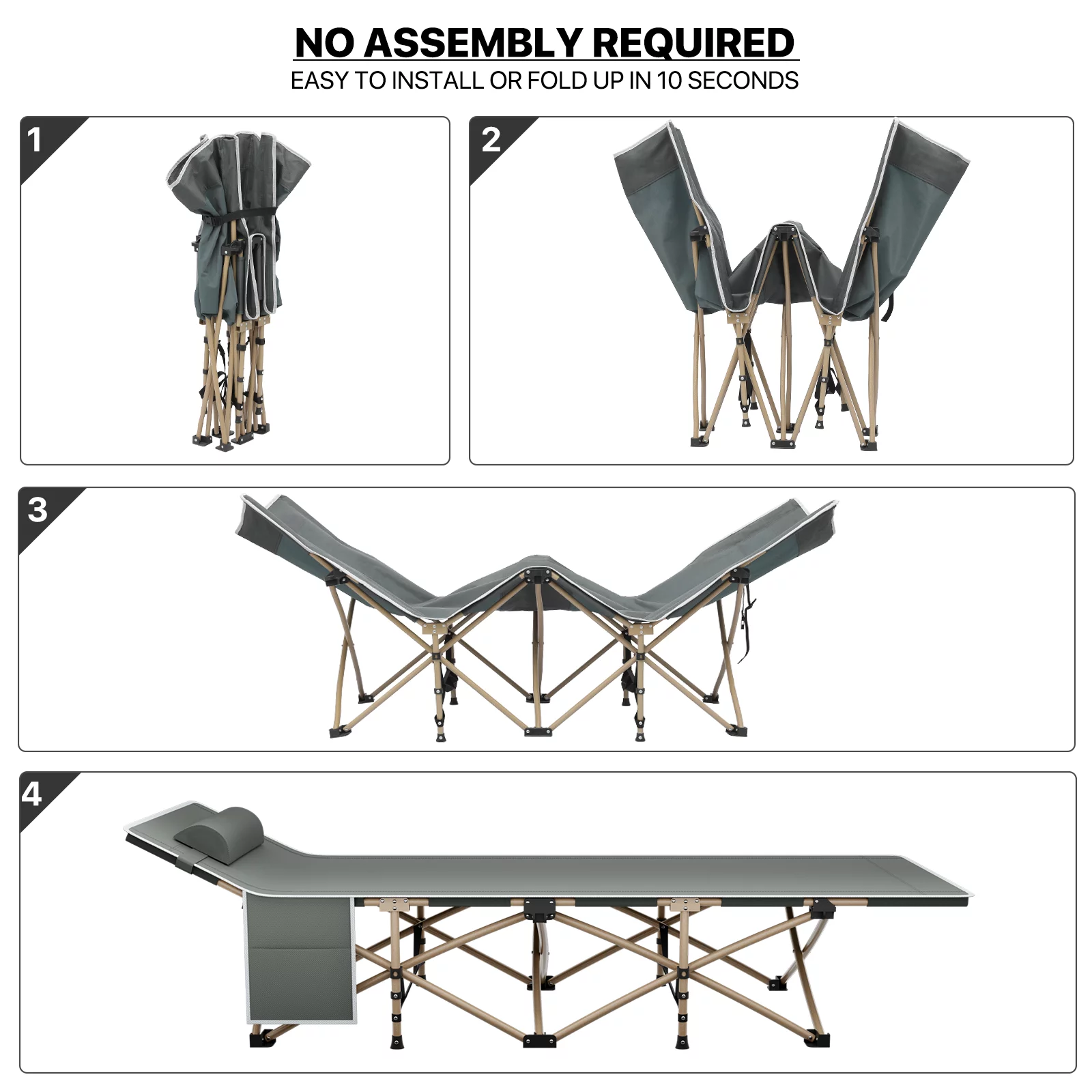 Lightweight Folding Bed for Camping, Single Person Cot, 265LB Weight Capacity, Portable Design