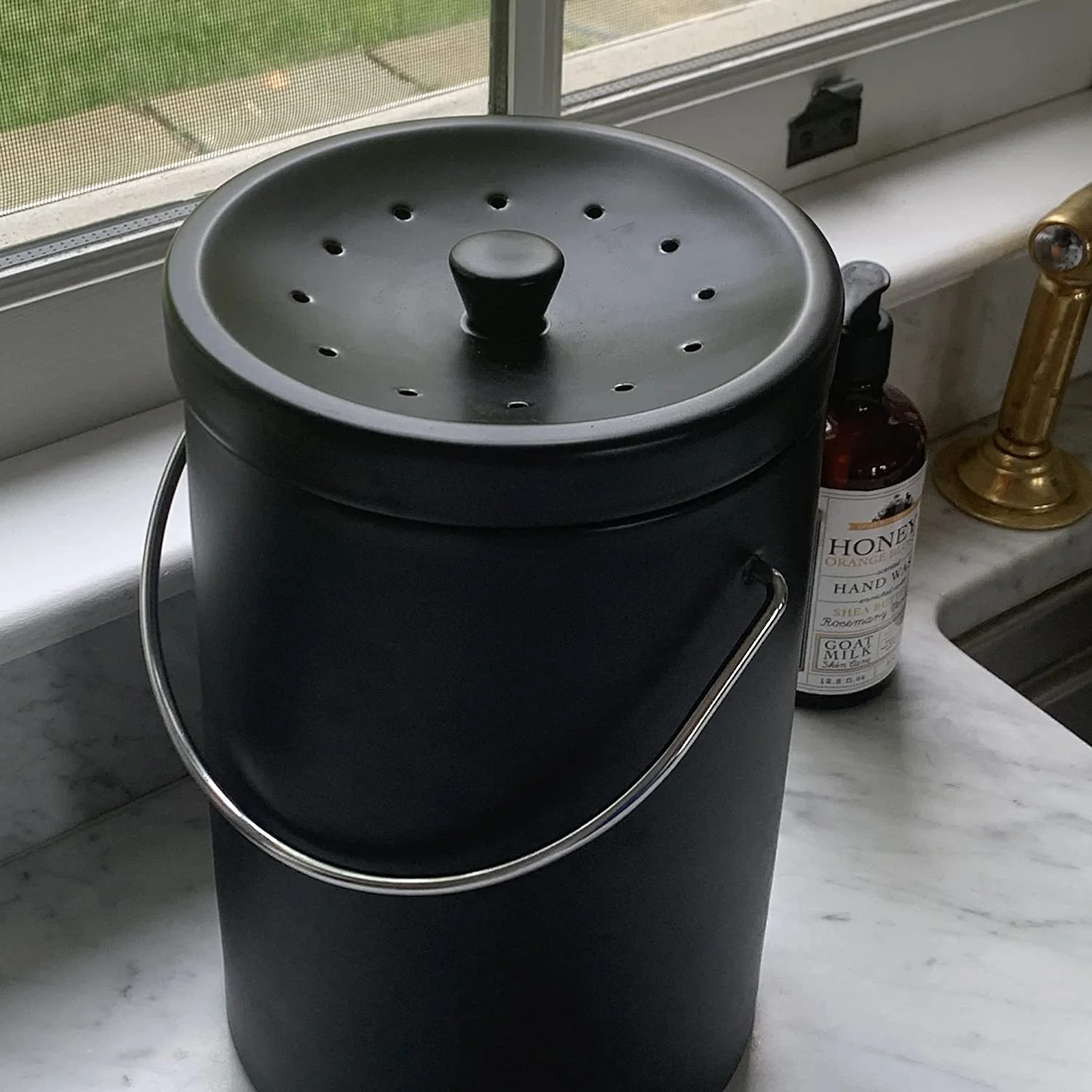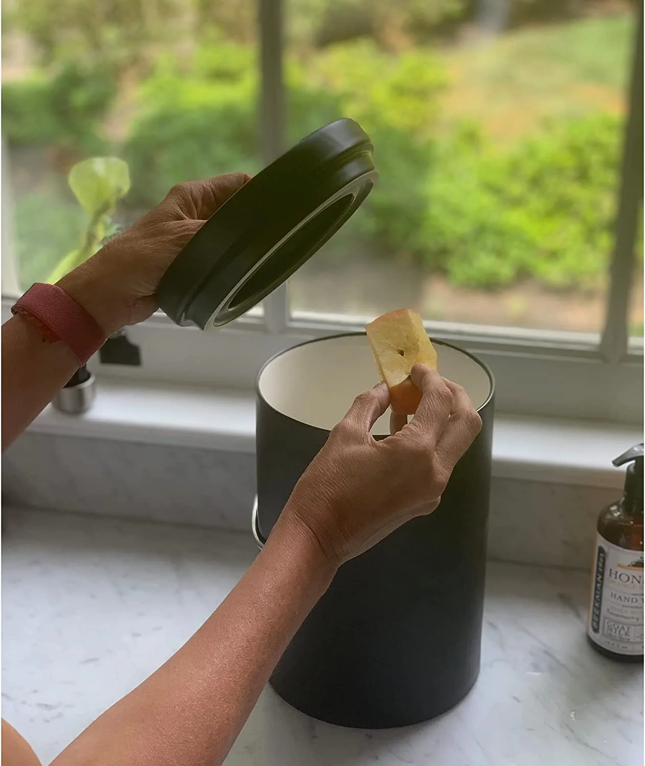 mDesign Small Round Metal 4.8 Gallon Covered Bathroom Swing Lid Trash Can, Black