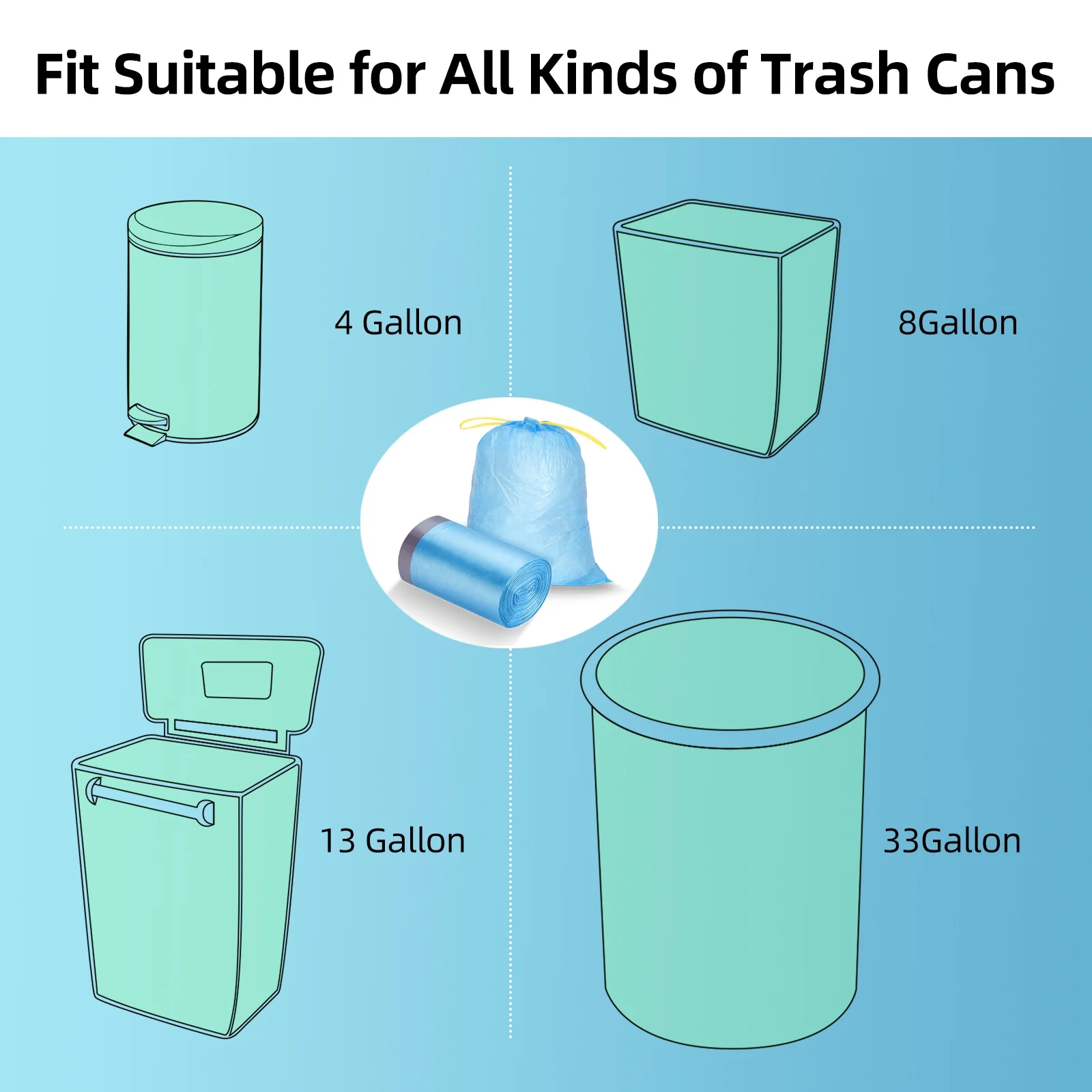 WVacFre 4Gallon 100 Counts Black Garbage Bags Kitchen Drawstring Trash Bags Small Size 45X50CM