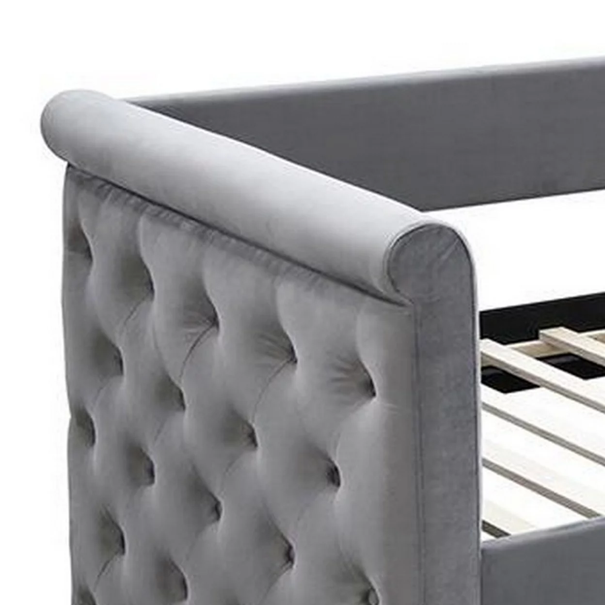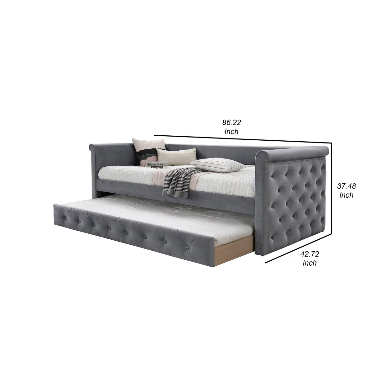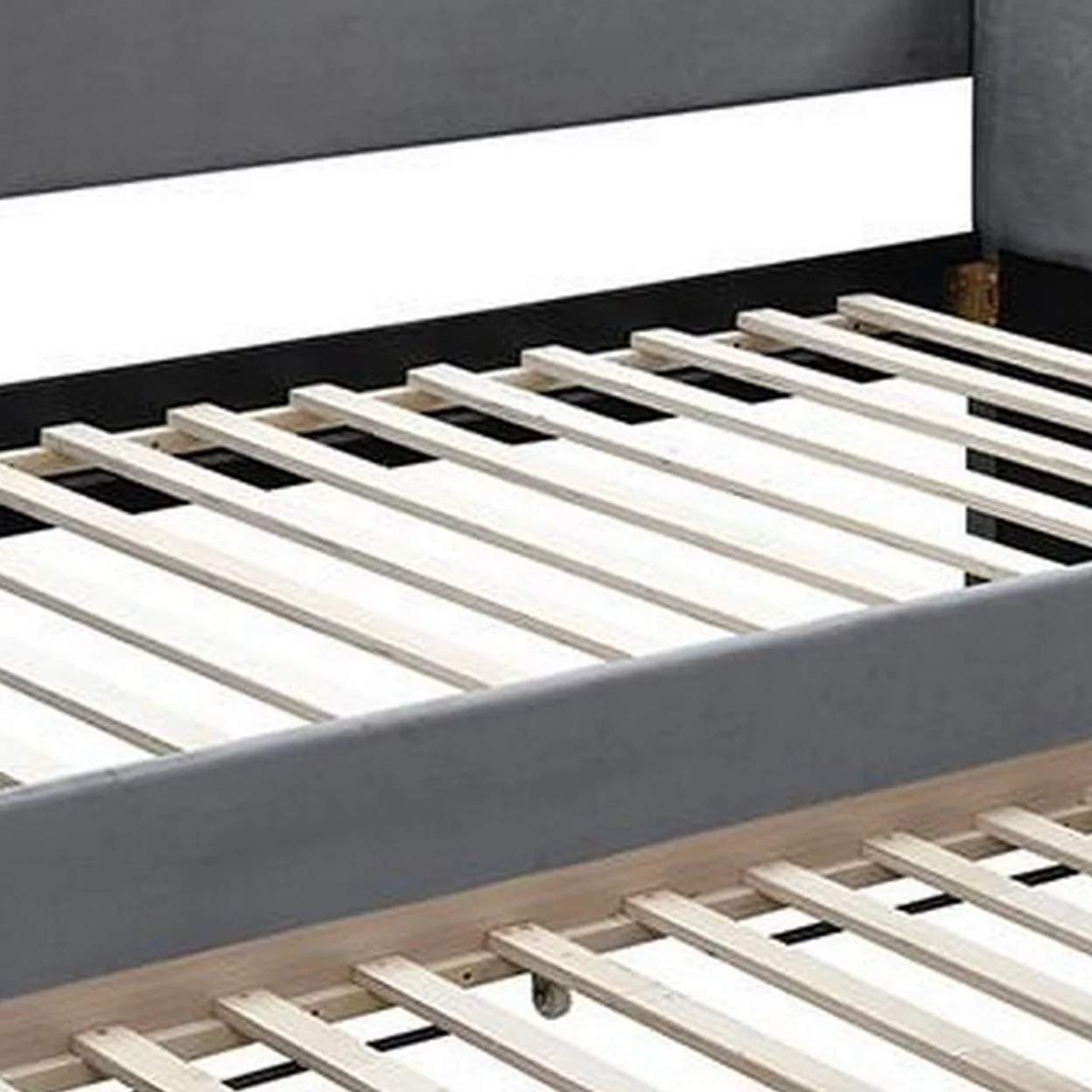 Edra Classic Wood Upholstered Day Bed with Trundle, Tufted Gray Burlap- Saltoro Sherpi