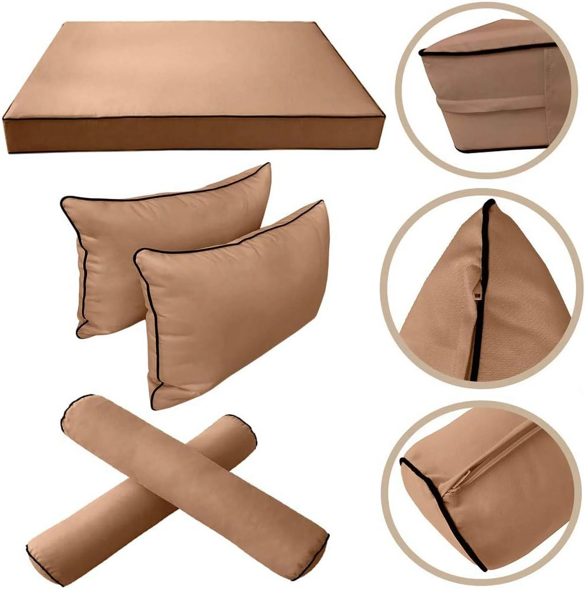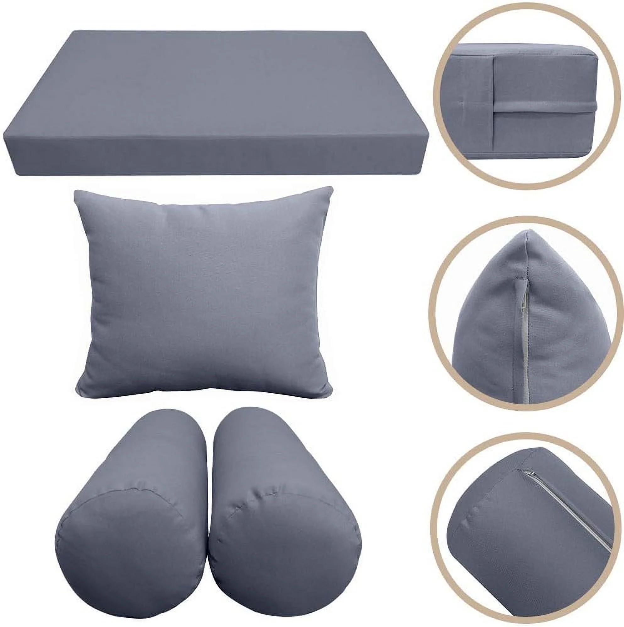 MH GLOBAL 5PC Outdoor Daybed Mattress Bolster Pillow Fitted Sheet Cover S.4 Crib Knife Edge AD001