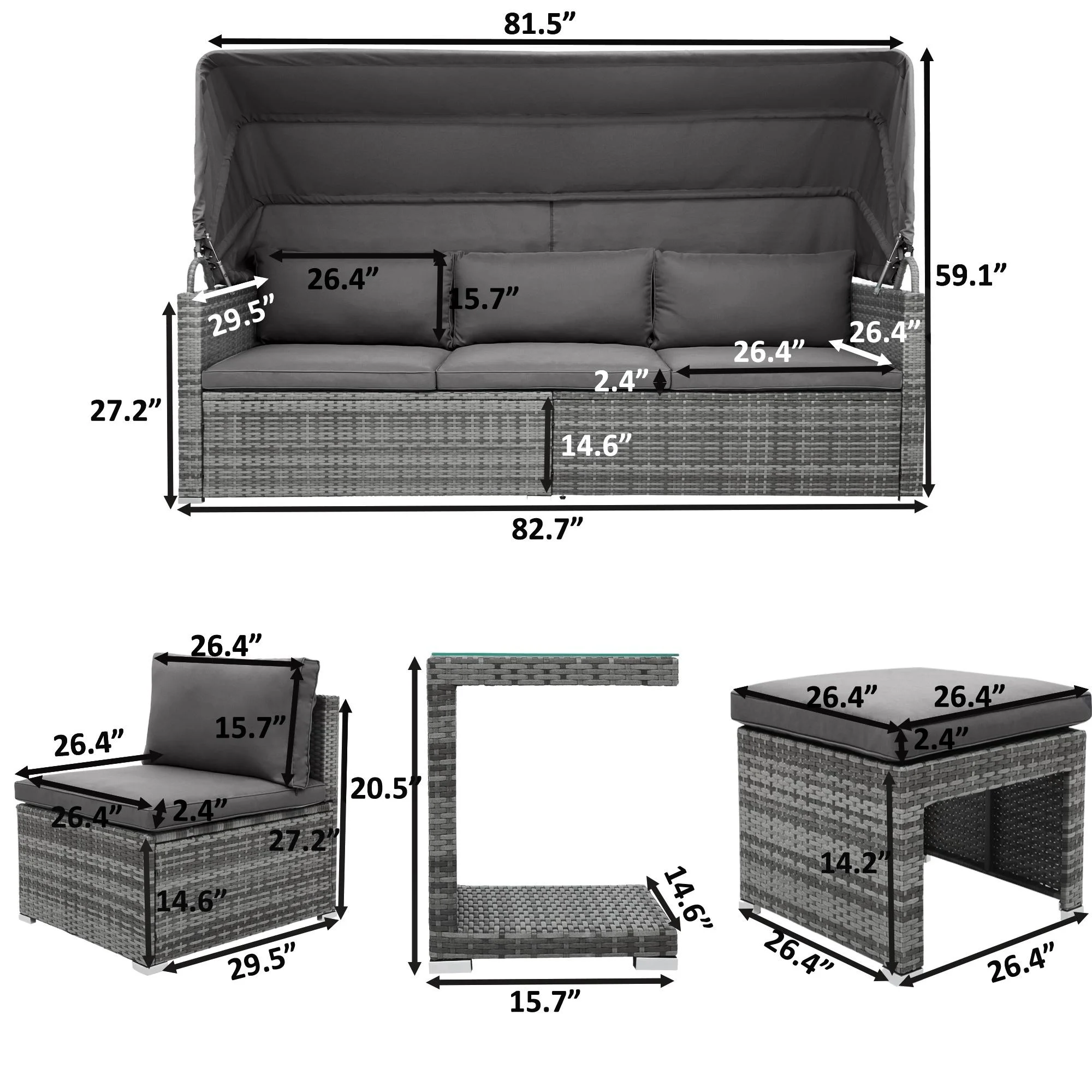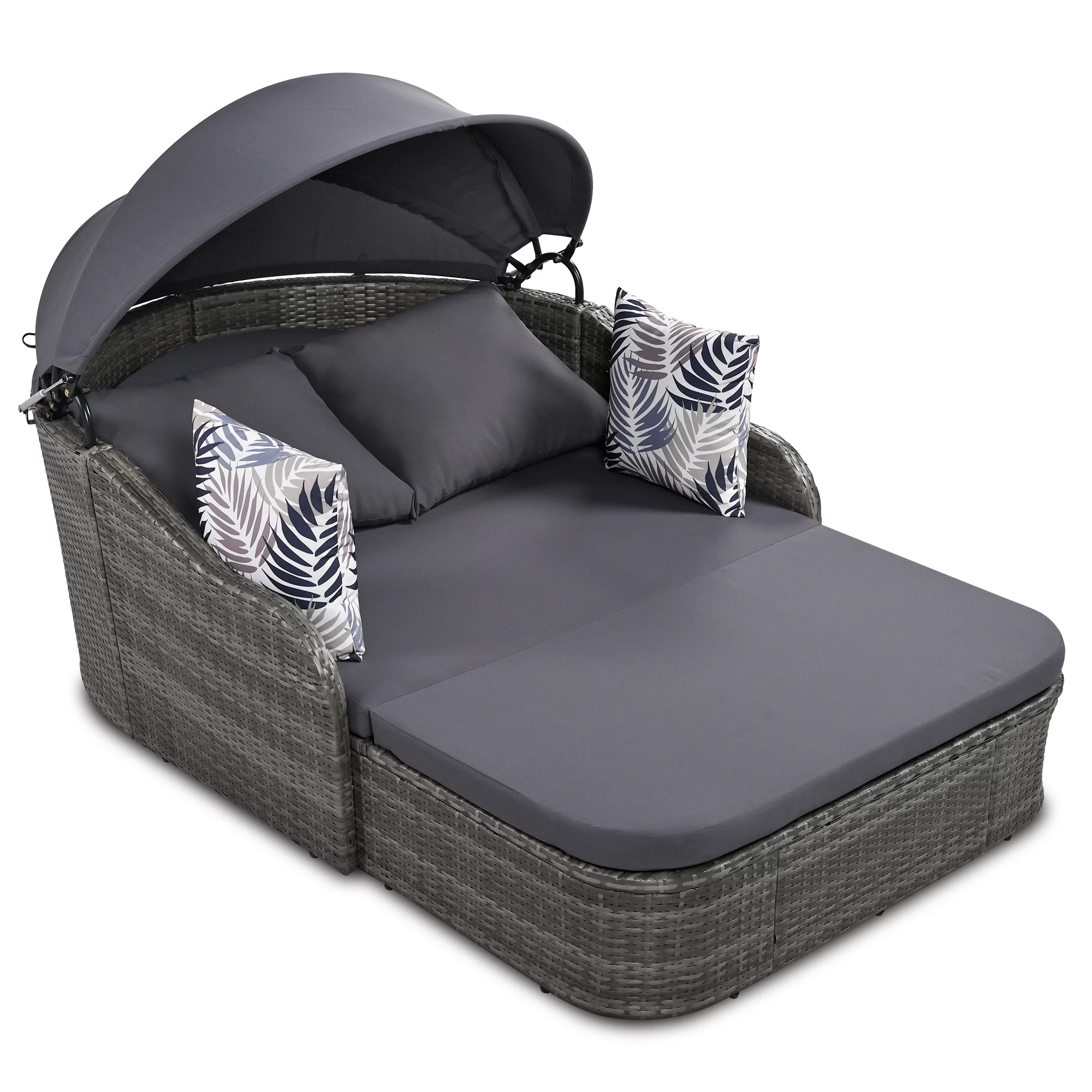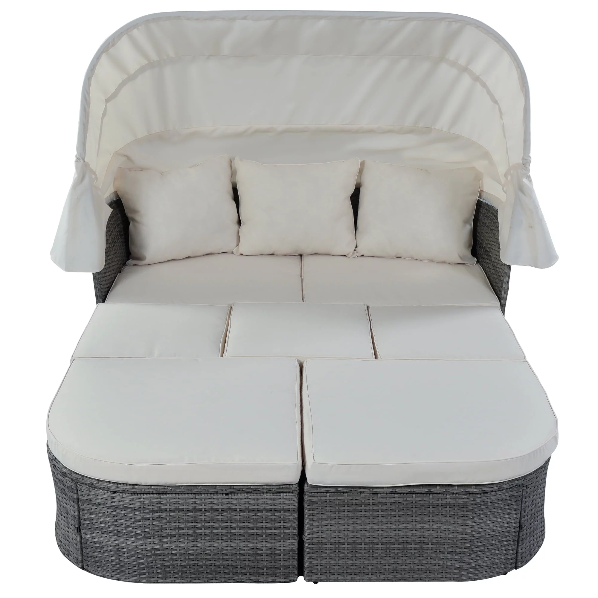 CoSoTower Outdoor Patio Furniture Set Daybed Sunbed with Retractable Canopy Conversation Set Wicker Furniture