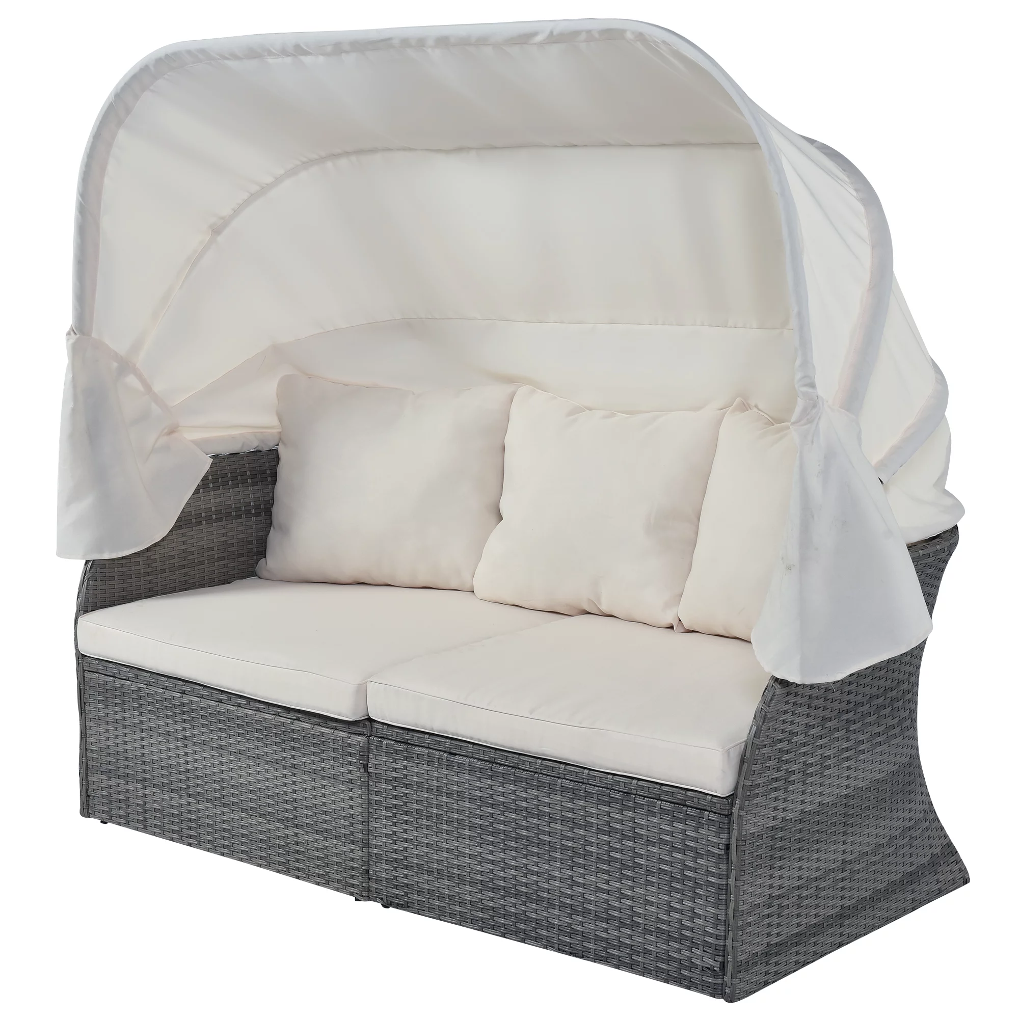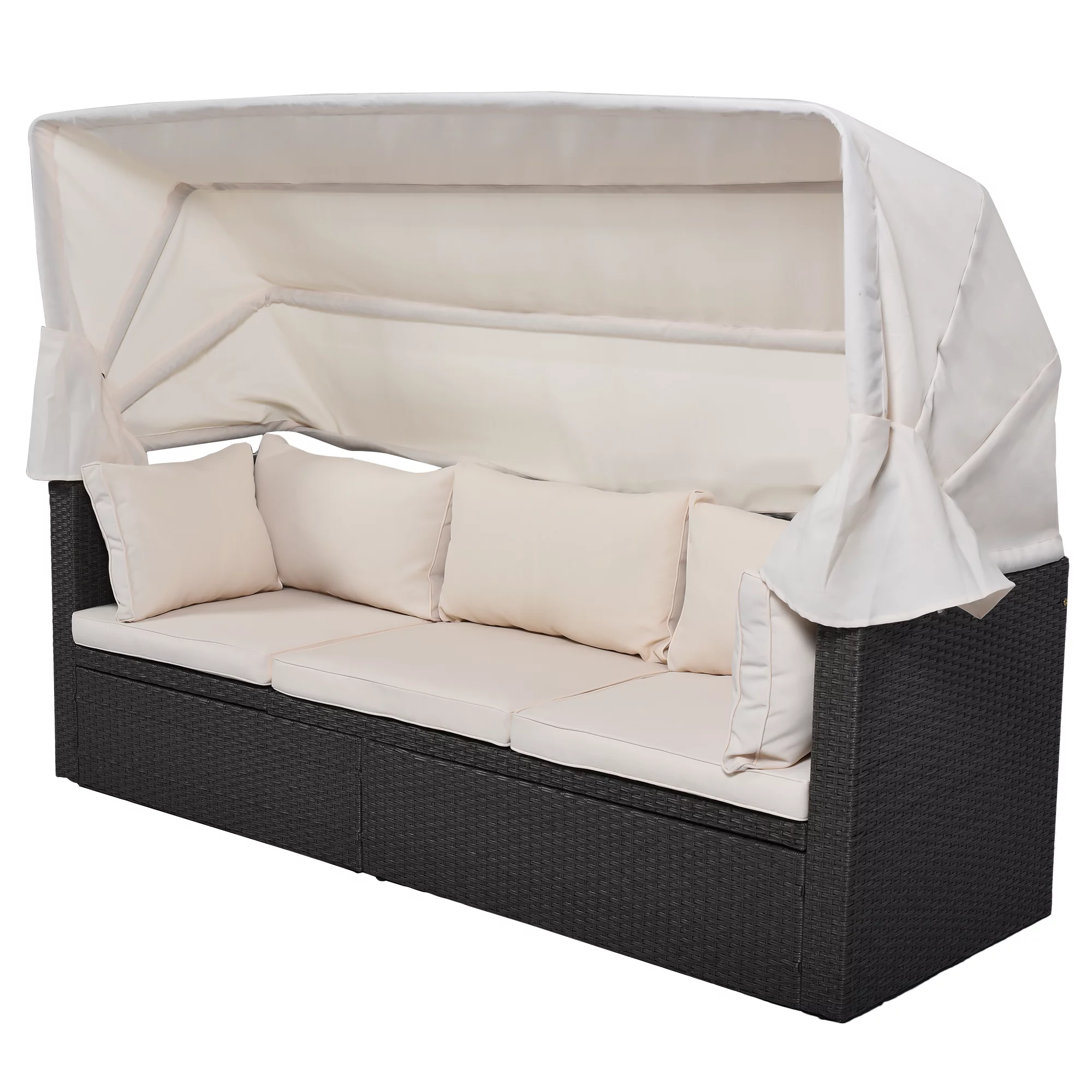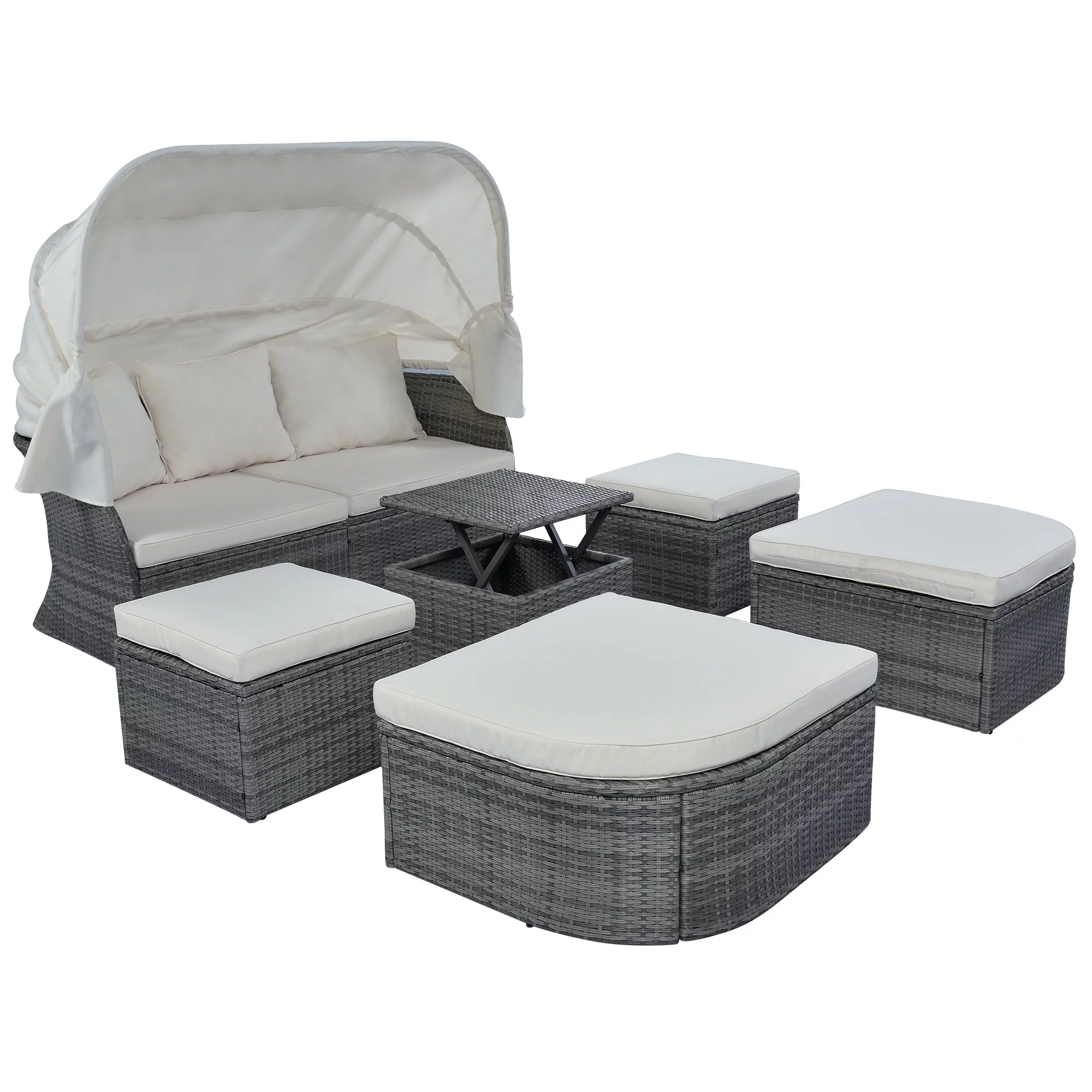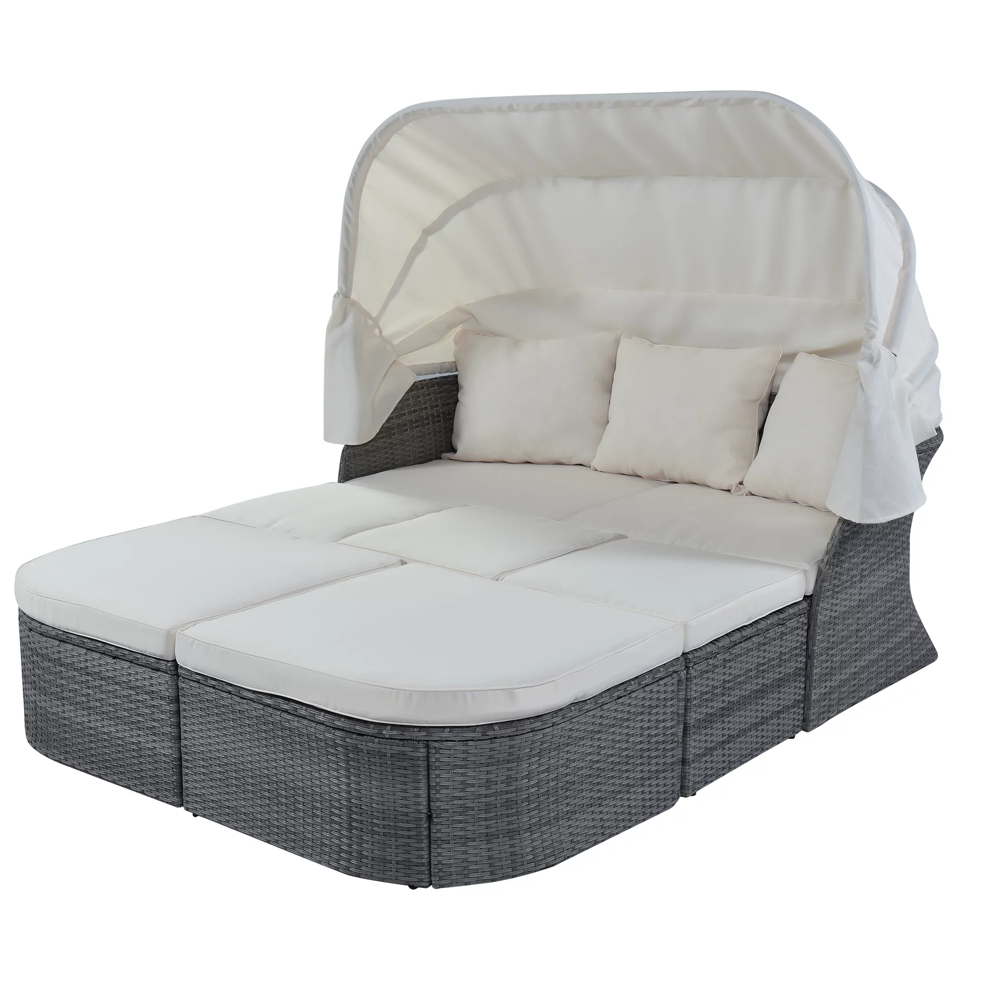 CoSoTower Outdoor Patio Furniture Set Daybed Sunbed with Retractable Canopy Conversation Set Wicker Furniture