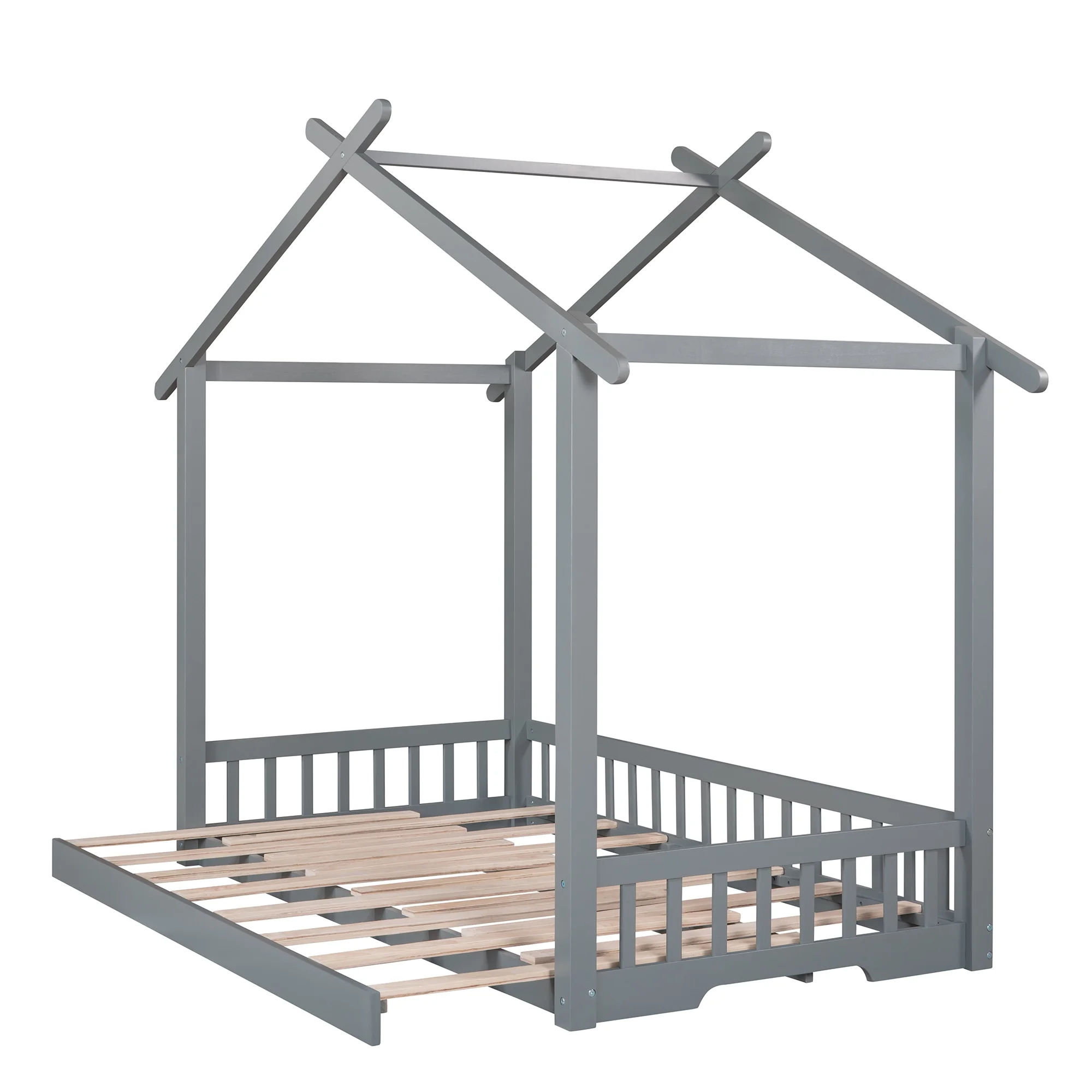 Docooler Extending Daybed with Trundle, Wooden Daybed with Trundle, Gray