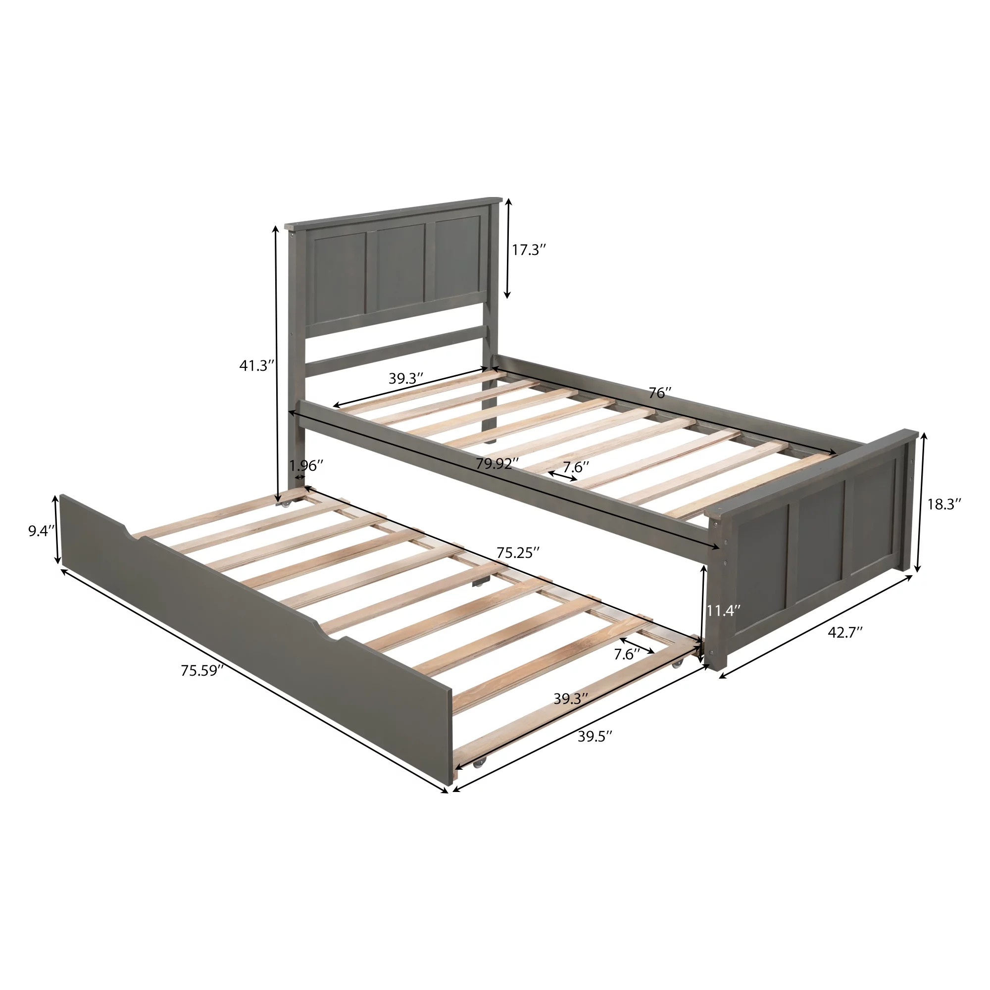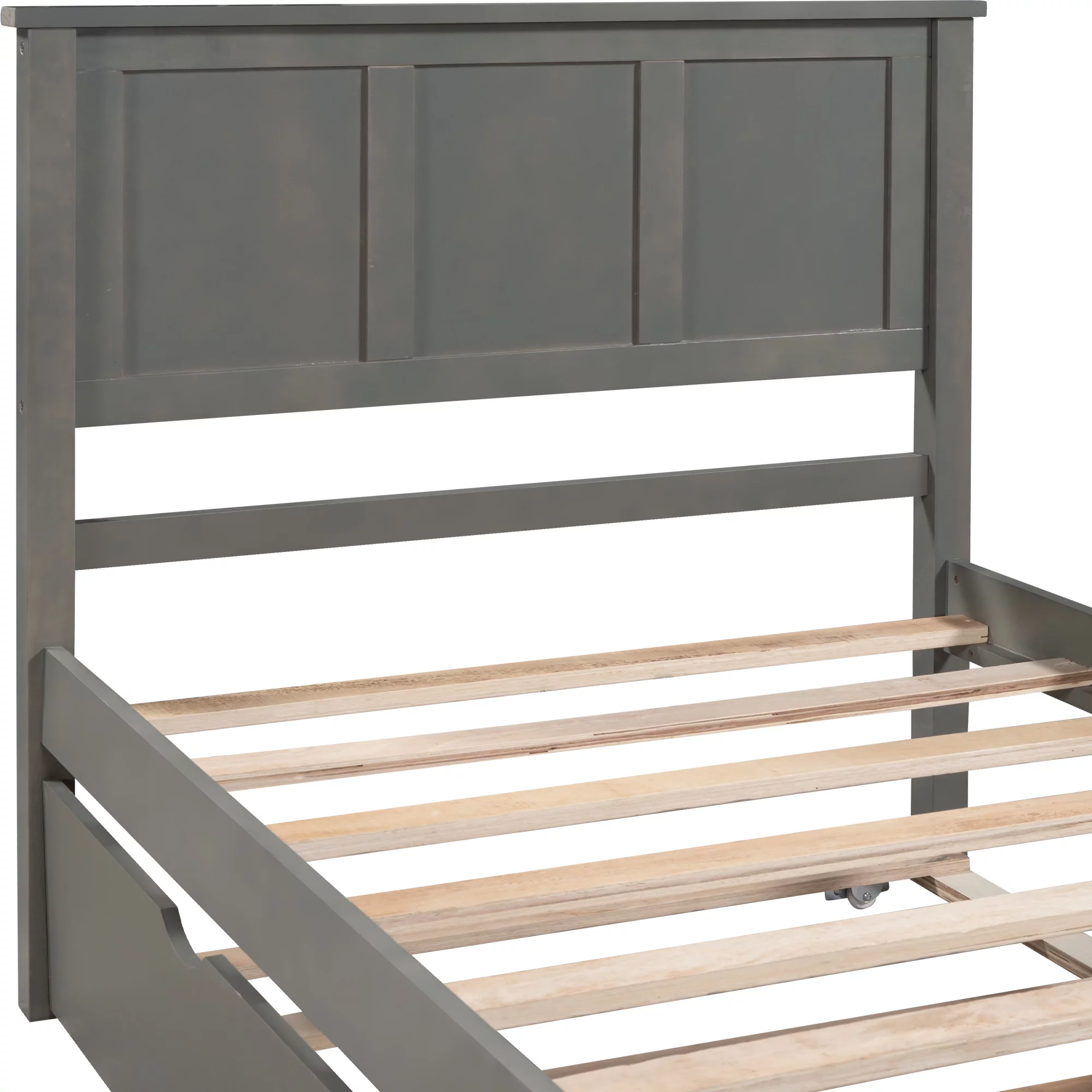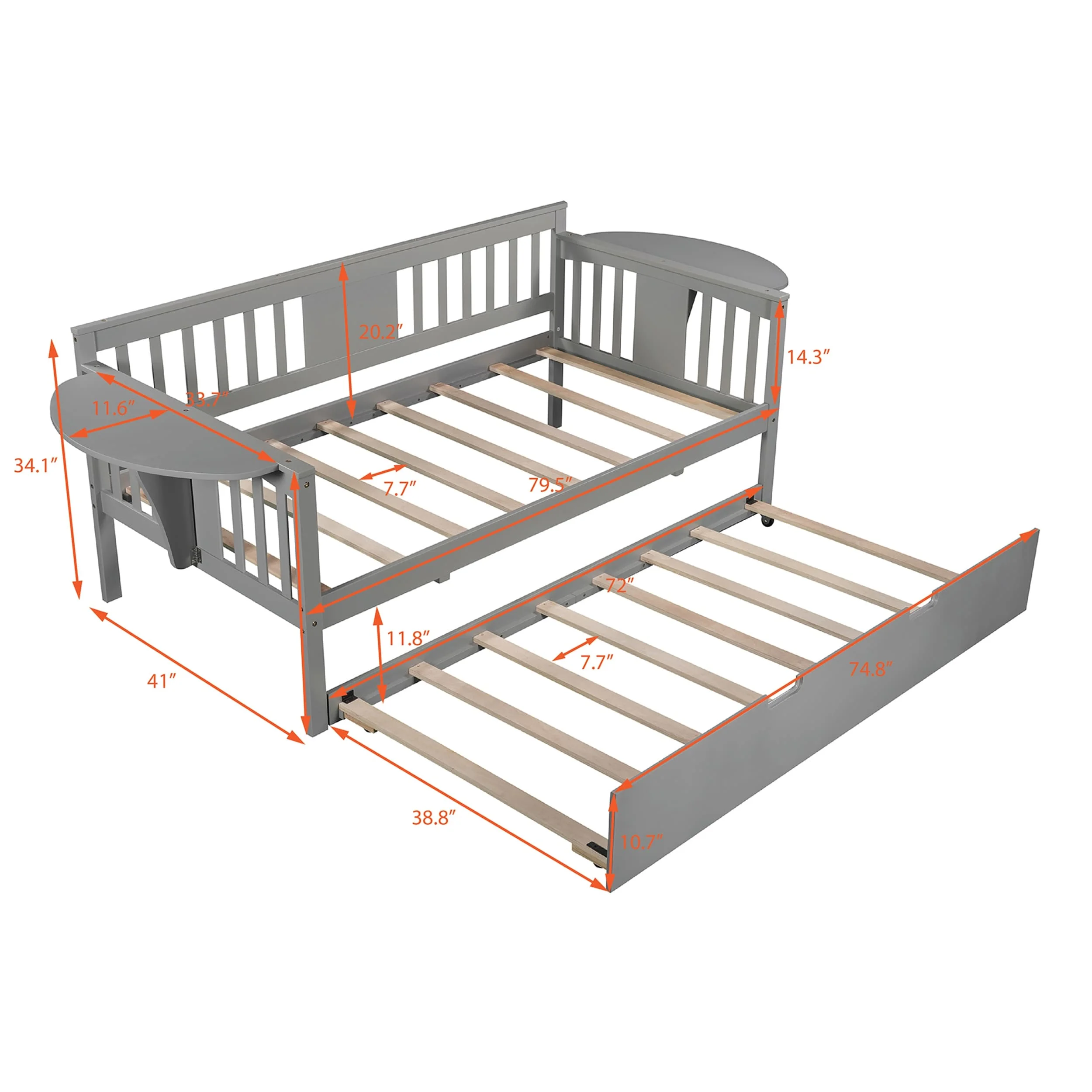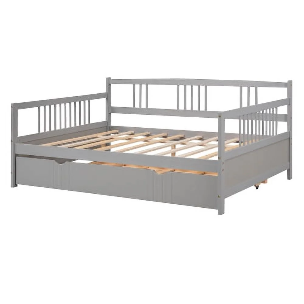Full Size Daybed Wood Bed with Twin Size Trundle,Gray 10 Upper bed 7 Bottom bed
