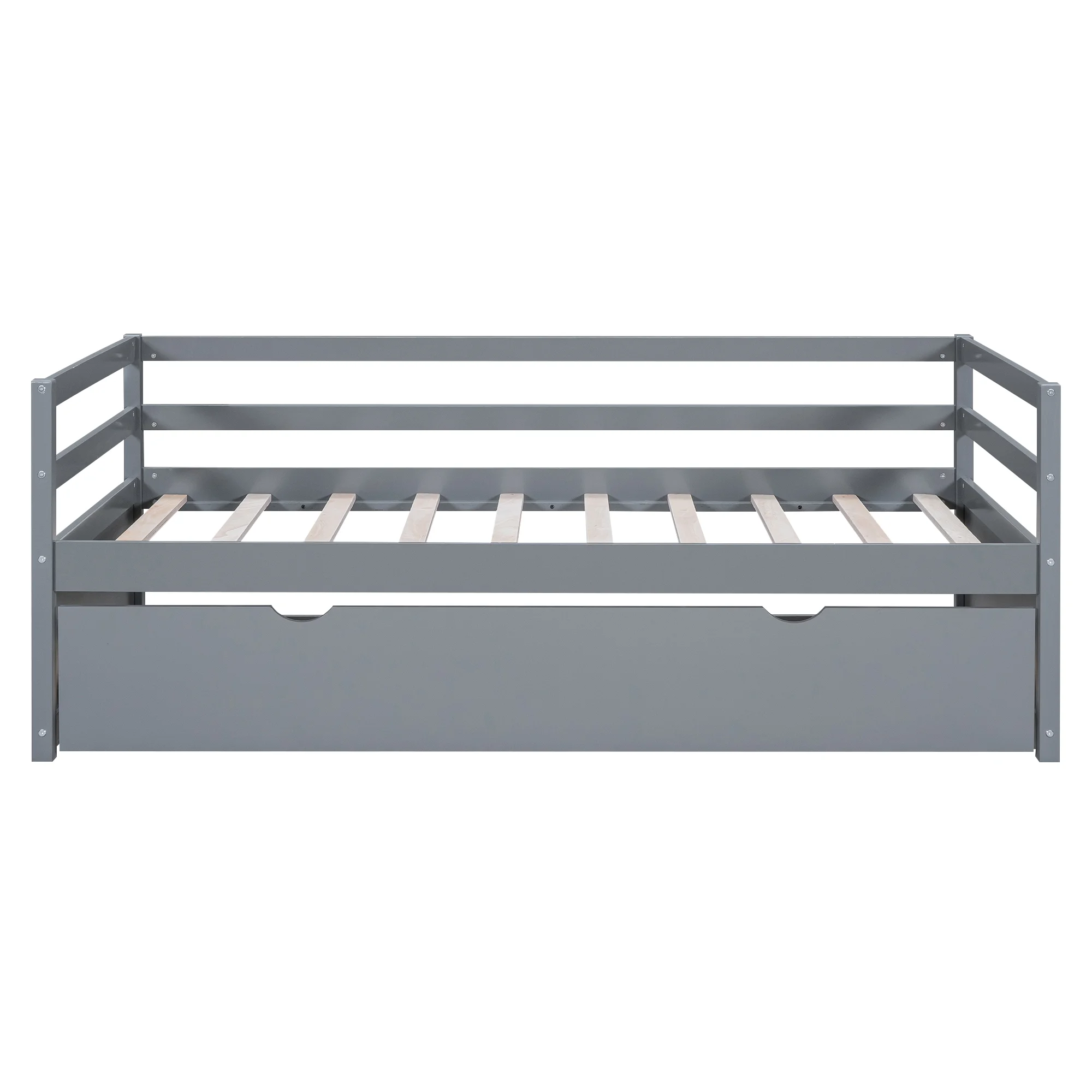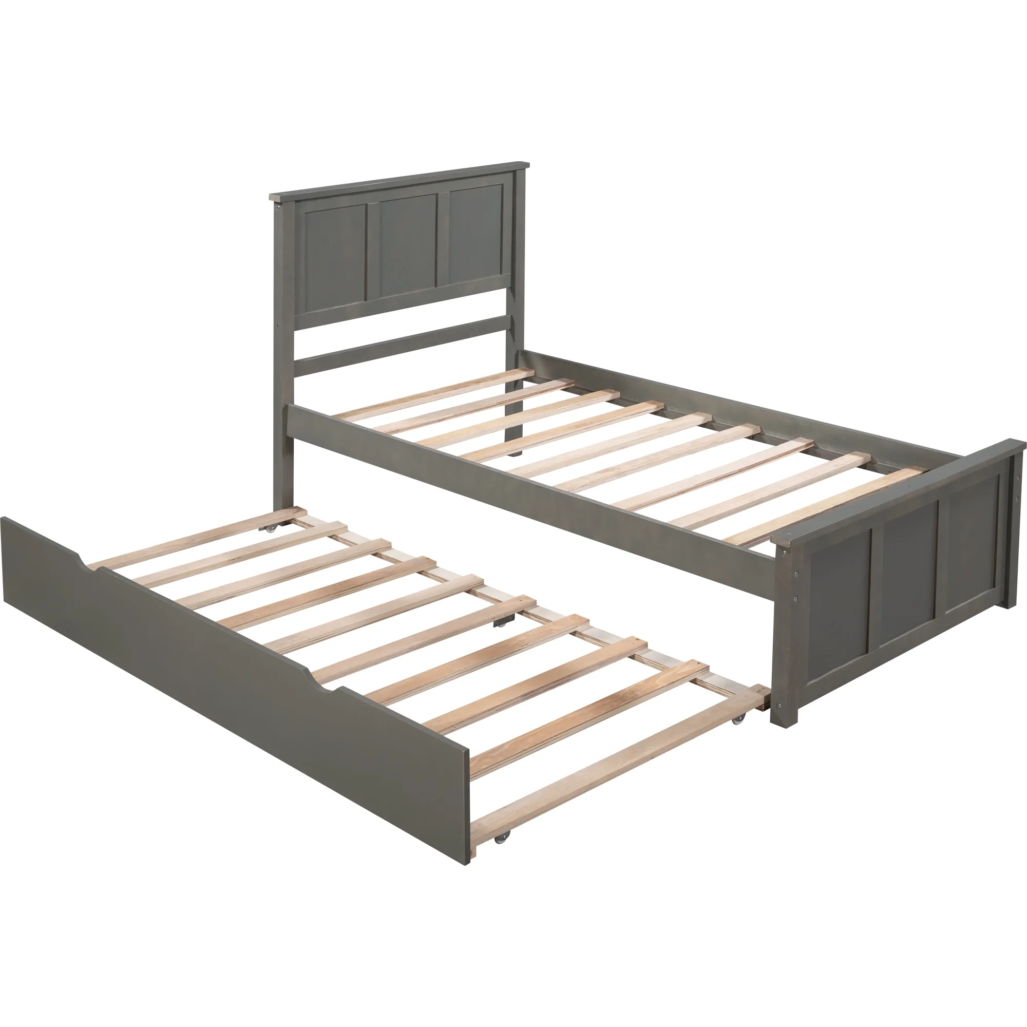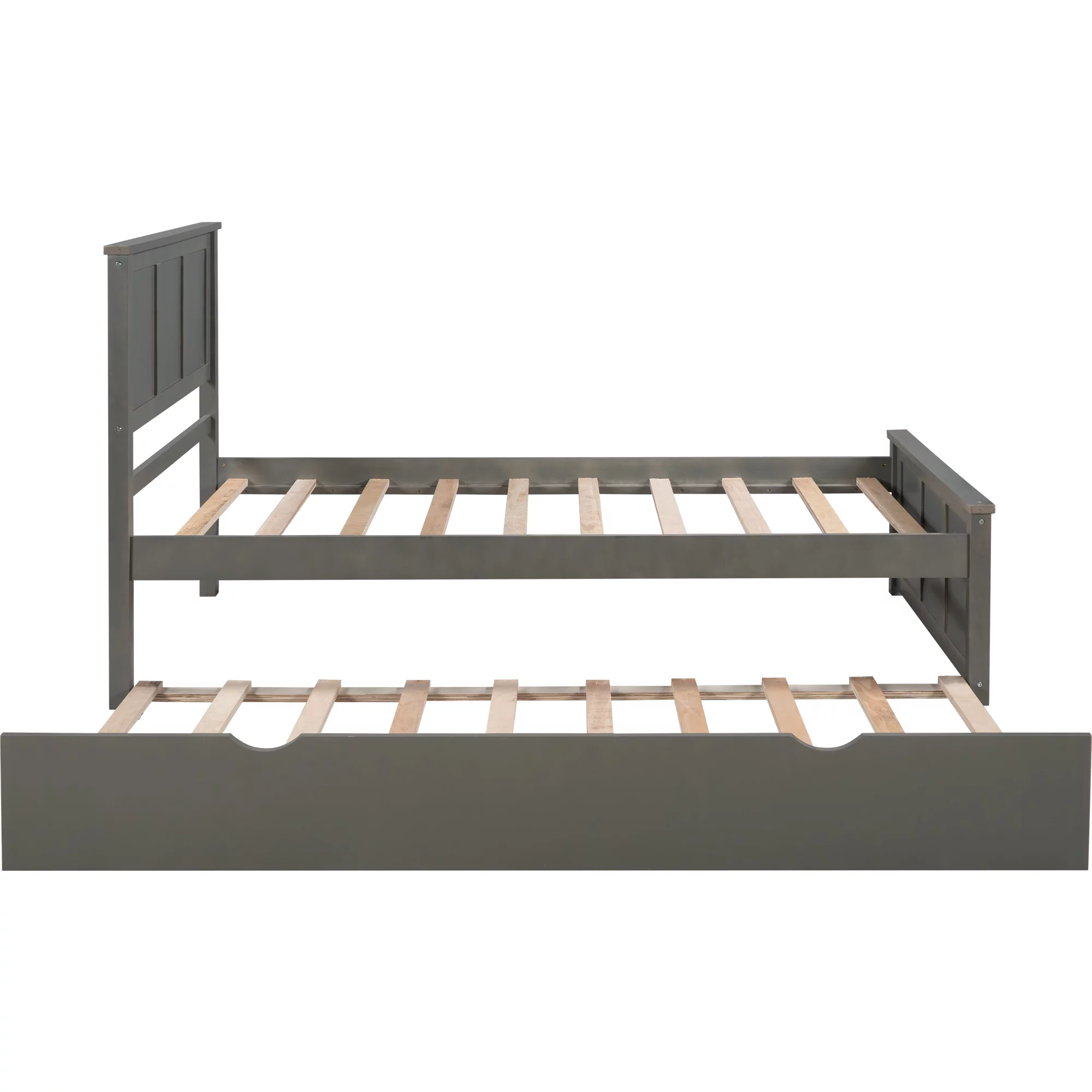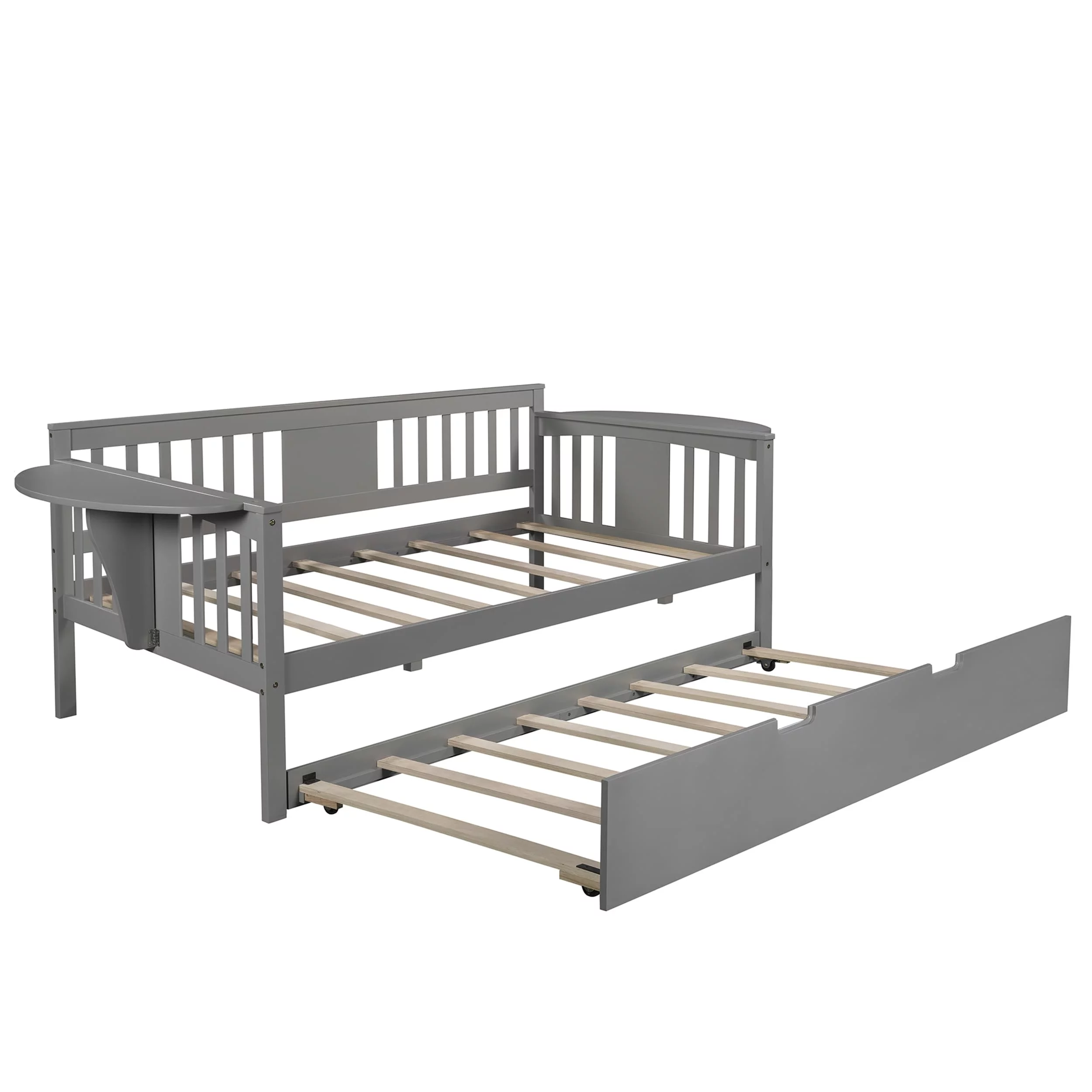Full Size Daybed Wood Bed with Twin Size Trundle,Gray 10 Upper bed 7 Bottom bed