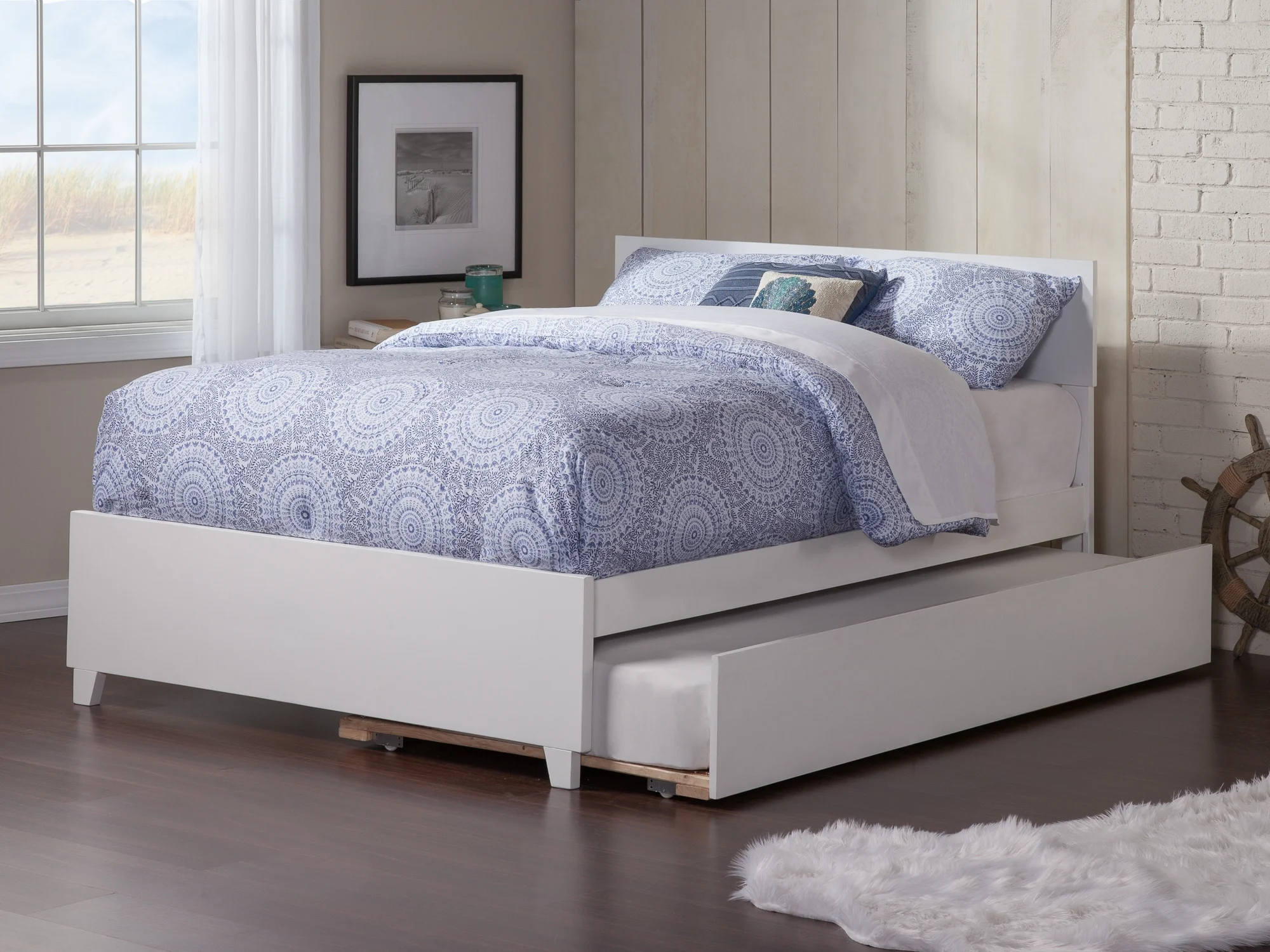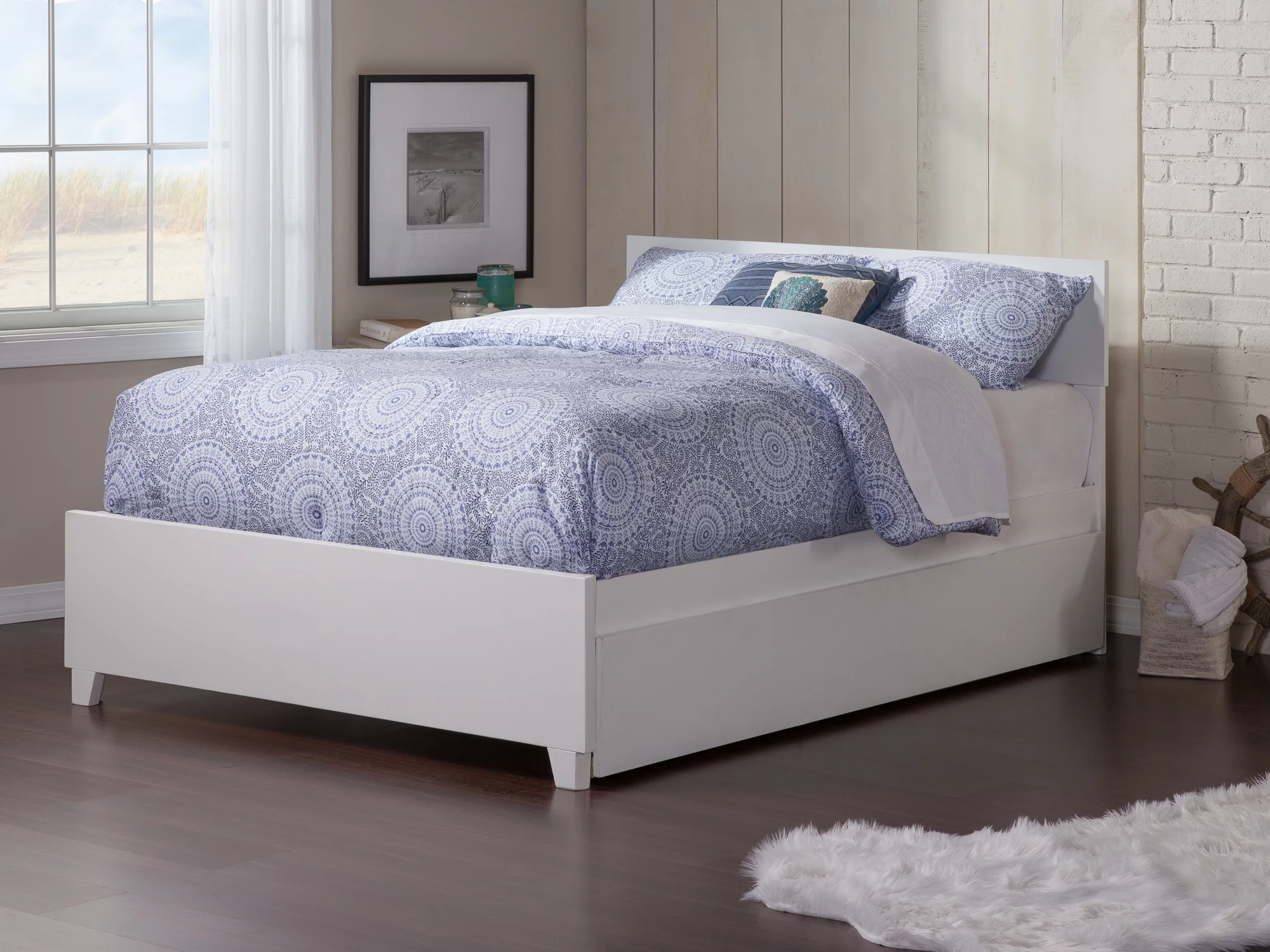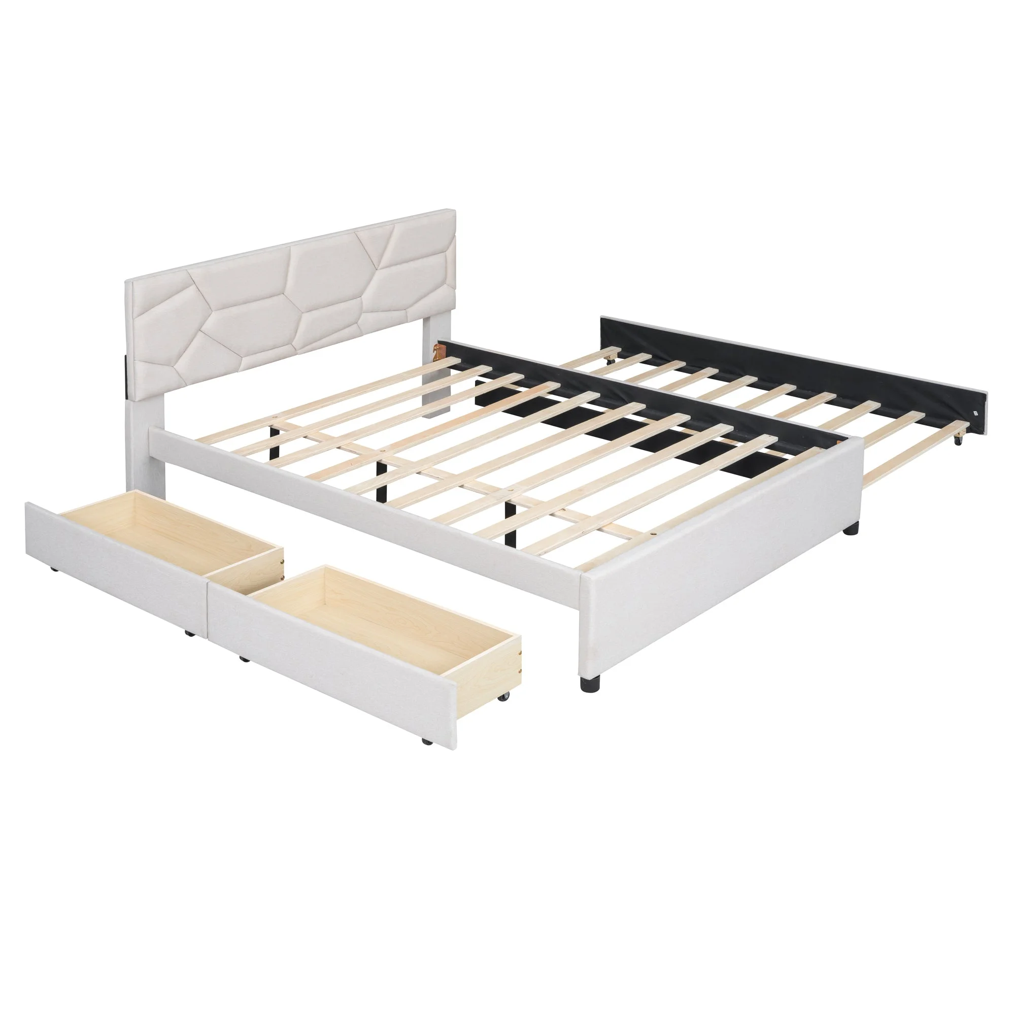 Brick Queen Size Platform Bed with 2 drawers and Twin Size Trundle - Beige