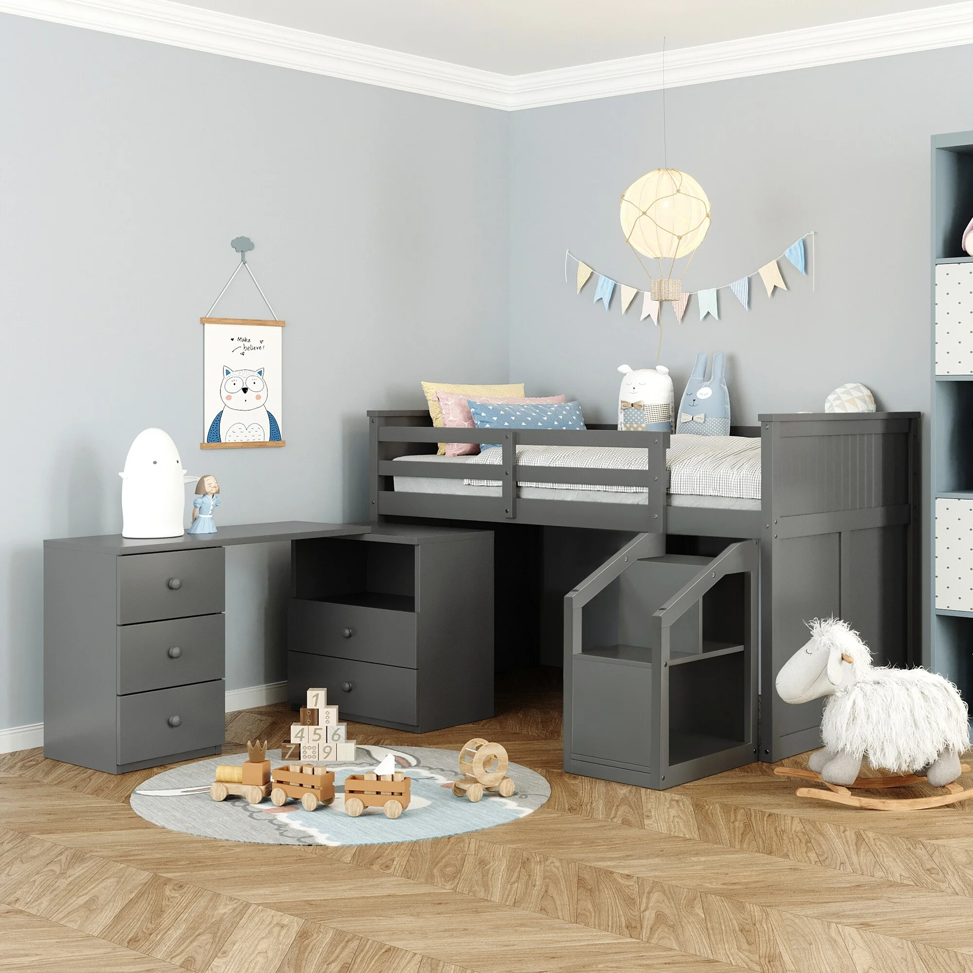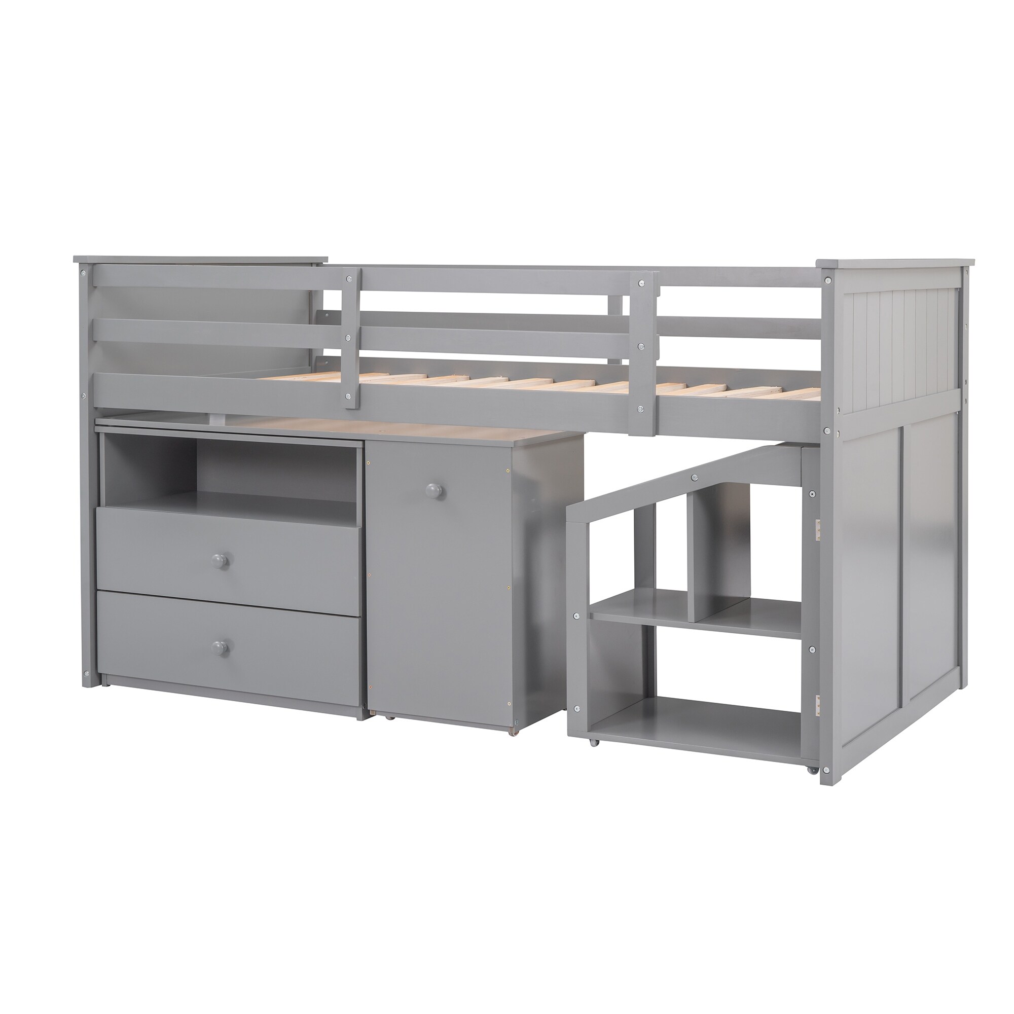 CoSoTower Twin Size Loft Bed With Storage Shelves And Under-Bed Desk, Gray