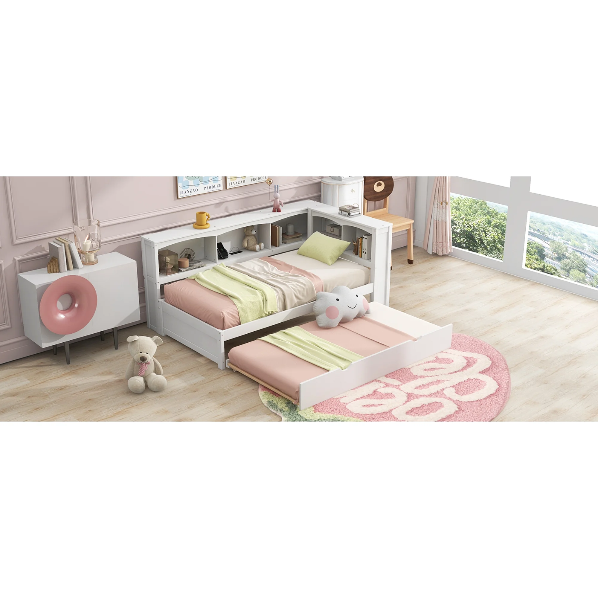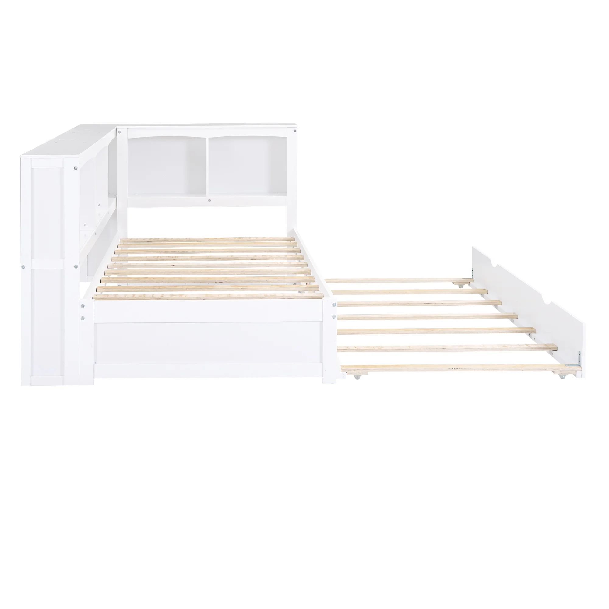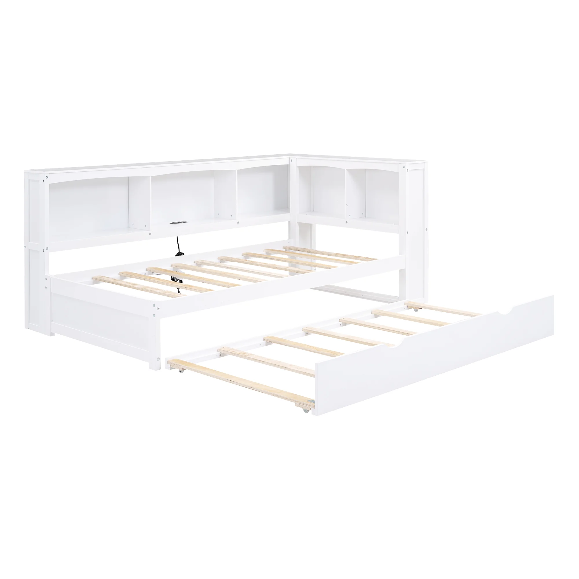 Dawn Whisper Twin Size Daybed with Trundle, Storage Cabinets and USB Ports, White