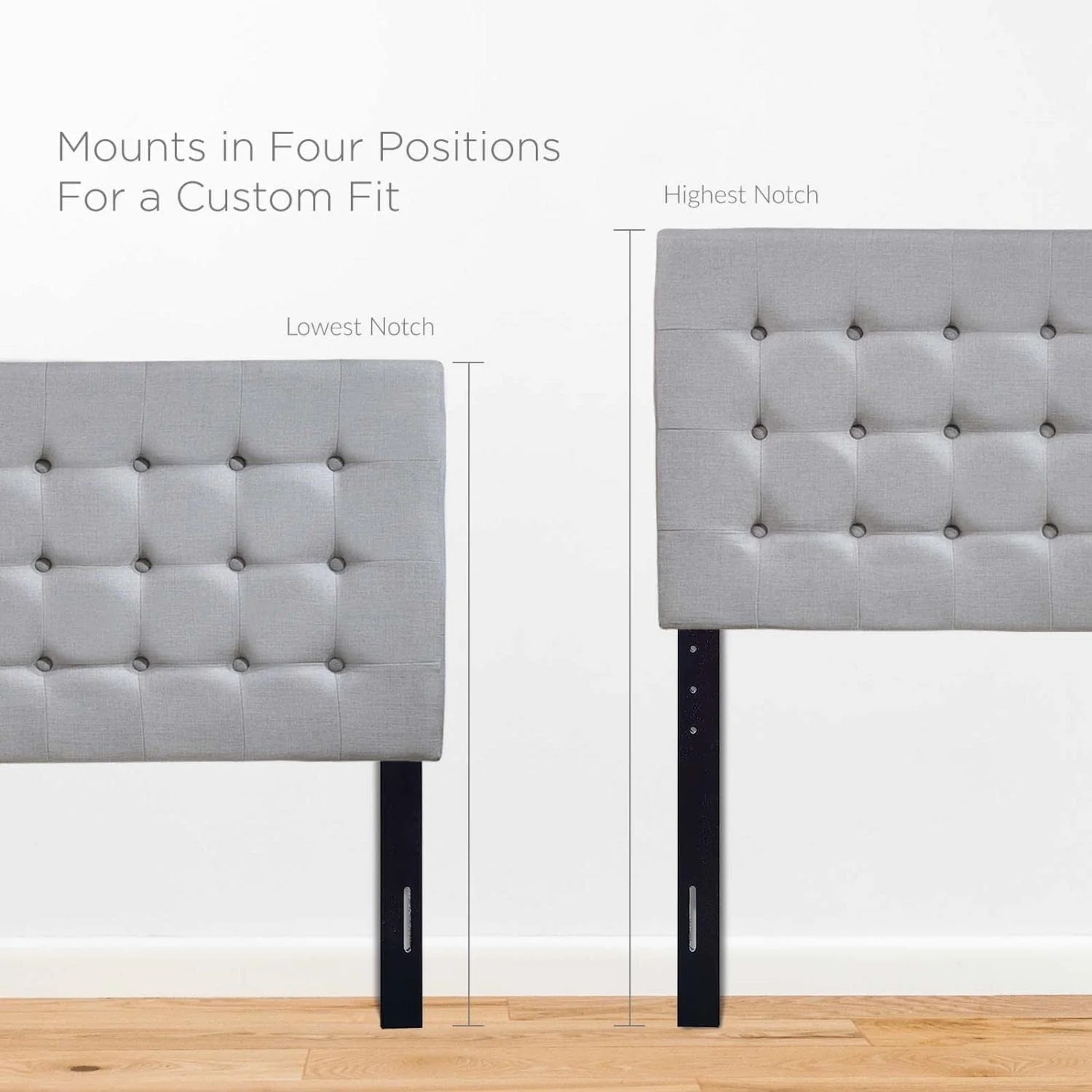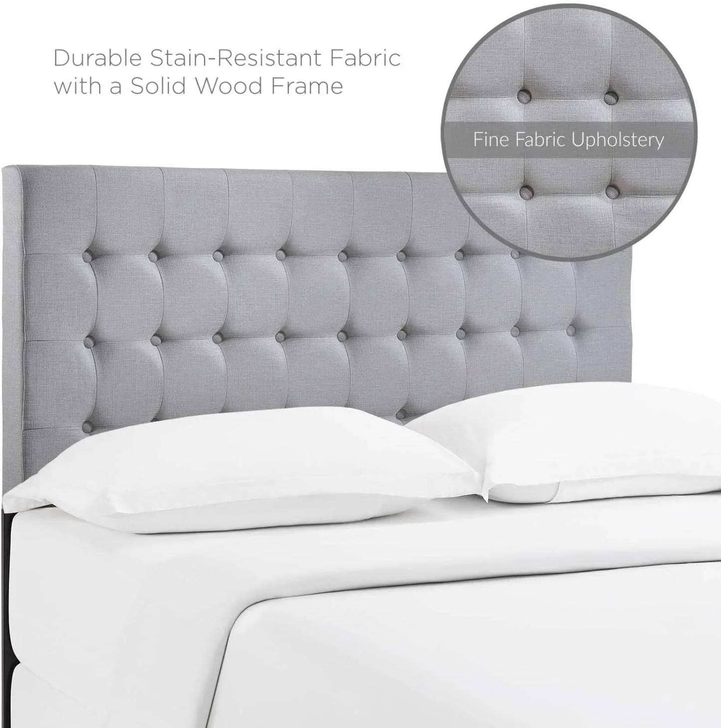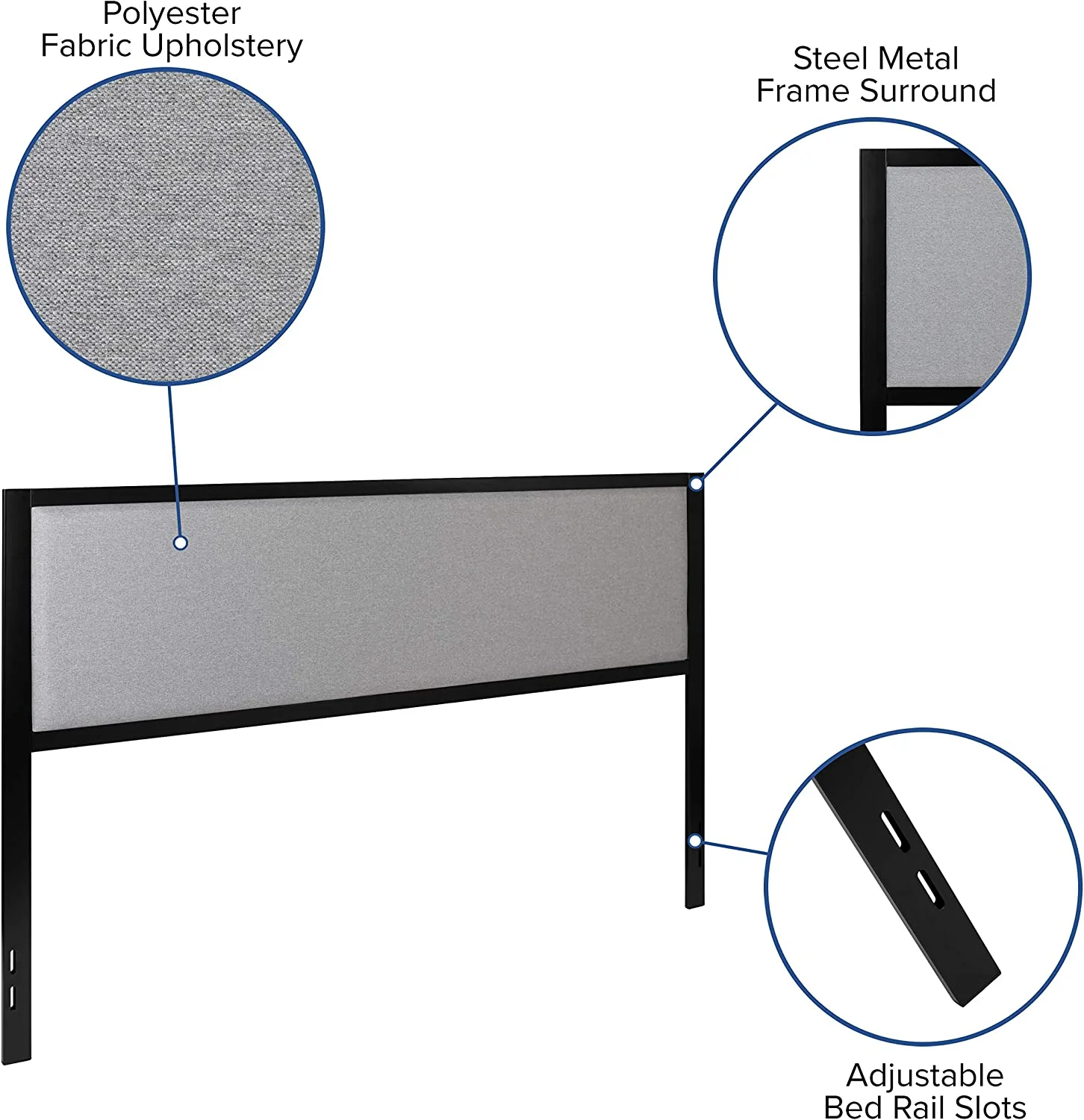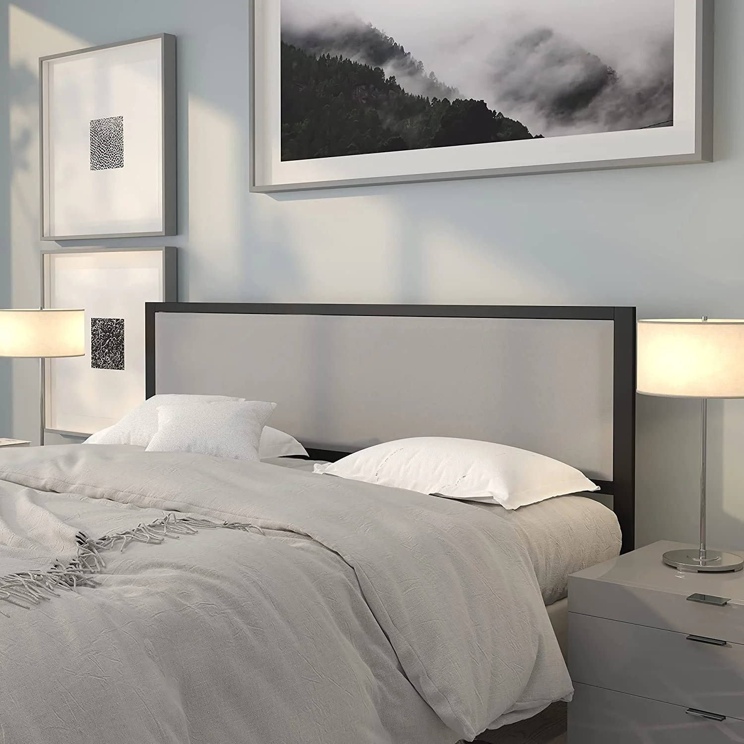 King Size Metal Headboard - Lt Gray Fabric Upholstery Fits Standard Bed Frames