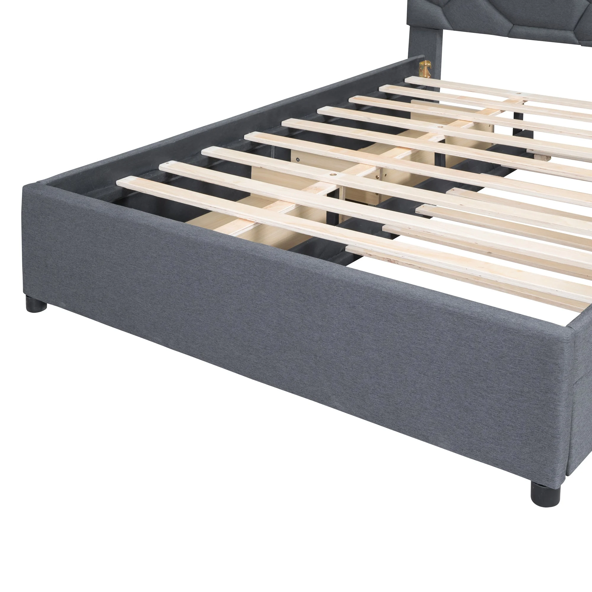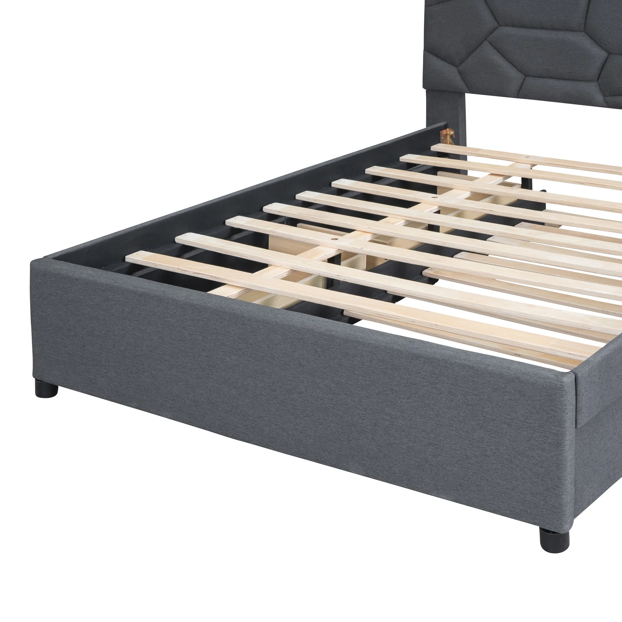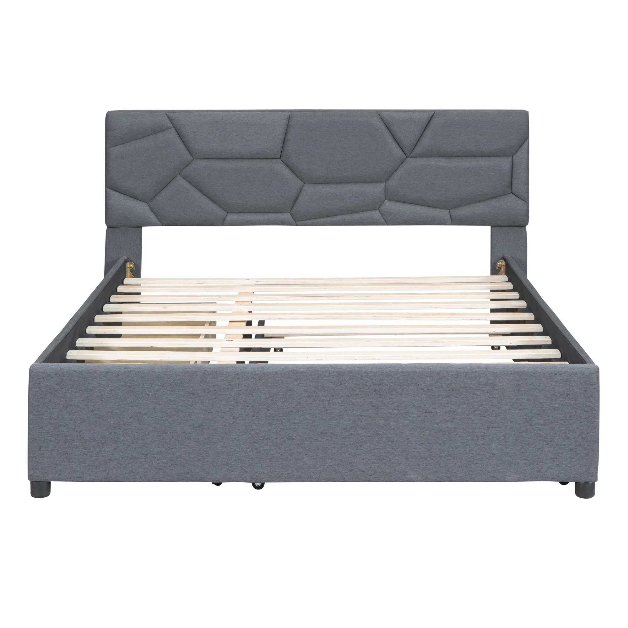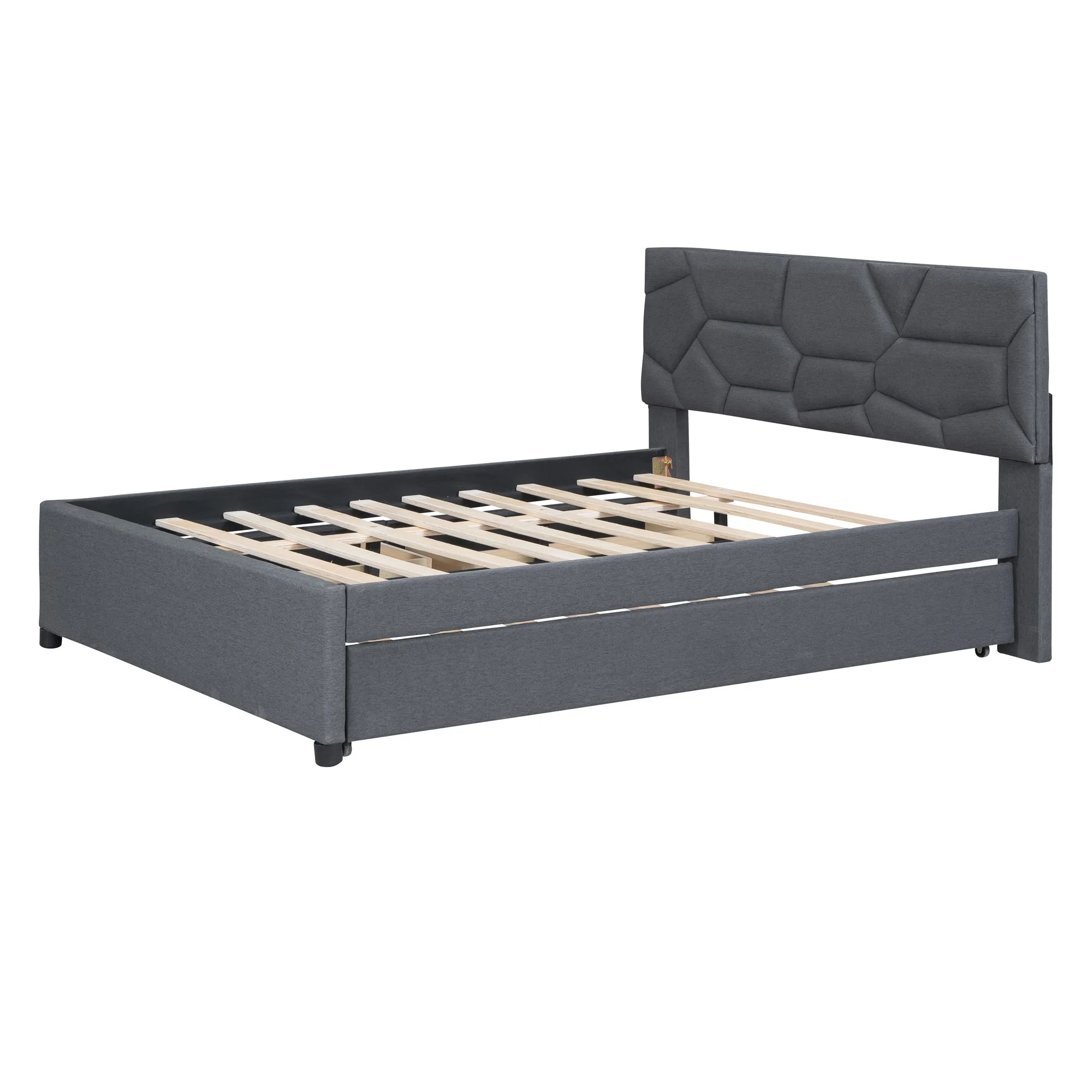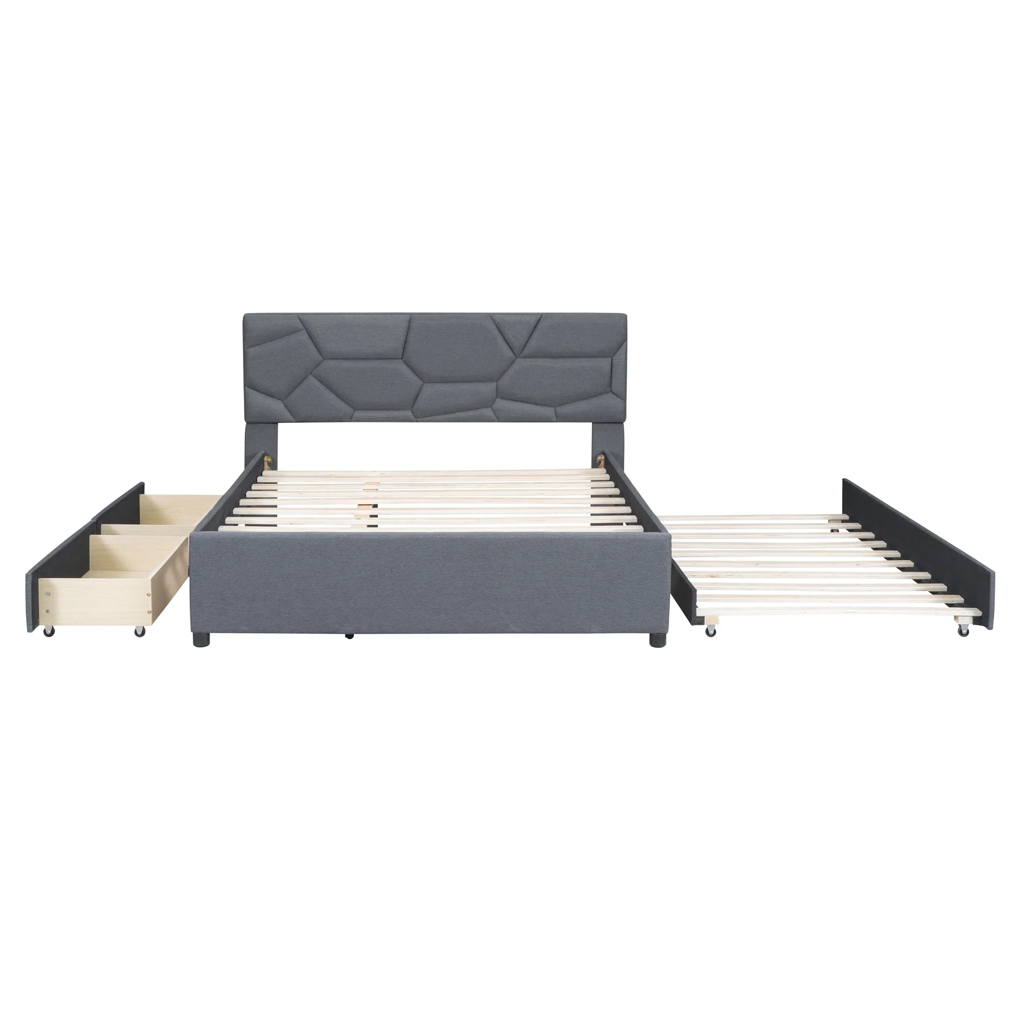 Brick Queen Size Platform Bed with 2 drawers and Twin Size Trundle - Gray