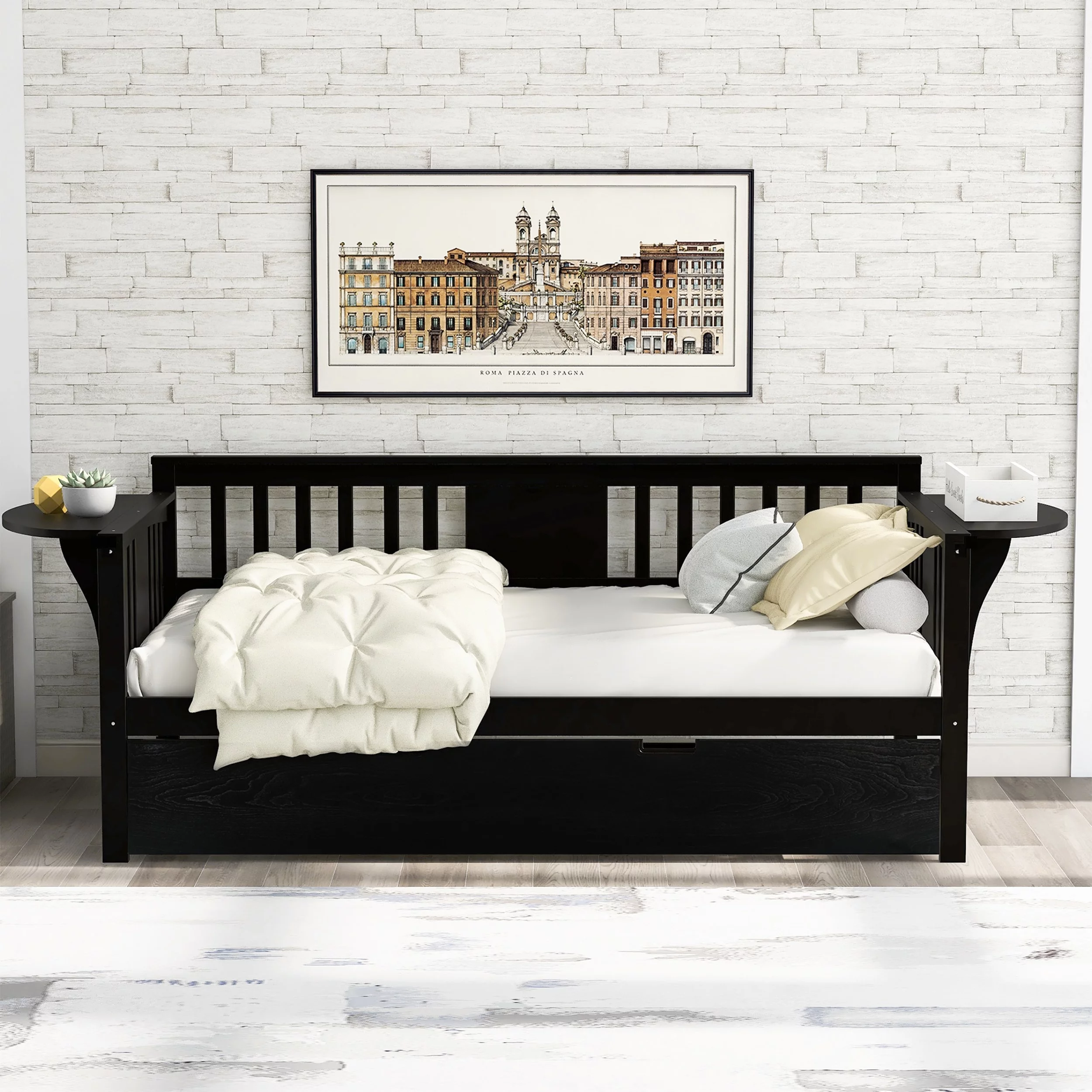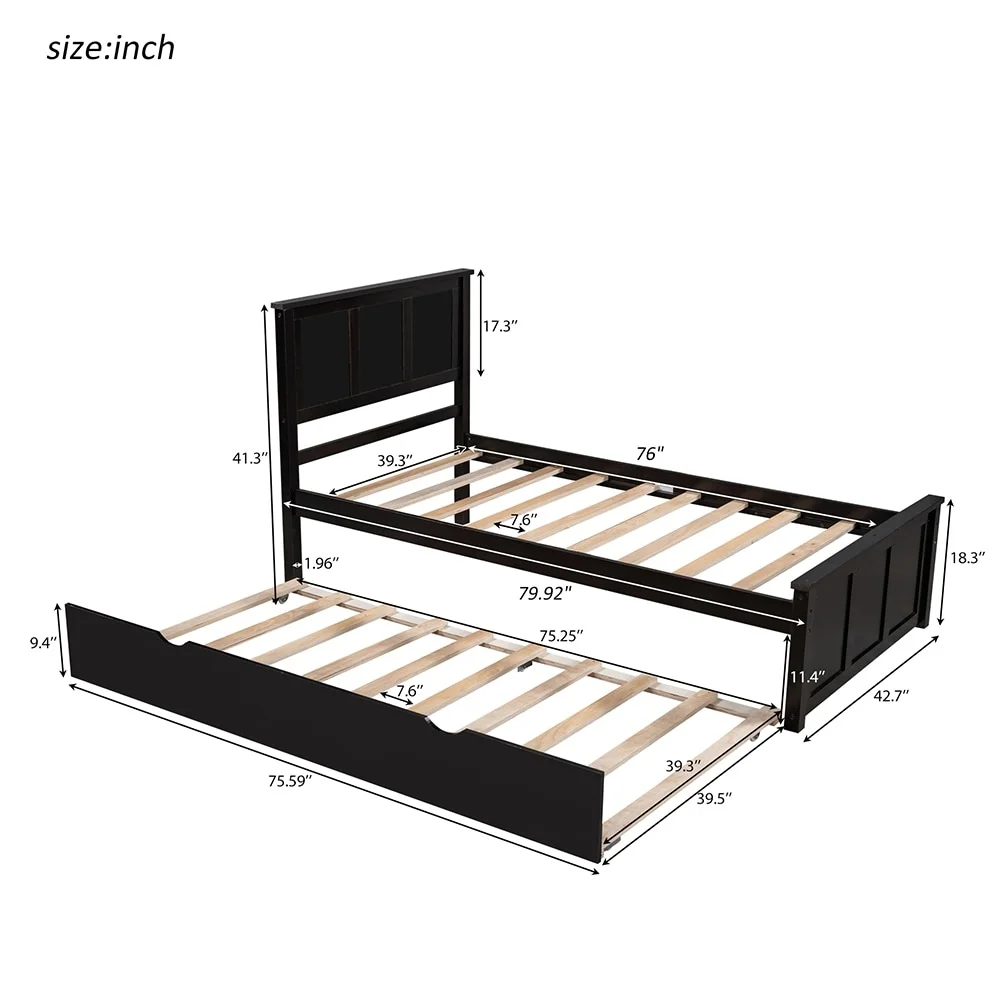 Daybed Size, Daybed With Trundle, Extending Wooden Daybed, Sofa Bed For Bedroom/Living Room, Espresso