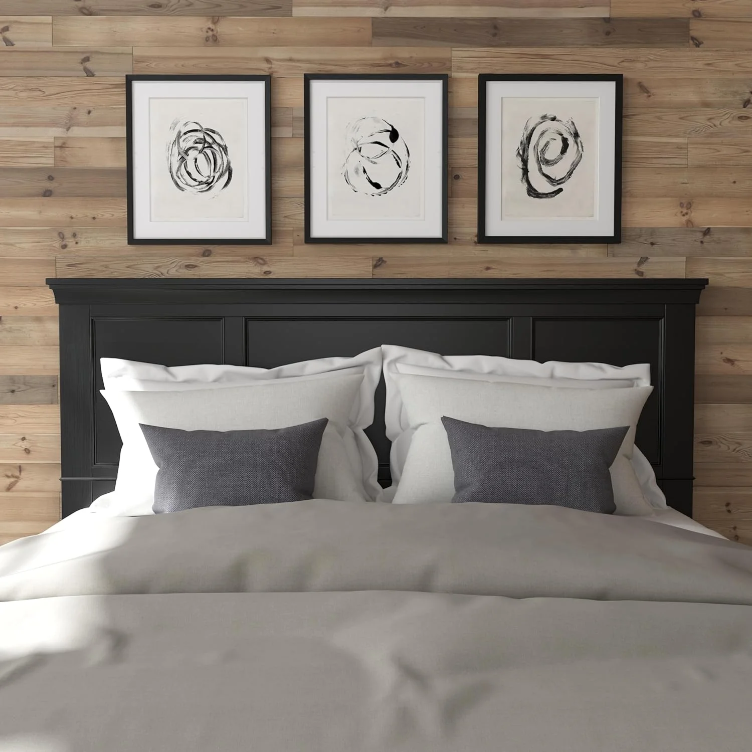 Yatas Bedding Somni Contemporary Wood & Fabric Queen Size Headboard in Gray
