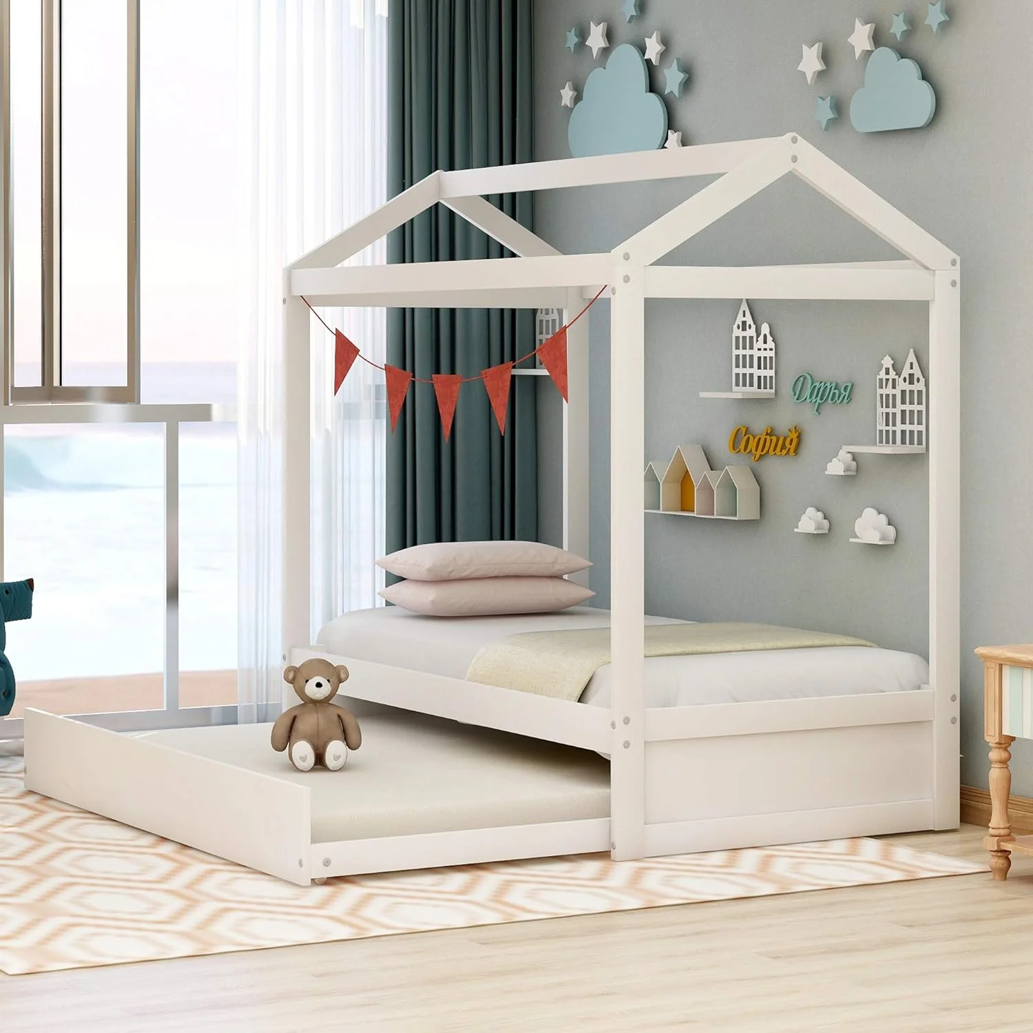 Abanopi Twin Wooden Daybed with Trundle Bed, Sofa Bed for Bedroom Living Room,White