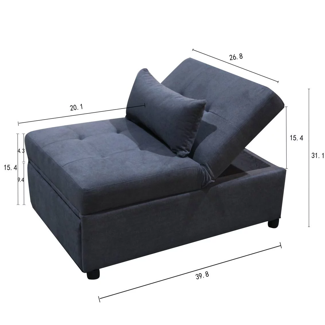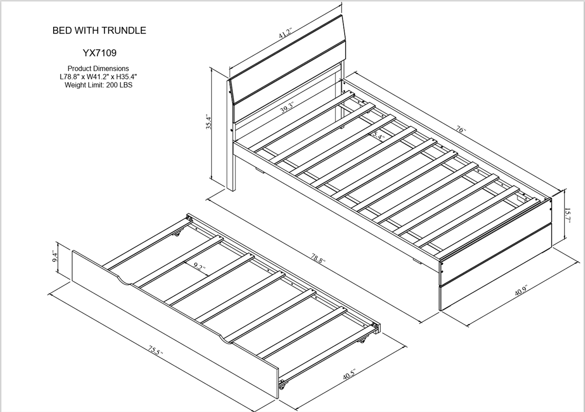 43 x 82 x 37 in. Fabric Upholstered Wood Leg Daybed & Trundle Twin Size Bed