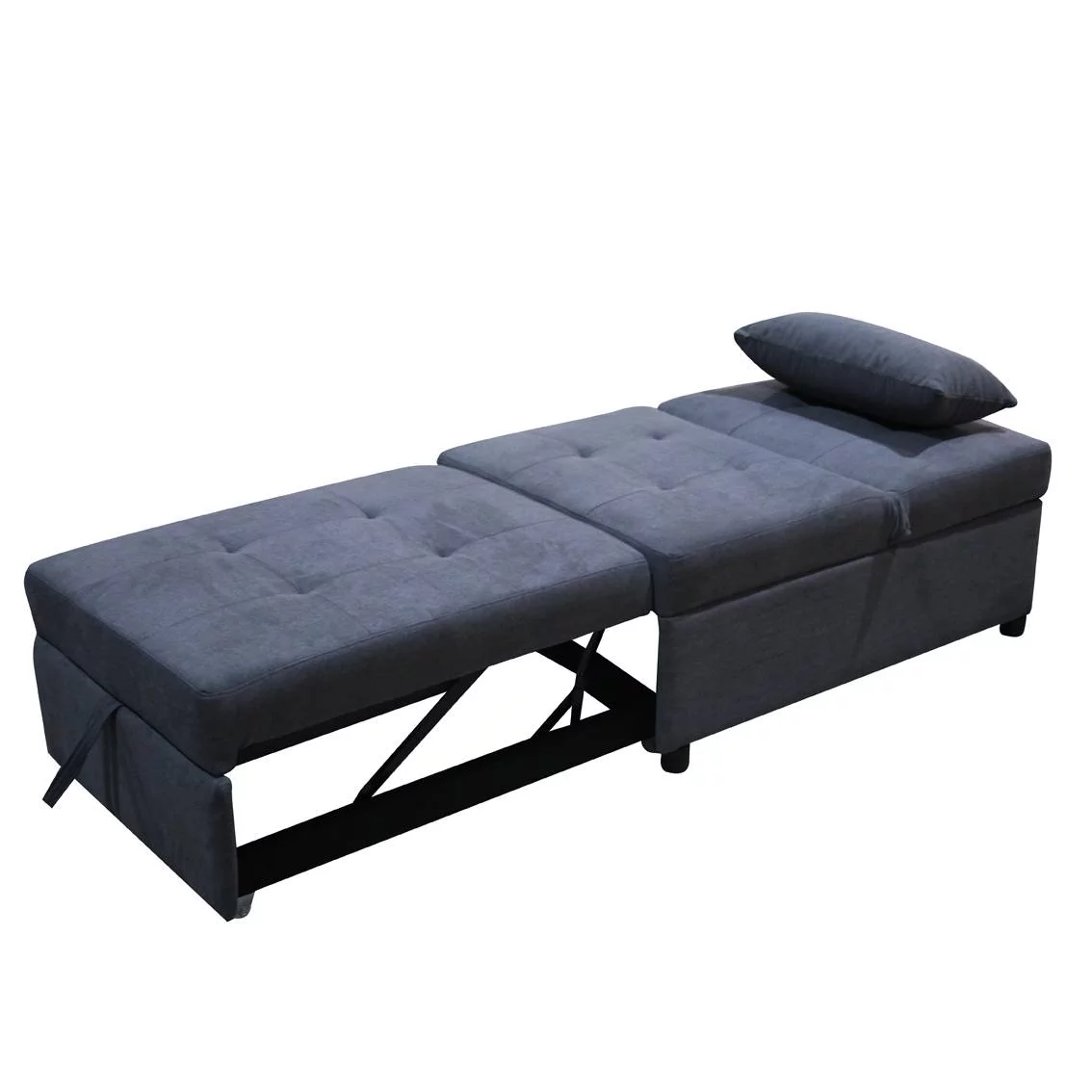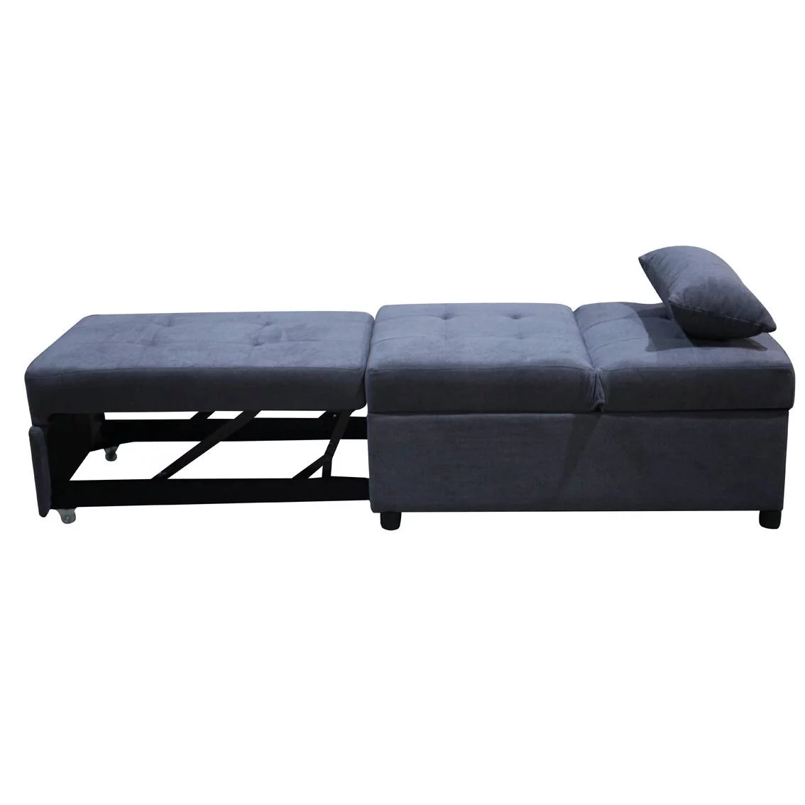 Lian Bed Fabric Upholstered with Pillow Headboard, Charcoal Gray - Queen Size