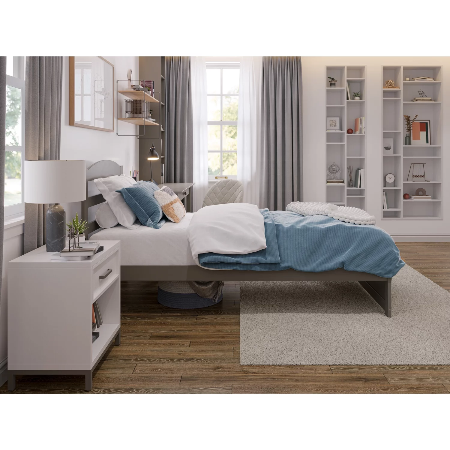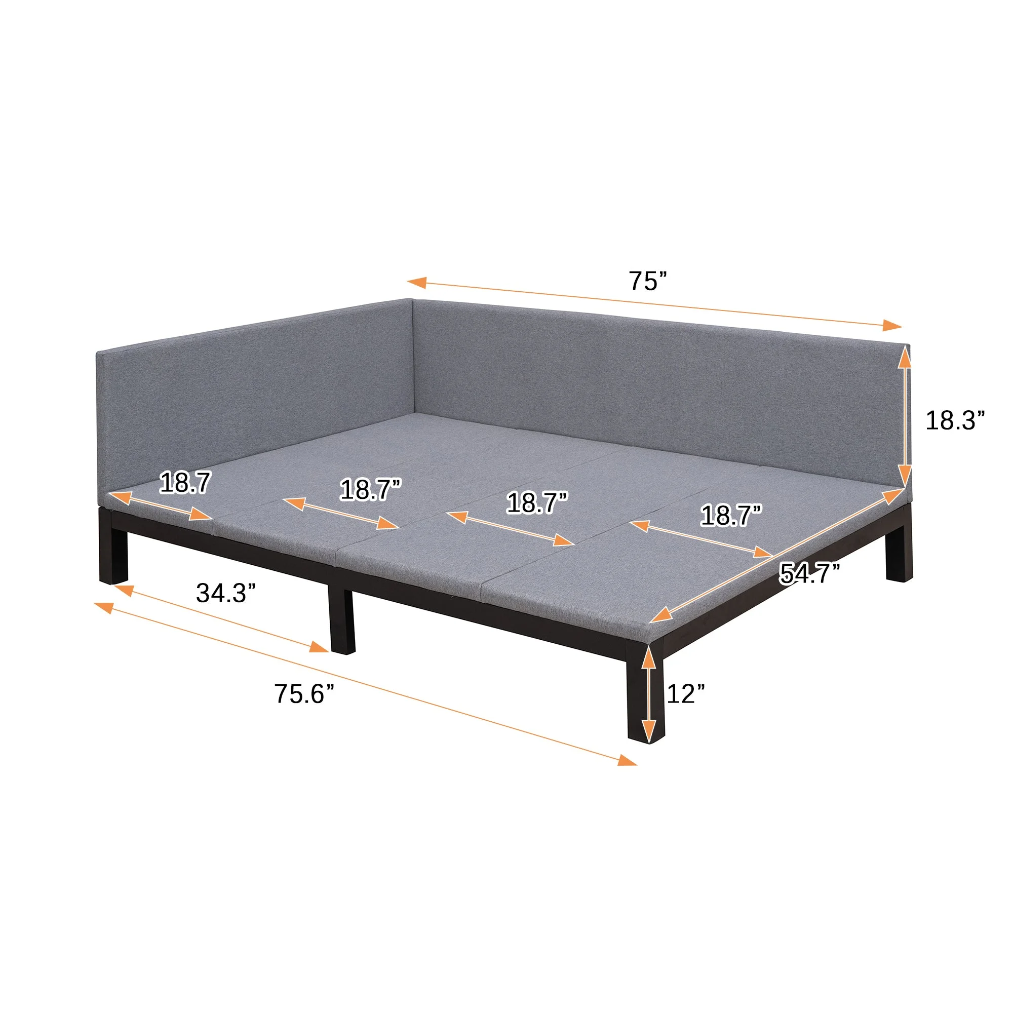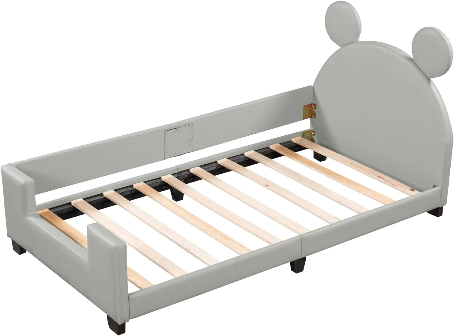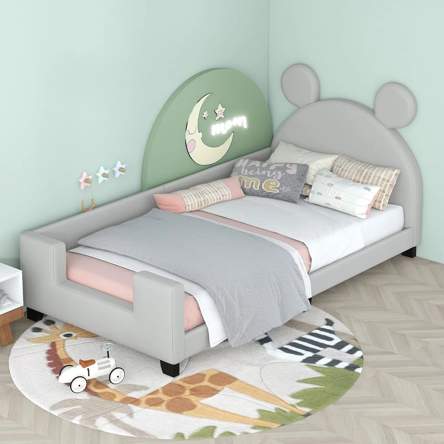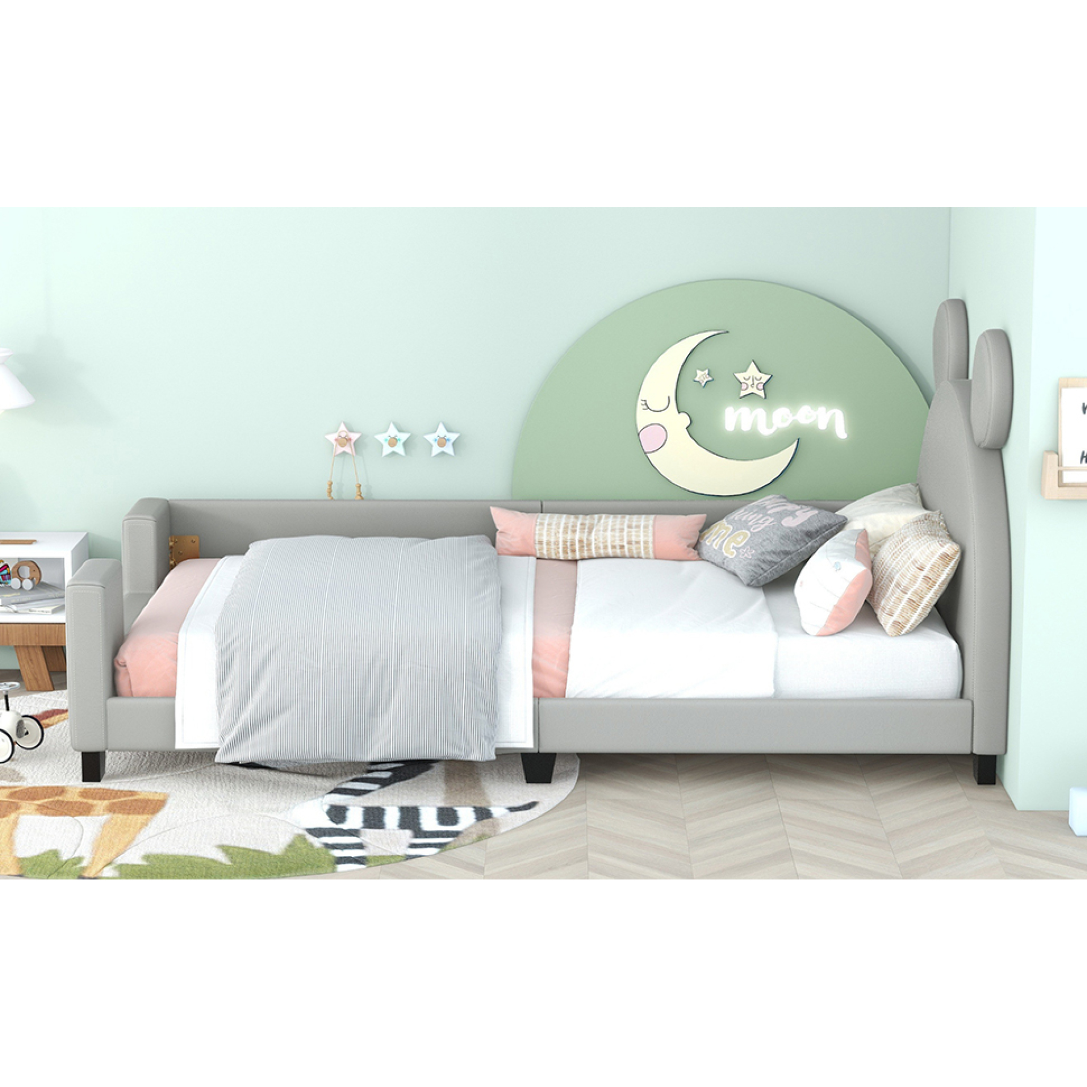 Daybed Cute Upholstered Platform Bed With Bear Ears Shaped Headboard, Bed Frame For Kids (Gray, )