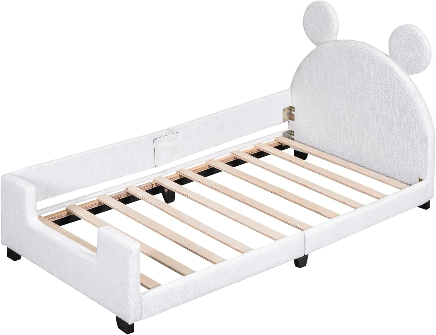 Teddy Fleece Size Upholstered Daybed With Carto Ears Shaped Headboard Bed Frame For Boys Girls Kids Adults Toddler, White