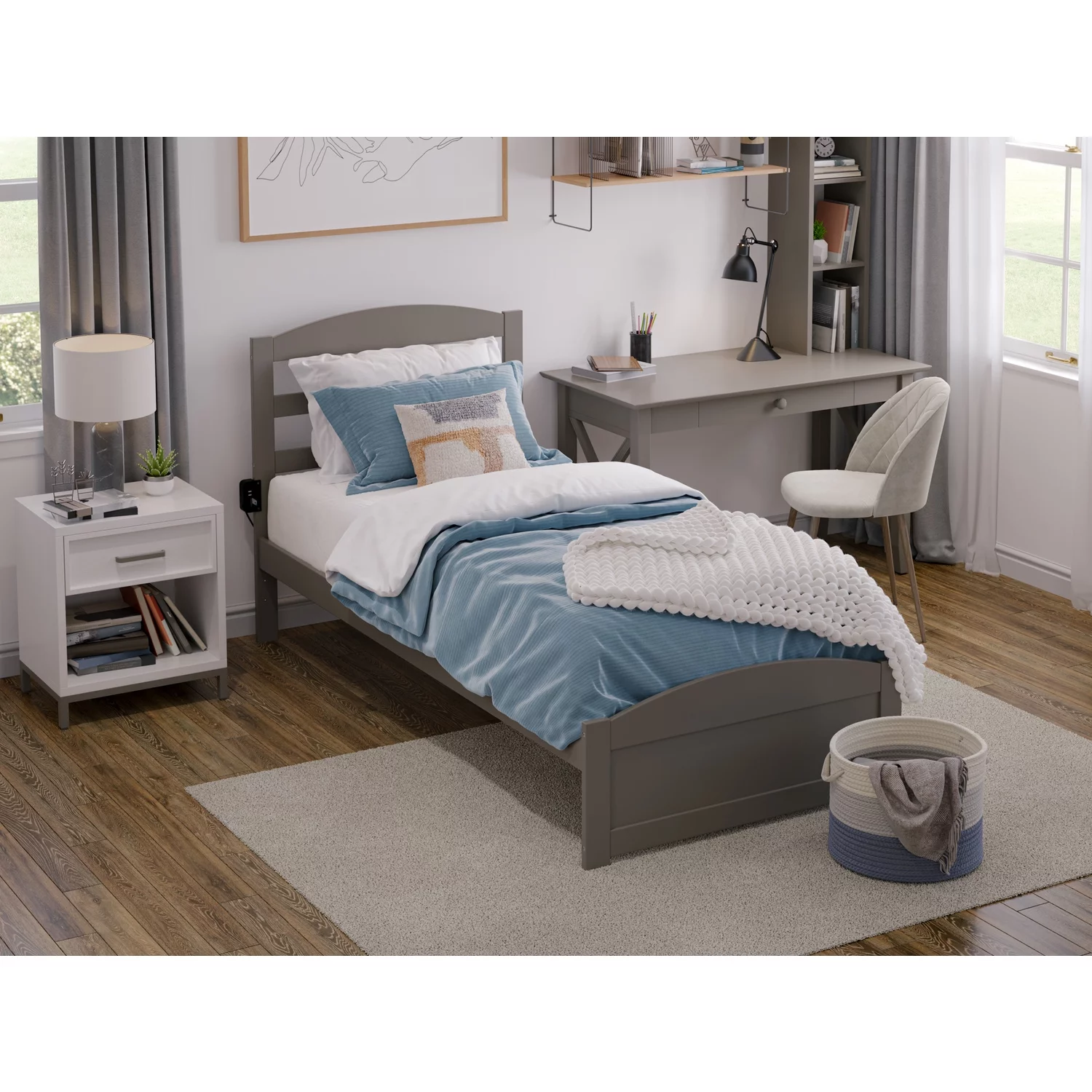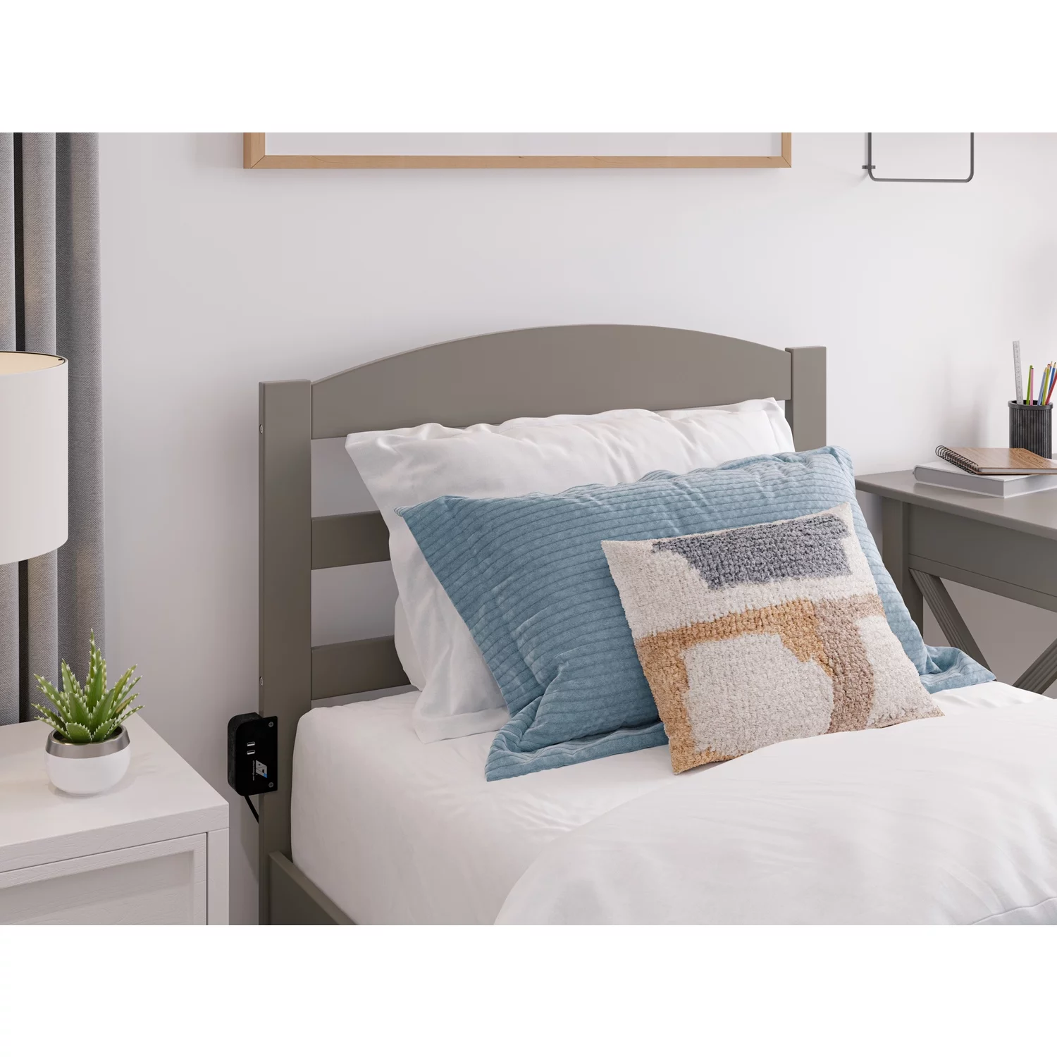 AFI Warren Solid Wood Twin Bed with Footboard and USB Charger in Walnut