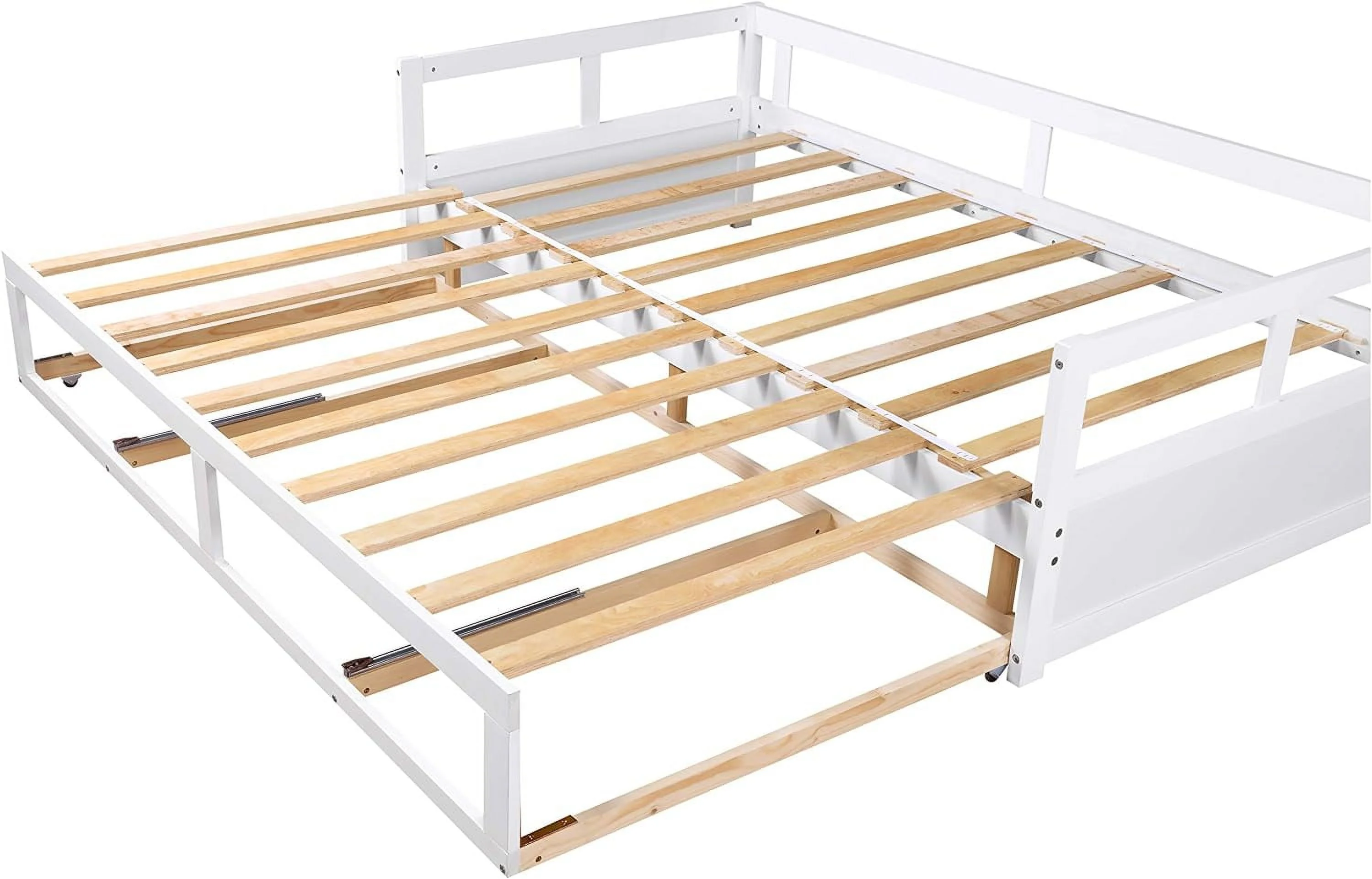 Daybed With Trundle Bed, Daybed Size, Wood Sofa Bed For Bedroom Living Room, No Box Spring Needed,White