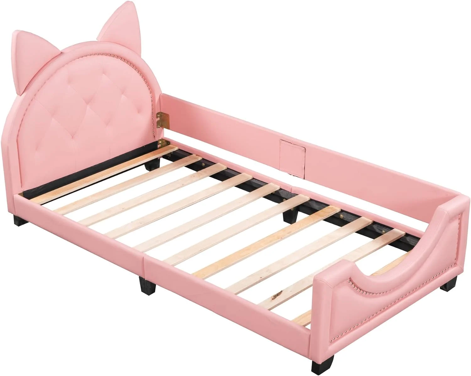 Upholstered Daybed With Carton Ears Headboard, Rabbit-Shaped Cute Platform Bed Frame With Button For Boys Girls (, )