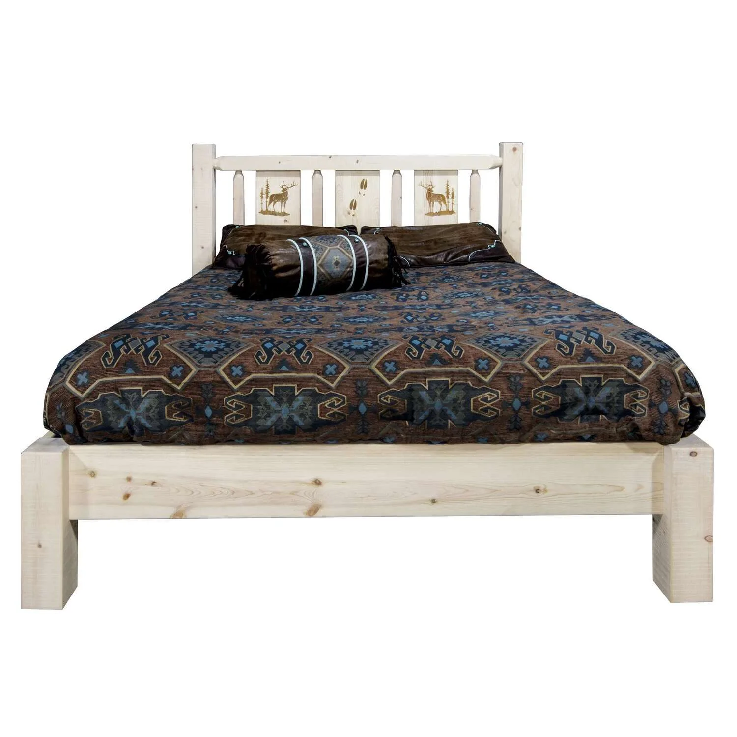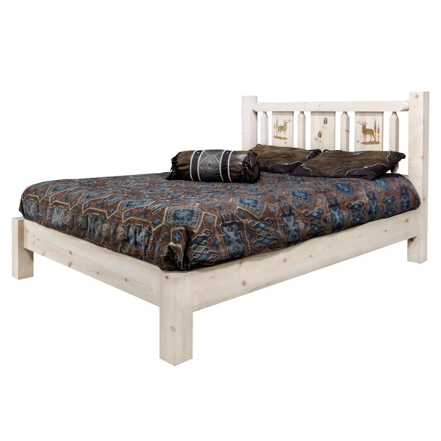 Homestead Collection Twin Platform Bed w/ Laser Engraved Elk Design, Ready to Finish