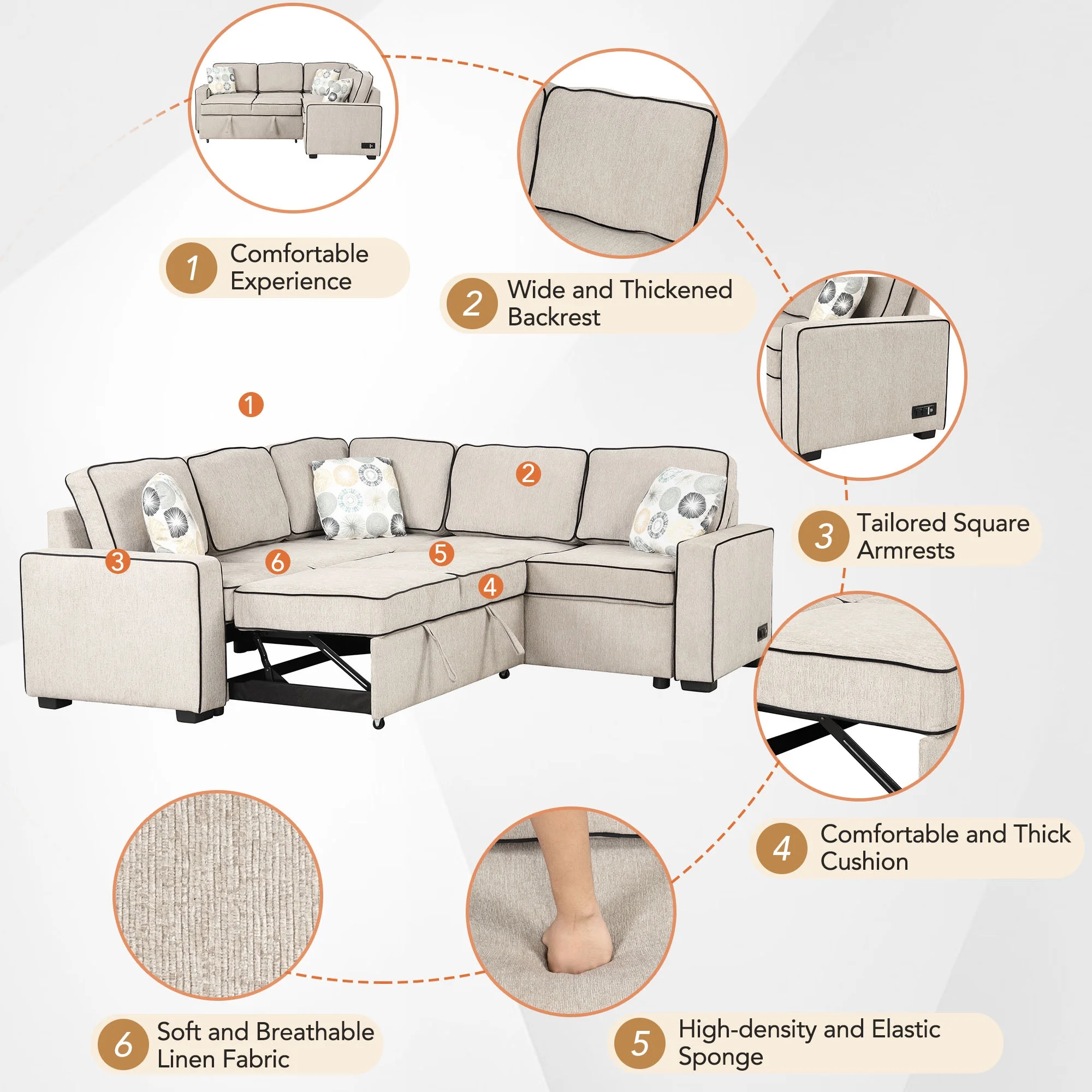 Full size Upholstered Daybed Sofa Bed with Twin Size Trundle, Wood Slat Support Beige