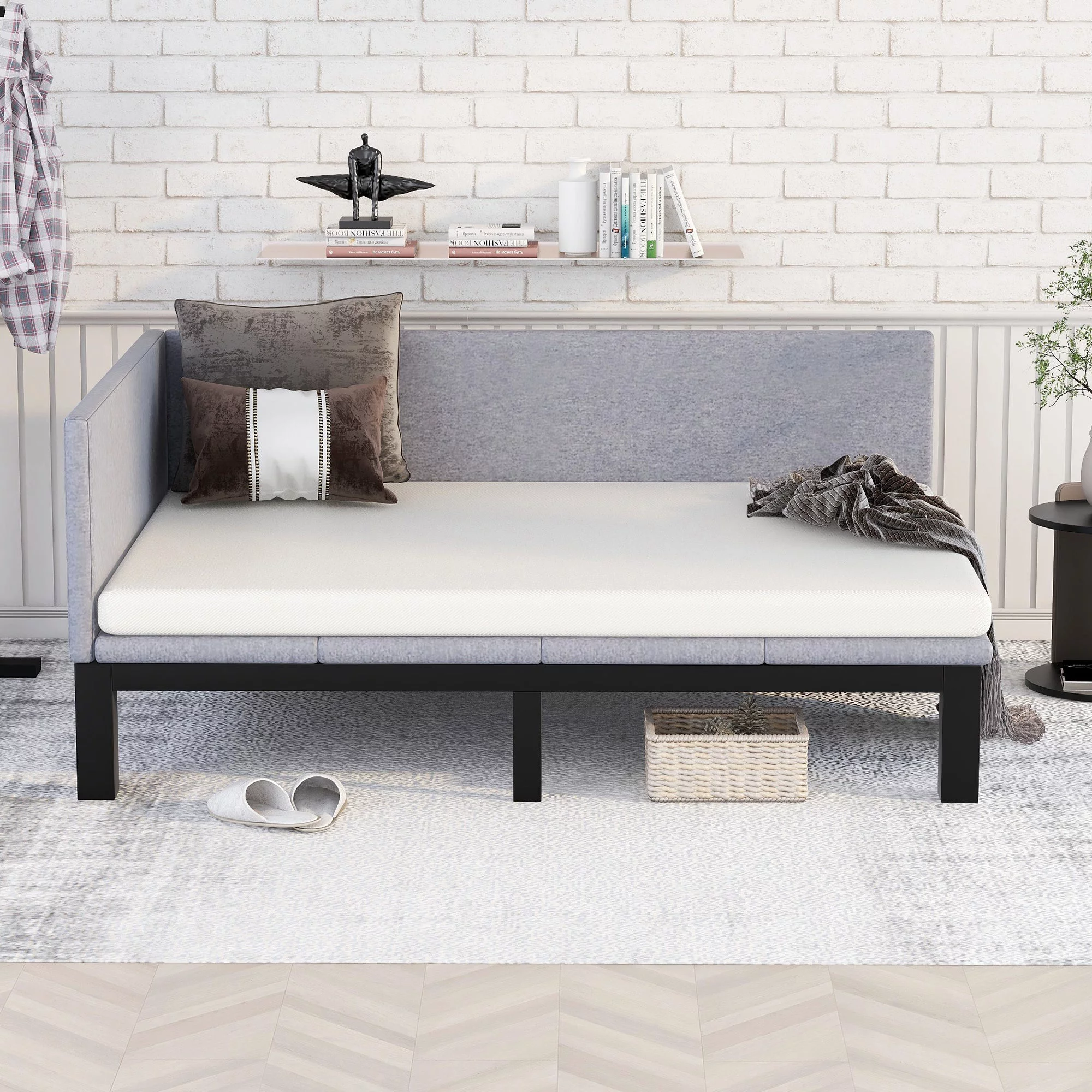 CoSoTower Twin Size Upholstered daybed with Drawers, Wood Slat Support, Gray