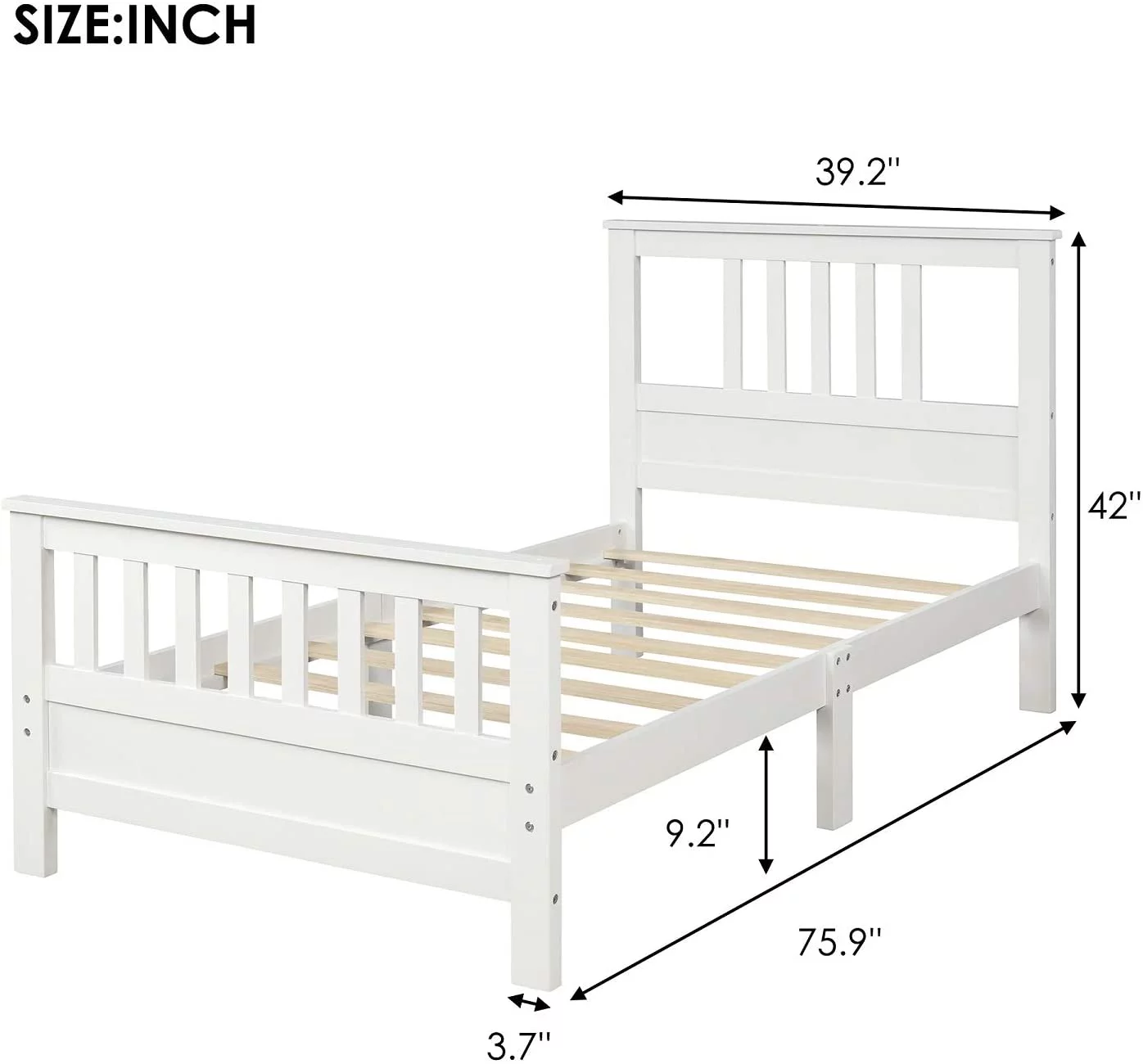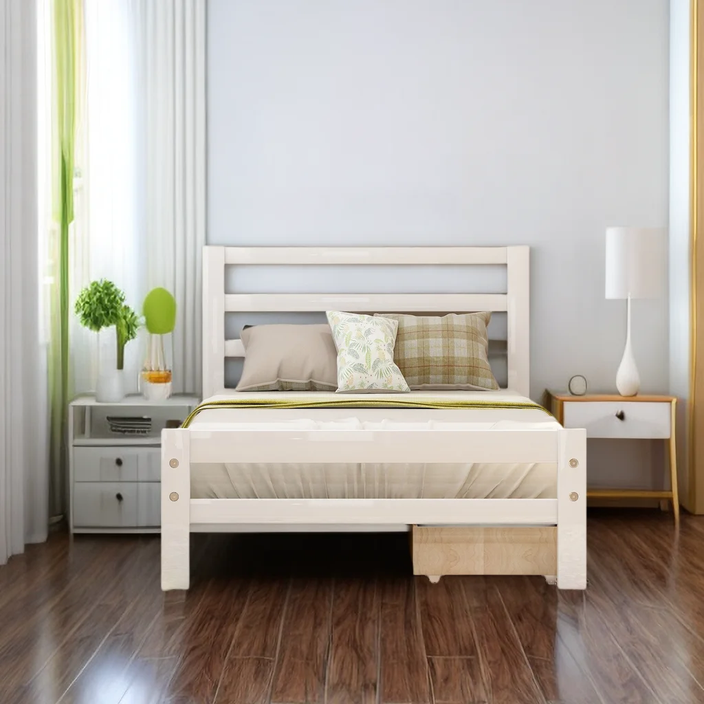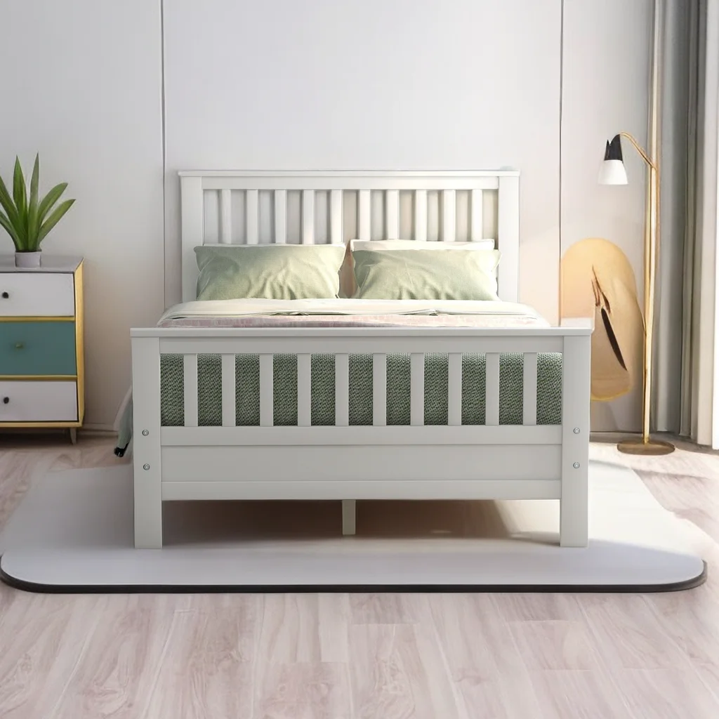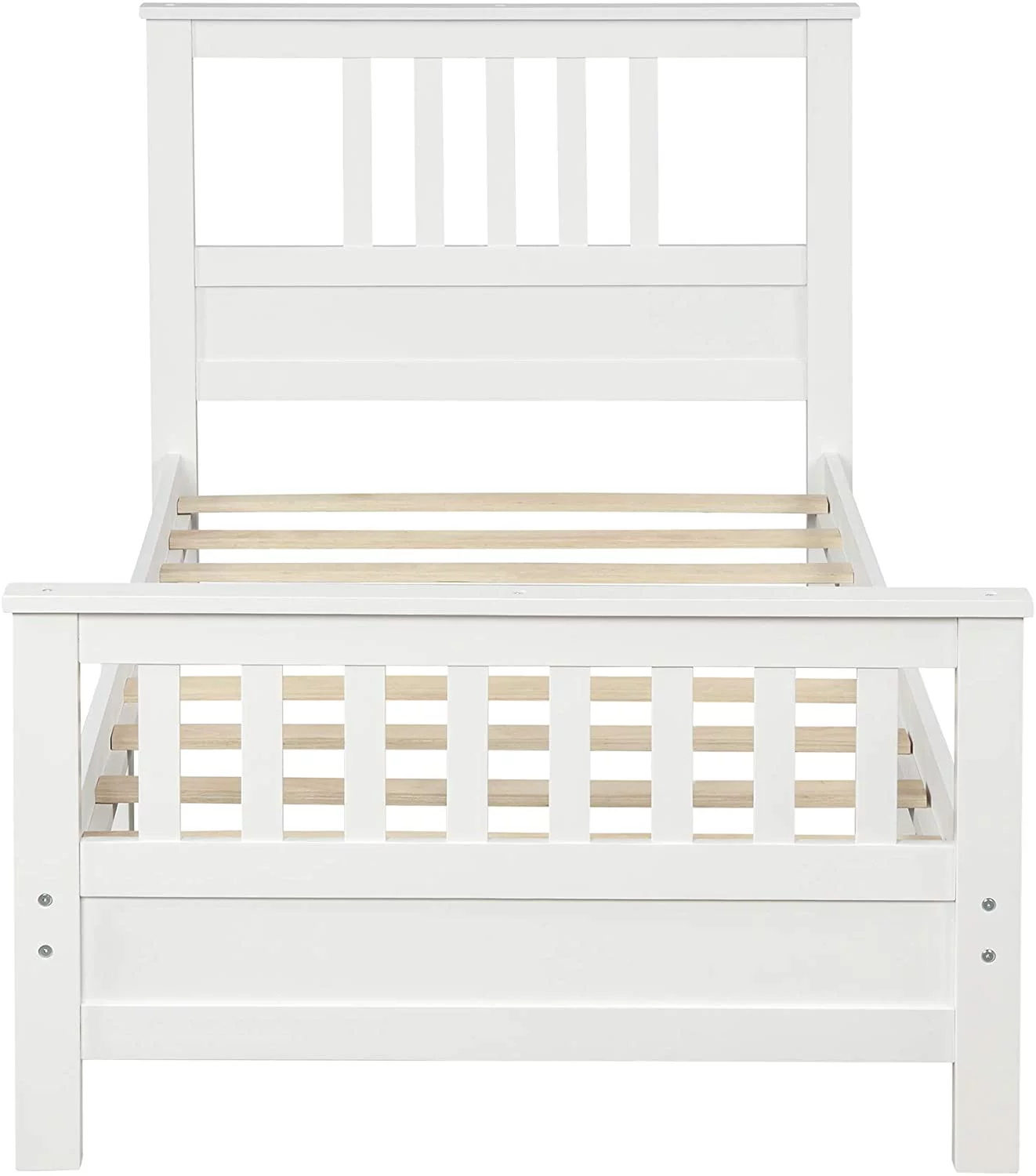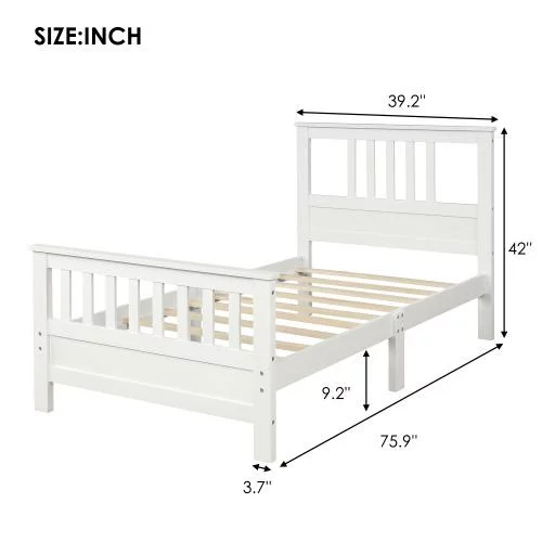 Tatayosi Twin Size Wood Platform Bed with Headboard and Footboard White