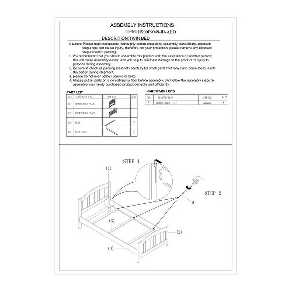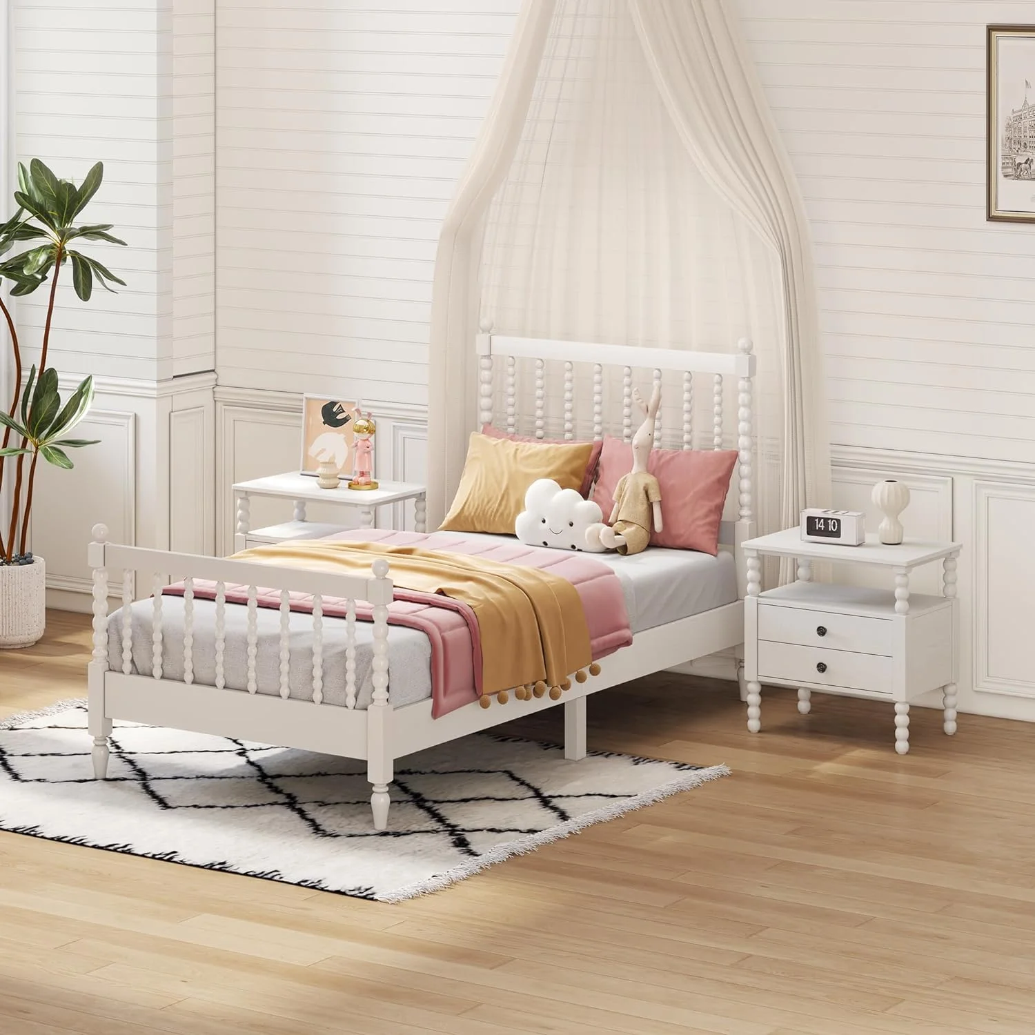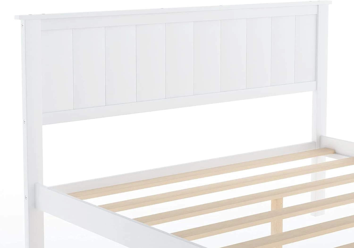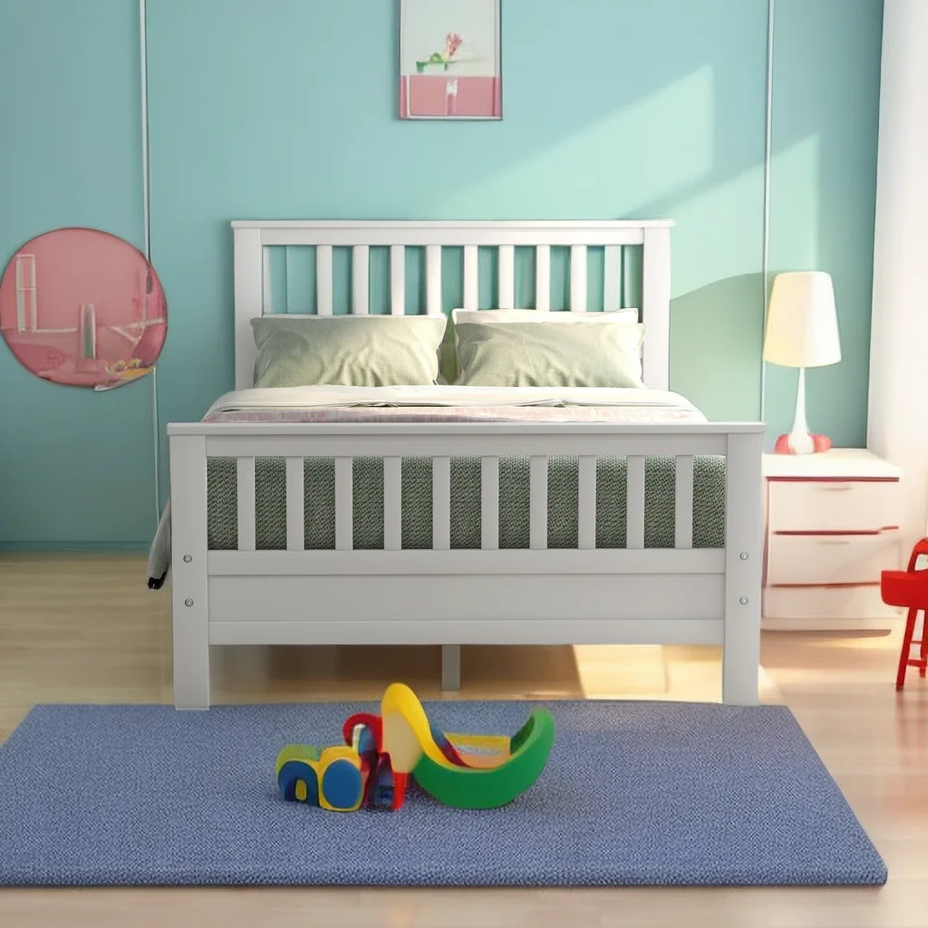 Tatayosi Twin Size Wood Platform Bed with Headboard and Footboard White