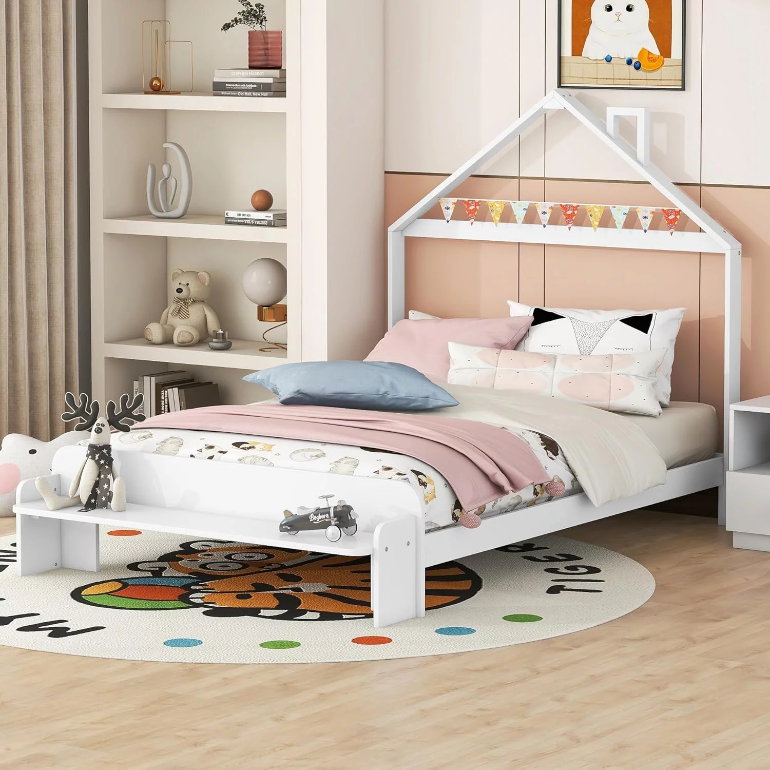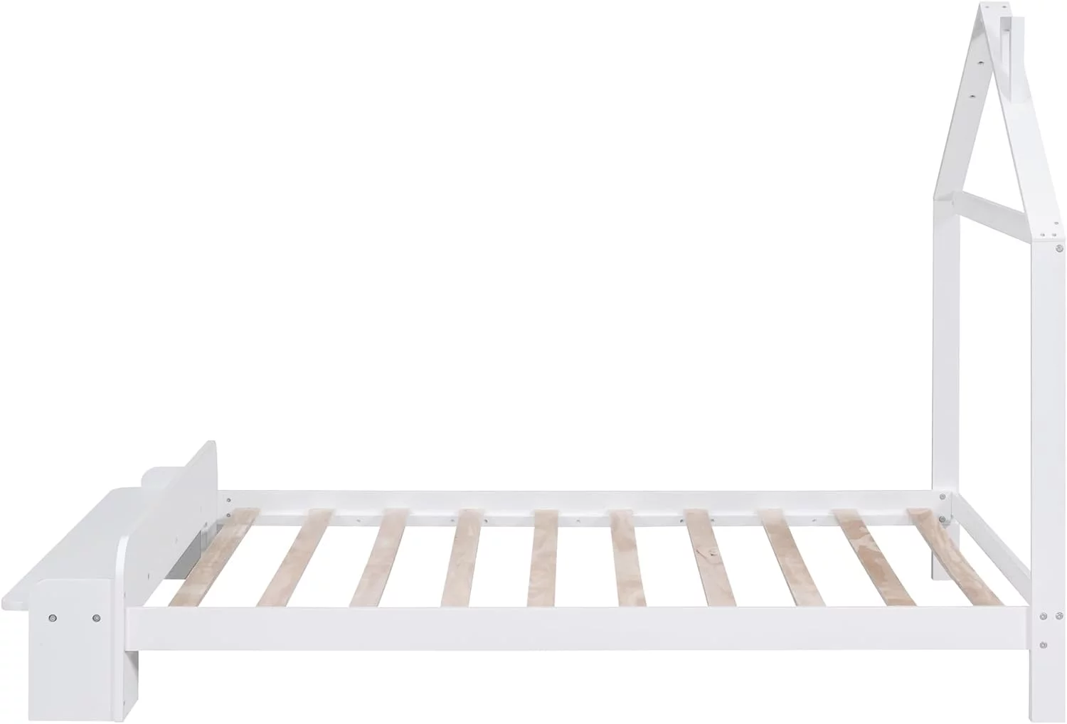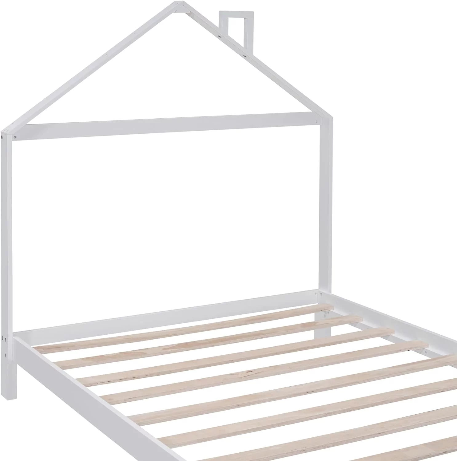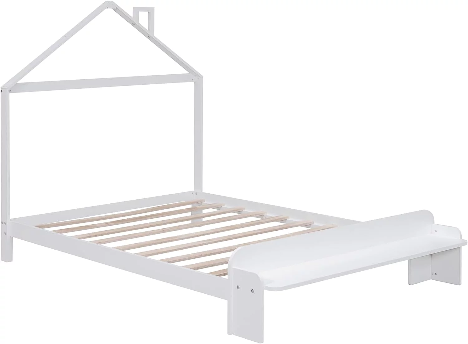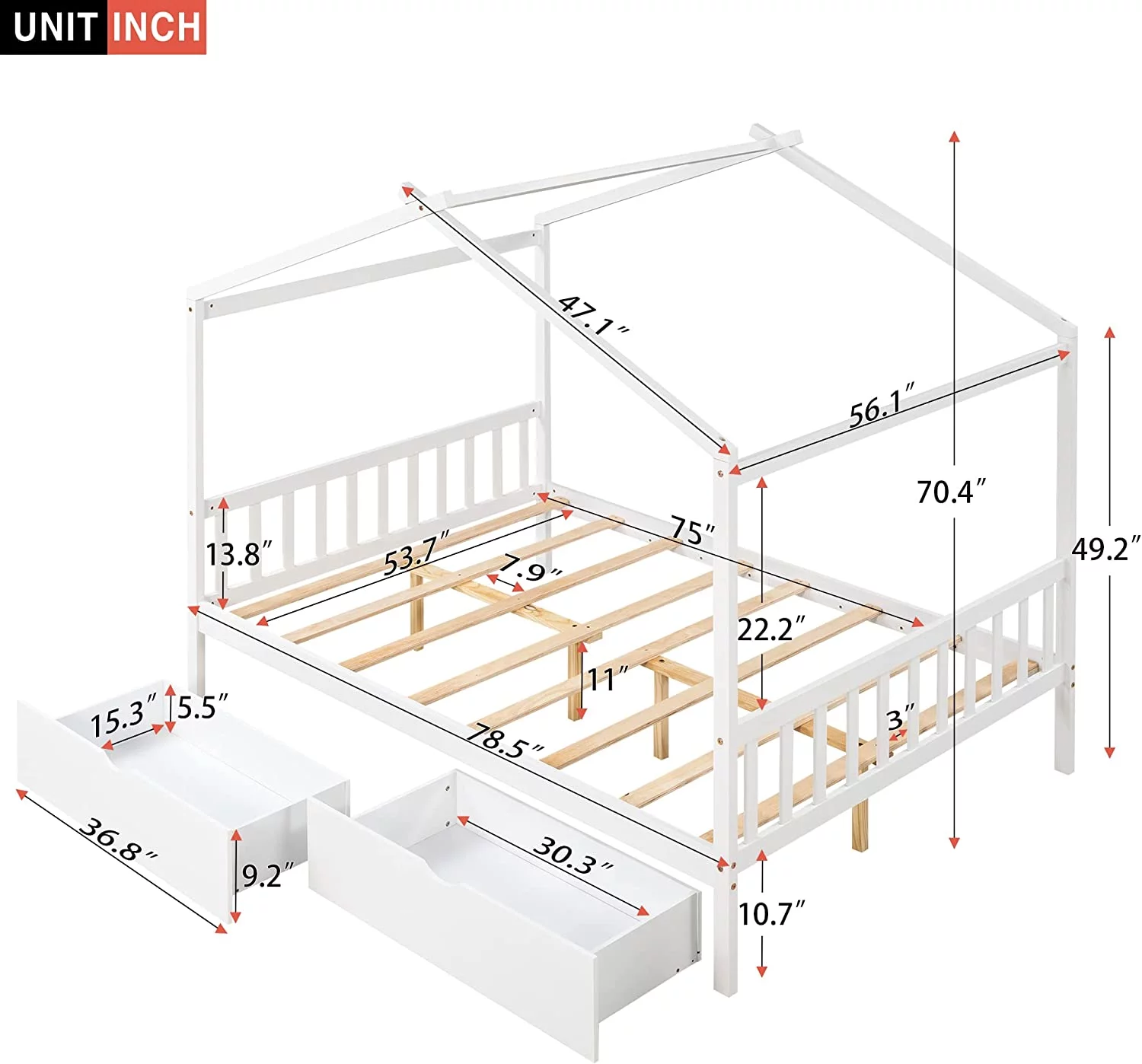 Full Size House Bed, Full Platform Bed With 2 Drawers, Headboard And Footboard, Roof Design, Bedroom Furniture, White