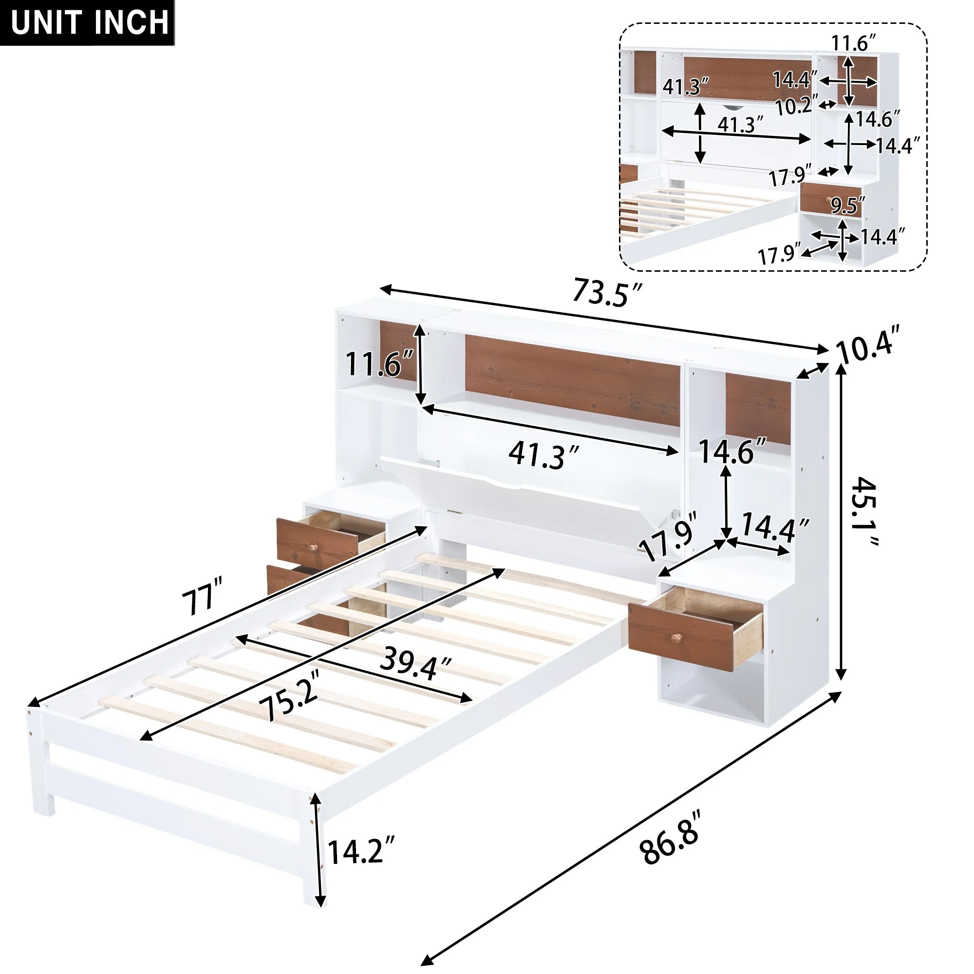 Twin Size Platform Bed with Two Storage Drawers, Wooden Platform Bed with Headboard and Footboard