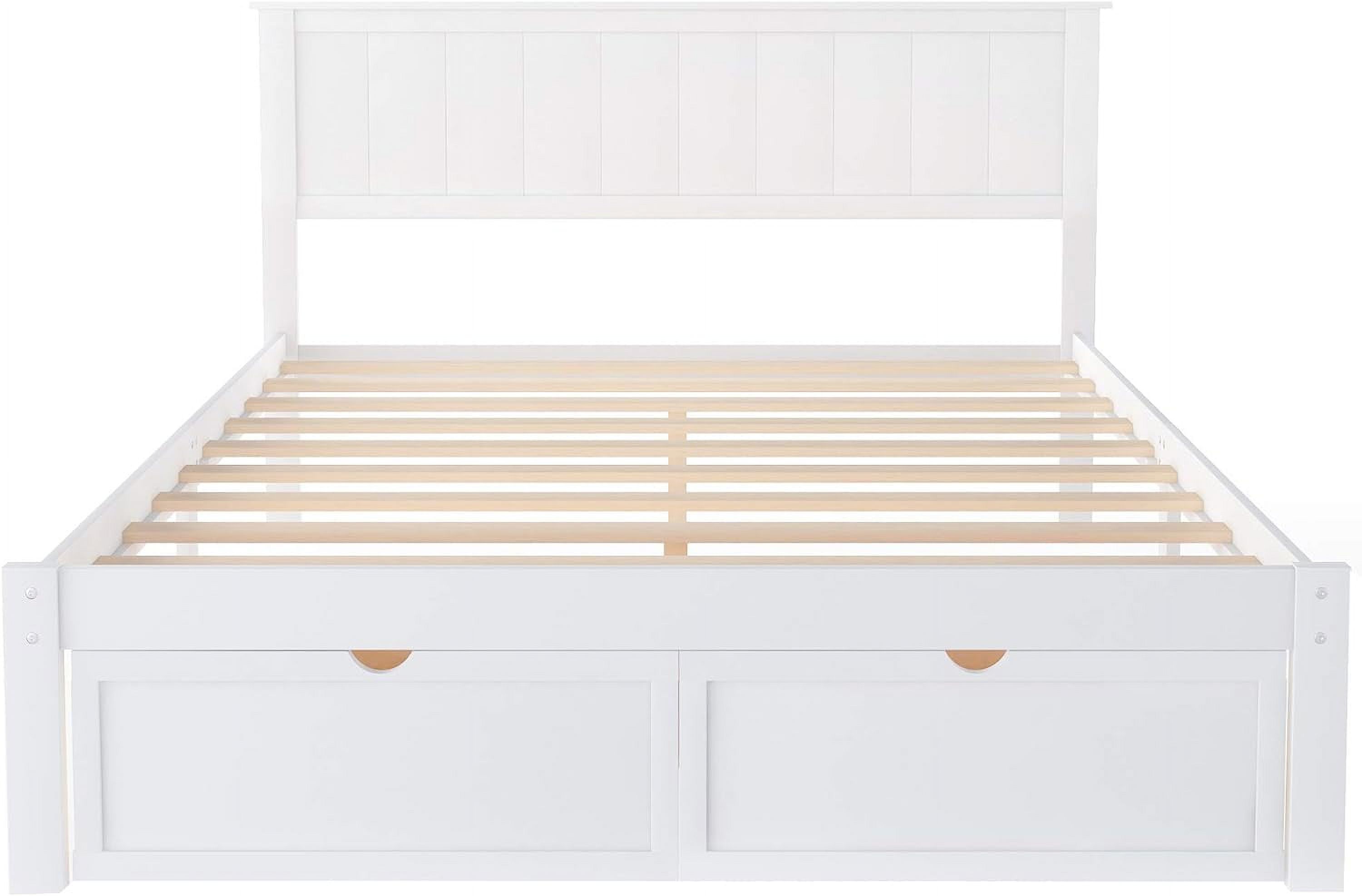 Platform Bed, Wood Platform Bed Frame With Headboard And Footboard, Easy Assembly, White