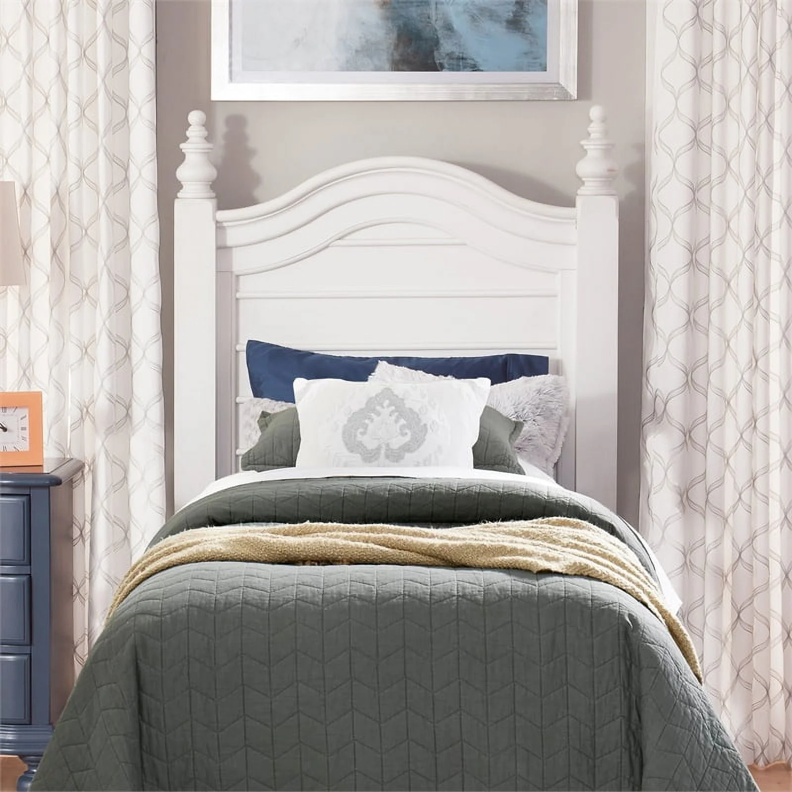 White Color Twin Size Bed Youth Bedroom Furniture Vertical Lines Carved Headboard Plywood
