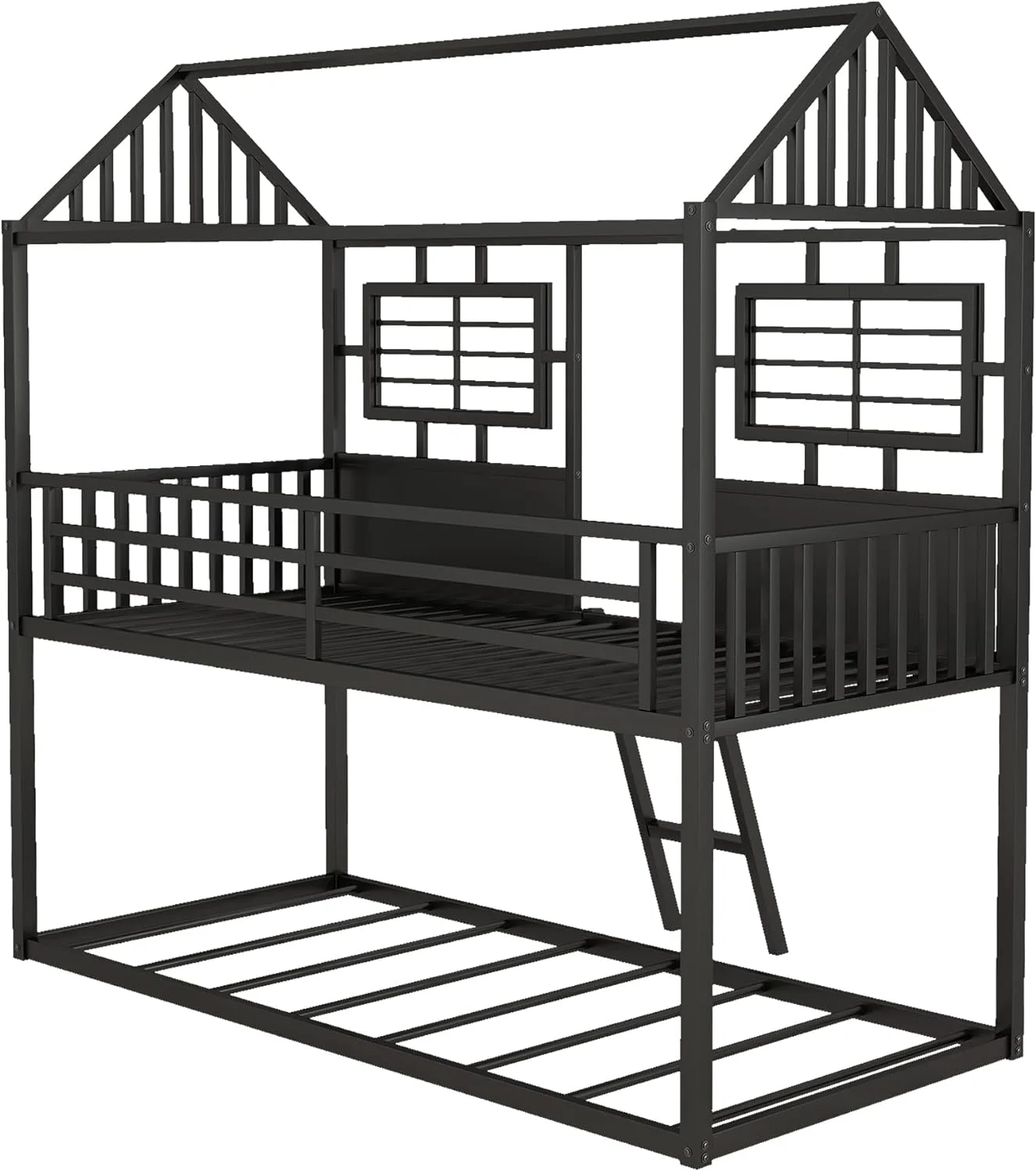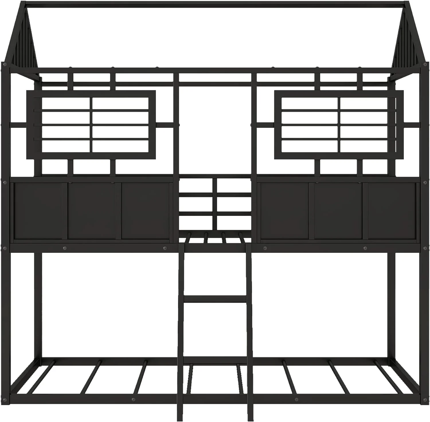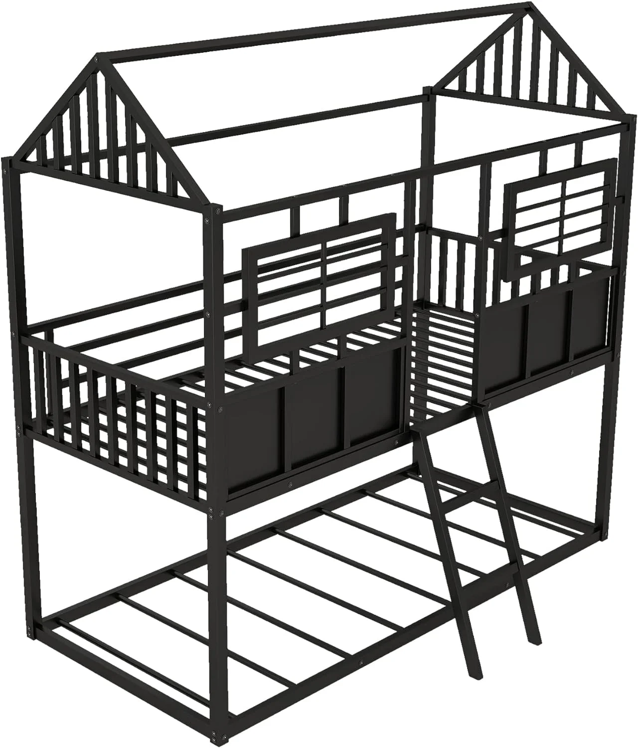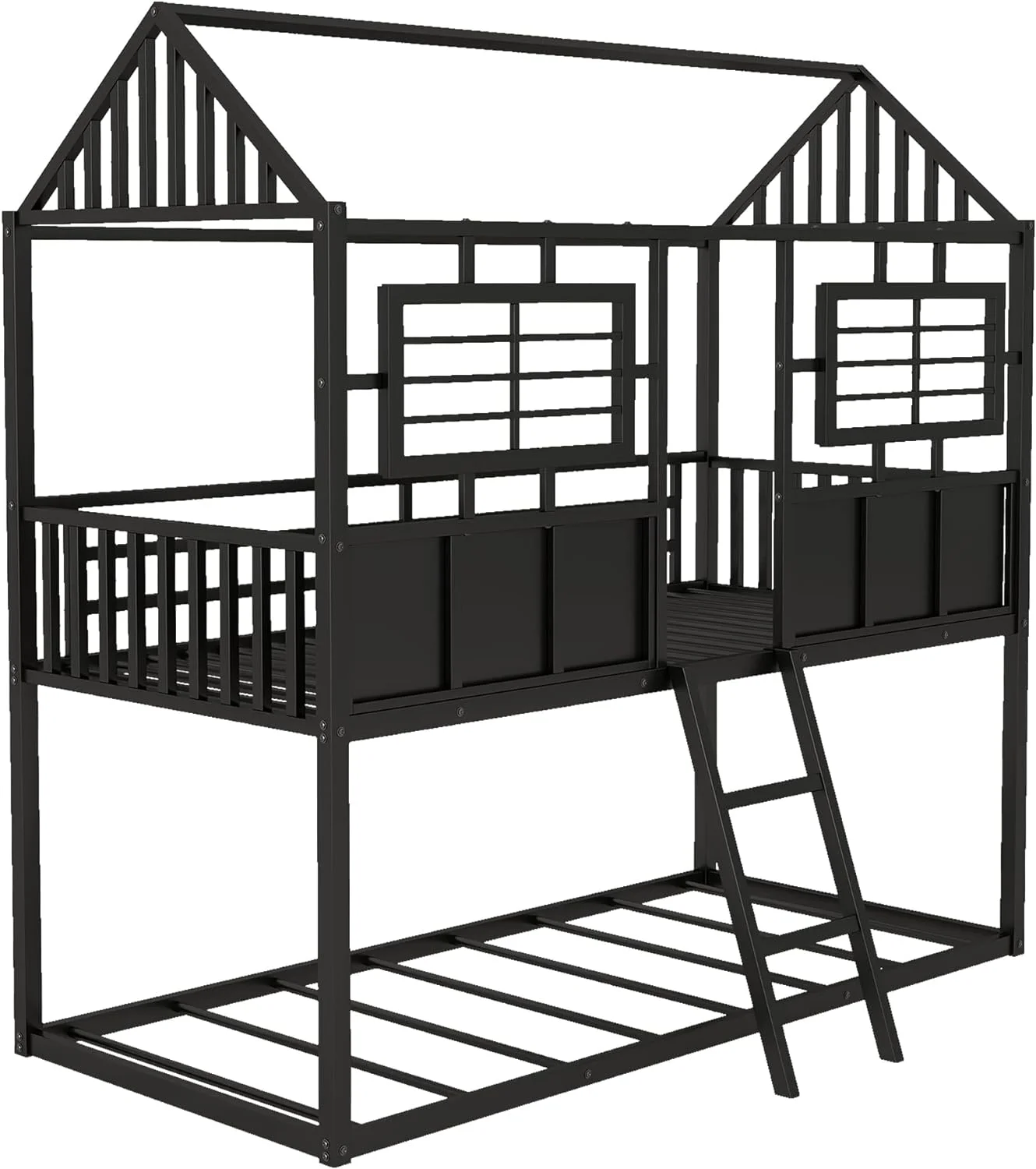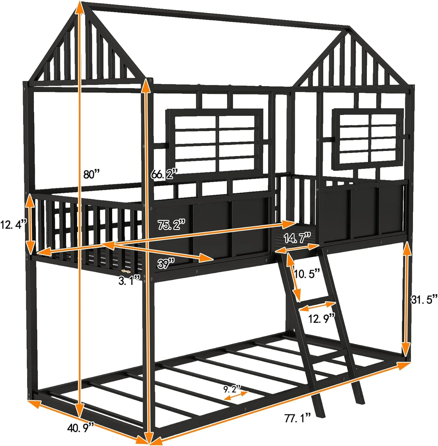 89.5 x 42.88 x 77 in. Wooden Bunk Bed with House Design, White & Brown - Twin Size