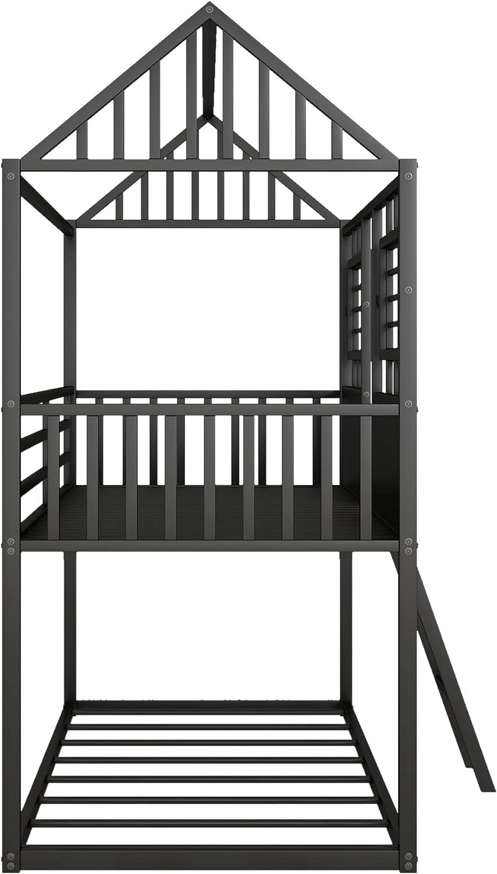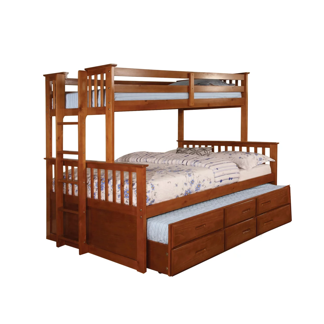 Cottage Kids Furniture Twin over Full Bunk Bed with Slide and Bottom Guard Rail